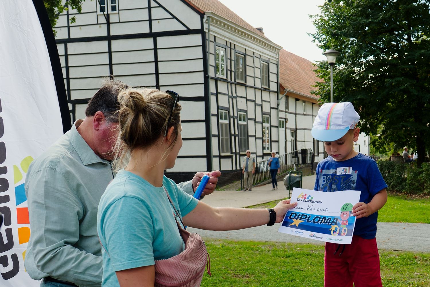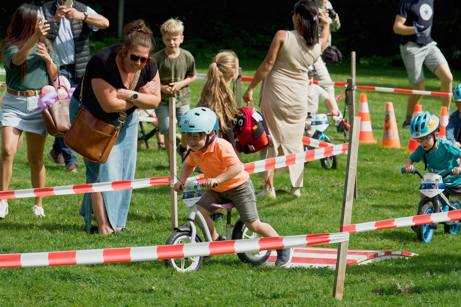 Als het EK voor loopfietsen een waardemeter is voor de andere EK's op wielen die de komende week betwist worden, dan ziet het er goed uit. Op Bovy verzamelden heel wat supporters om de 'renners' aan te moedigen. Wat wil je, vooraf alleen al had zich een 100-tal kleuters en kinderen ingeschreven om de races op het parcours op de feestweide te betwisten. Luid aangemoedigd door ouders en grootouders gaven de kampioenen in spe er een lap op. Aan het eind van de rit mochten de winnaars op het podium waar schepen van Sport Lode Schops klaarstond met de medailles en diploma's. Misschien hun namen nu al doorgeven aan de bondscoach? (foto's Robrecht Froyman)82956