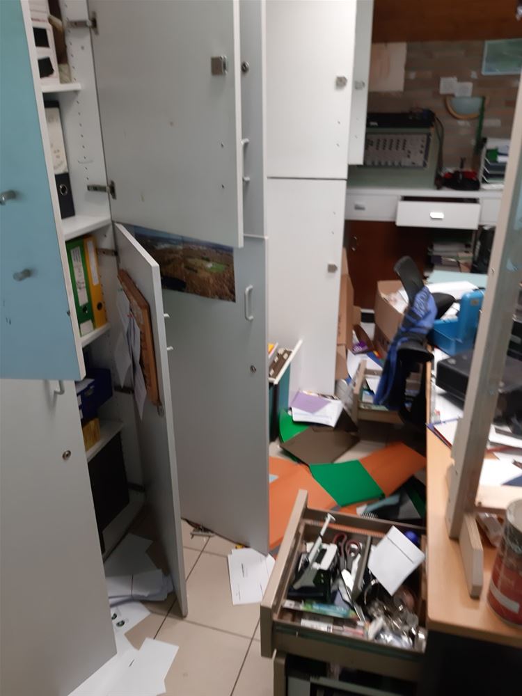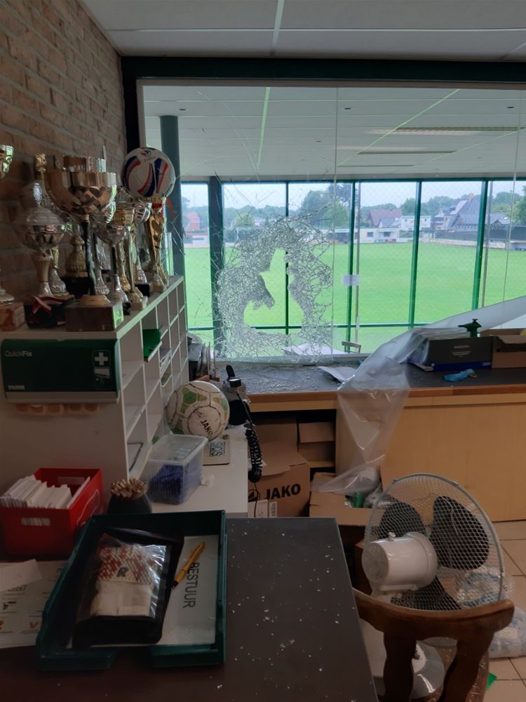 Inbrekers zijn binnengedrongen in de kantine van SK Heusden 06 aan de Noordberm. Ze waren blijkbaar op zoek naar geld want ze hebben alles overhoop gehaald. Buit hebben ze niet kunnen maken, want in geen enkel lokaal wordt geld achtergelaten. Ze zorgden wel voor een enorme ravage, deuren werden opengebroken, glas gebroken en ook het secretariaat is helemaal overhoop gehaald. Vermoedelijk is de inbraak afgelopen nacht gebeurd.70013