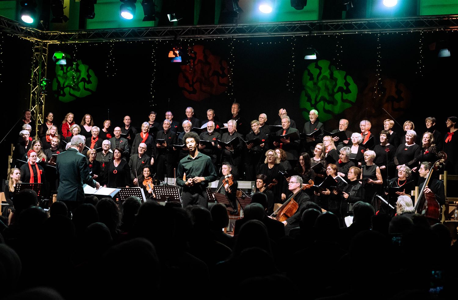 In veel Vlaamse dorpen brengen koren in deze periode kerstconcerten, maar de uitvoering die Exsultate vanavond – en ook morgen om 17 uur – in de Heilig Hartkerk in Boekt bracht, kan zonder twijfel tot het betere werk gerekend worden. Onder de noemer “Blessed are Peacemakers” was een kerstbeleving uitgewerkt waarin momenten uit het leven van grote verzoeners en vredesbouwers verweven worden met betekenisvolle muziek. De boodschap van figuren als Martin Luther King, Mahatma Gandhi, Nelson Mandela en de Dalai Lama staat dan ook in schril contrast met de hedendaagse wereld vol oorlog, onderdrukking en machtsmisbruik. Het werd prachtig, maar niet belerend vertolkt door het koor Exsultate zelf, aangevuld met de bijzondere stemmen van The Rappel Sisters, Tumaini en contratenor Jannes Desmet, ondersteund door een 11-koppig orkest en doorweven met verhalen verteld door Loore Nelen en Freya Schreurs. Alles werd gebracht in een setting van licht en decor en door dirigent Bruno Sprengers tot één geheel gebracht. (foto’s Ann Jordens)87291