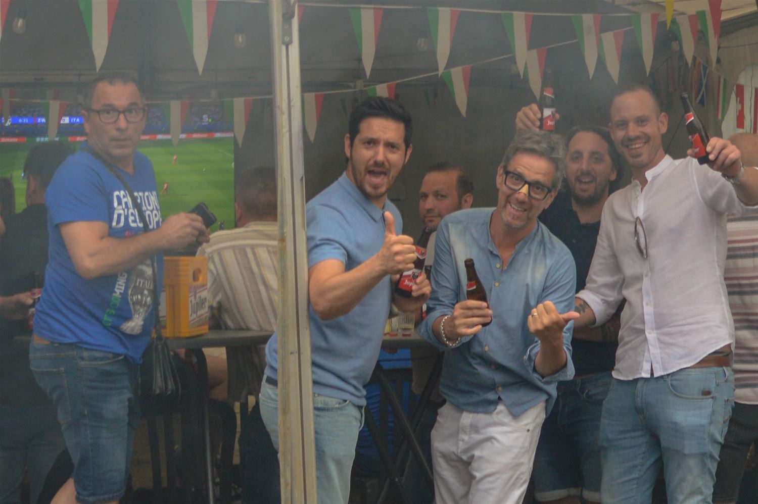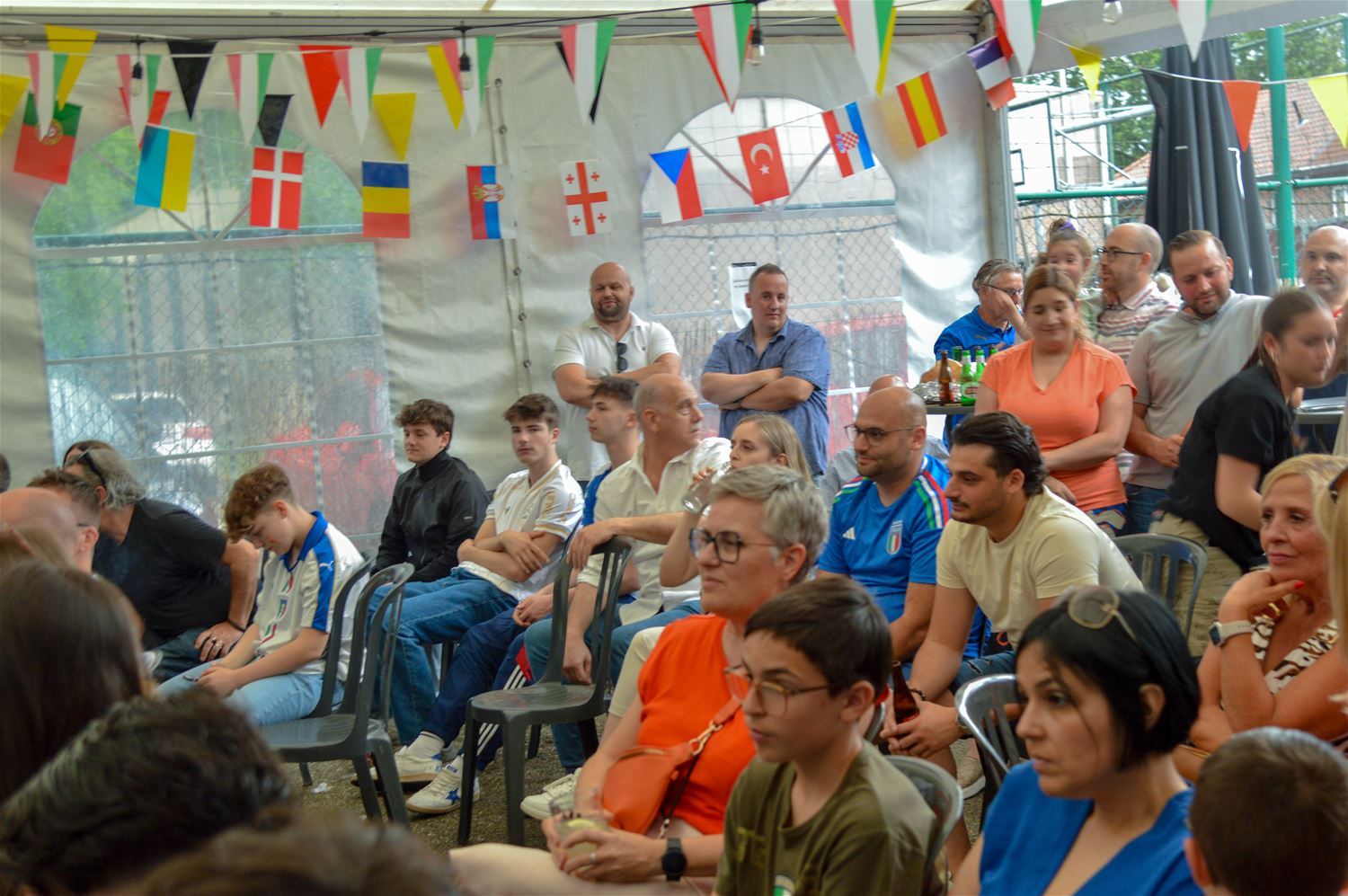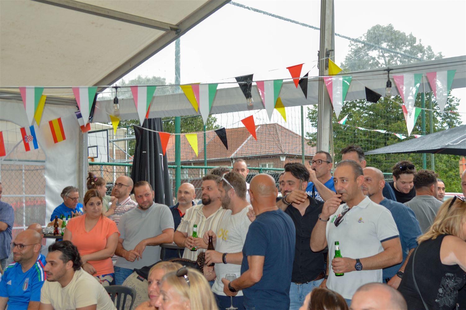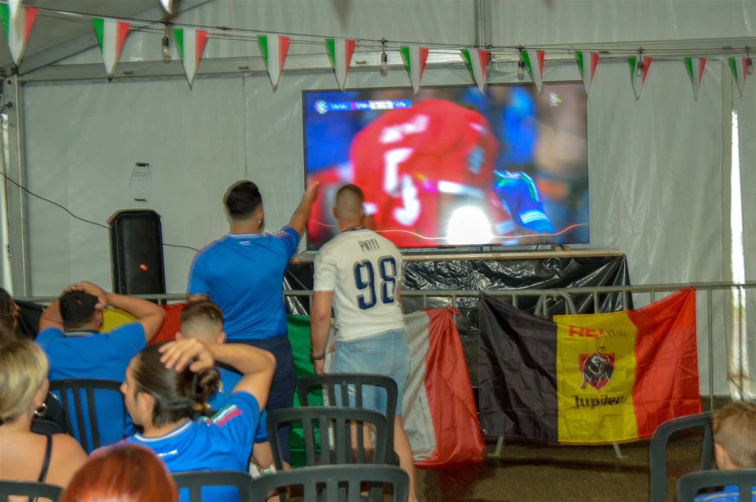 In La Baracca was alles klaar om er een groots Italiaans voetbalfeest van te maken. De drank stond koel, de arrosticini lagen op de barbecue en zowel de tent als het binnenlokaal stroomden vol tifosi in azuurblauw uitgedost. Het begon allemaal enthousiast, maar dat kwijnde stilaan weg door de passieve Italiaanse speelstijl. Het eerste Zwitserse doelpunt vormde een zware domper, maar toch werd de hoop op een terugkeer van La Squadra Azzurra nog niet opgegeven . Tot Zwitserland kort na de rust verdubbelde en elk optimisme samen met de resterende spelminuten wegkwijnde. Het eindsignaal ging gepaard met een reeks diepe zuchten, geen kwartfinale. Dan maar een glas prosecco als troost. (foto's David Amgad)81347