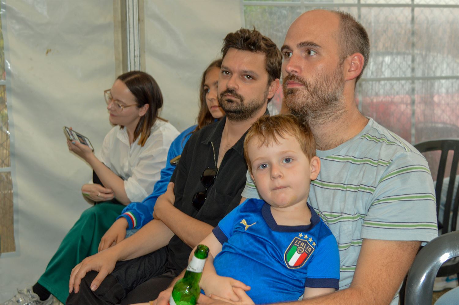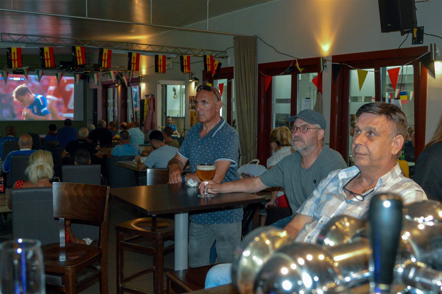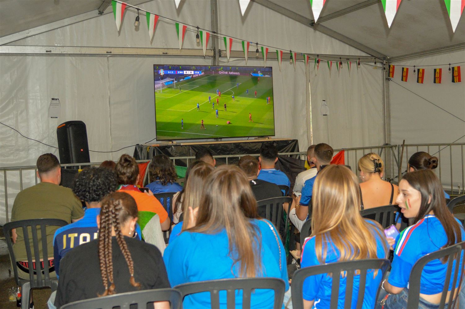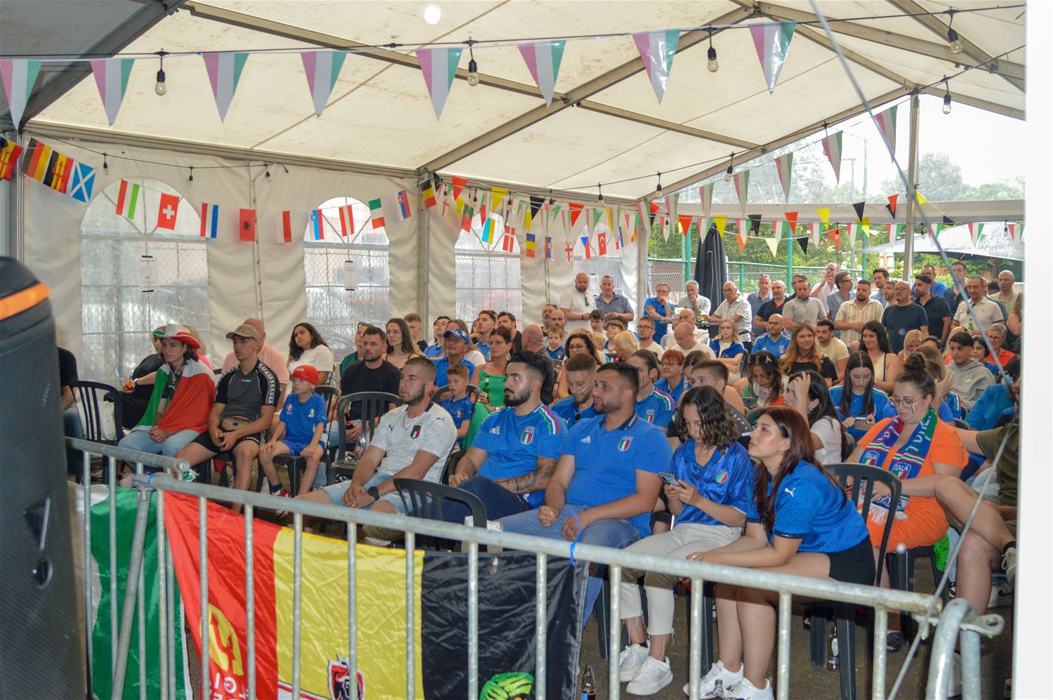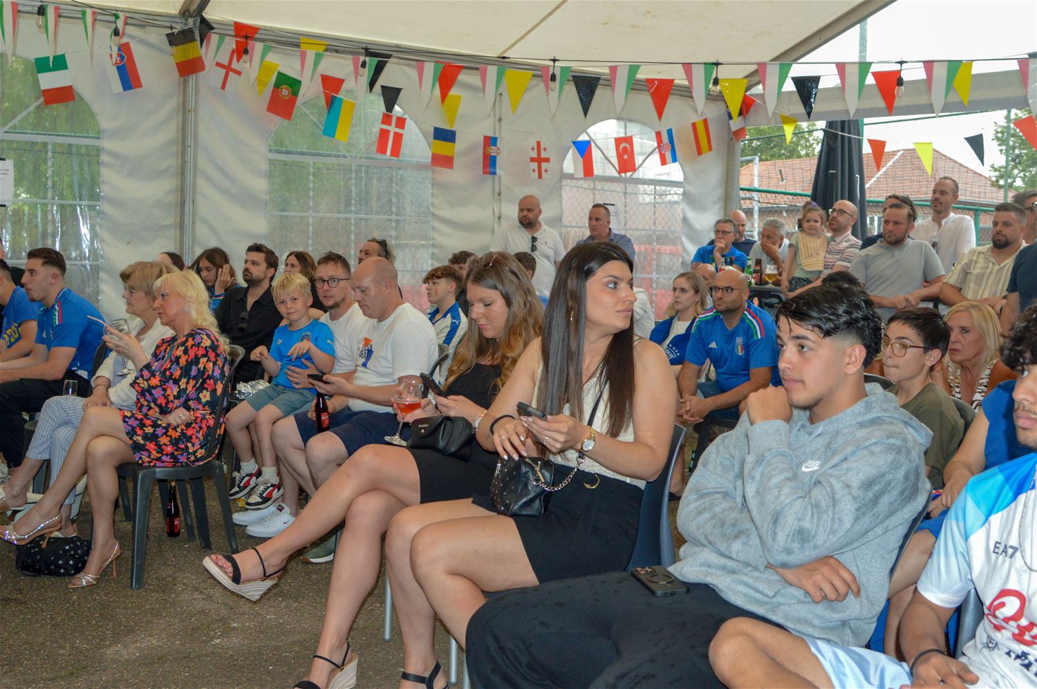 In La Baracca was alles klaar om er een groots Italiaans voetbalfeest van te maken. De drank stond koel, de arrosticini lagen op de barbecue en zowel de tent als het binnenlokaal stroomden vol tifosi in azuurblauw uitgedost. Het begon allemaal enthousiast, maar dat kwijnde stilaan weg door de passieve Italiaanse speelstijl. Het eerste Zwitserse doelpunt vormde een zware domper, maar toch werd de hoop op een terugkeer van La Squadra Azzurra nog niet opgegeven . Tot Zwitserland kort na de rust verdubbelde en elk optimisme samen met de resterende spelminuten wegkwijnde. Het eindsignaal ging gepaard met een reeks diepe zuchten, geen kwartfinale. Dan maar een glas prosecco als troost. (foto's David Amgad)81347