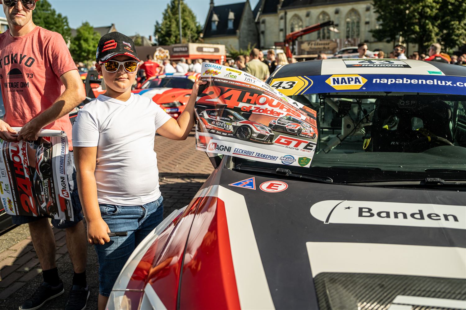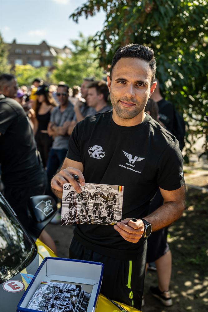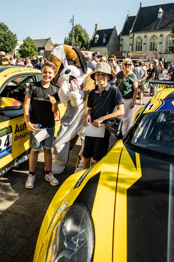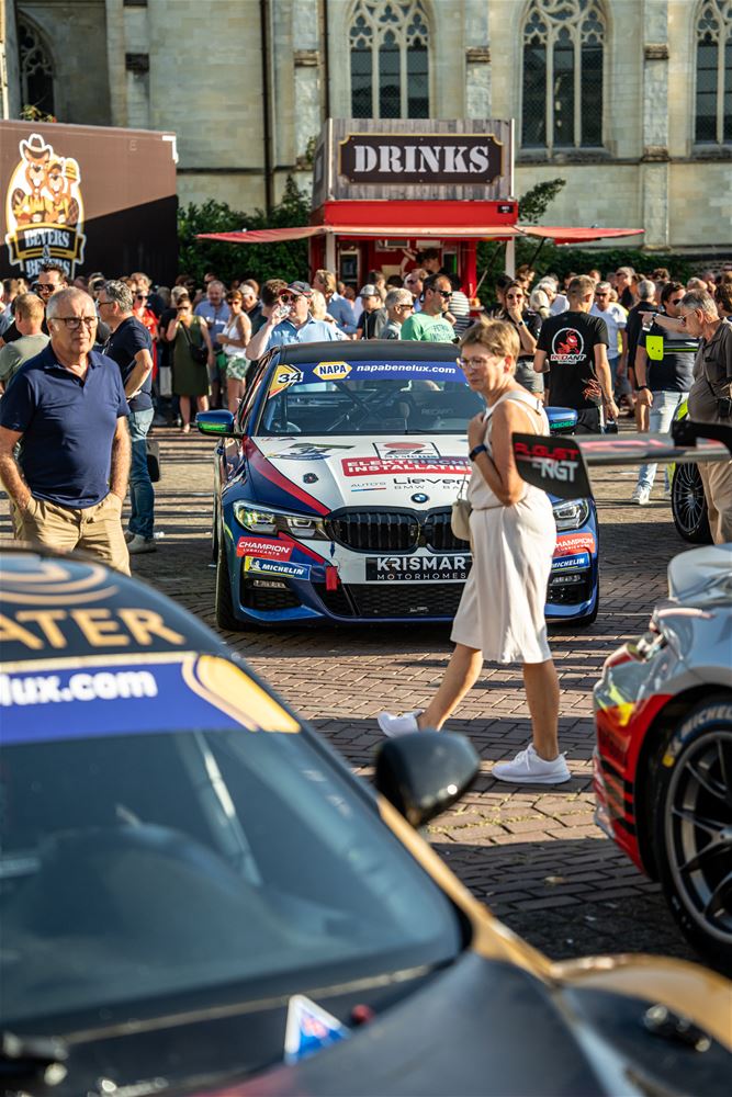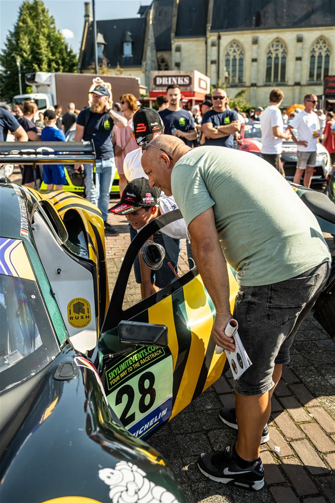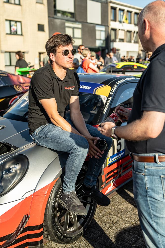 Massale belangstelling voor de parade van de 41 bolides die deelnemen aan de 24 Hours of Zolder en die van het circuit naar het Heldenplein reden en vanavond de omgekeerde beweging maakten. Ze werden daarbij begeleid door de politie en Race Rescue. Onder de dreunen van een dj-car werd druk gefotografeerd en op handtekeningen gejaagd. Ondertussen werden de bolides technisch gekeurd en werden in het gemeentehuis de administratieve plichtplegingen afgewerkt. Morgen ligt de focus weer op het circuit met vanaf 9.05 uur vrije trainingen, de kwalificaties en de Superpole van 19 tot 20.30 uur, gevolgd door de nachttrainingen van 21.50 tot 23.55 uur. Heel de dag kan het publiek gratis binnen. (foto's Dirk Dekens)78354