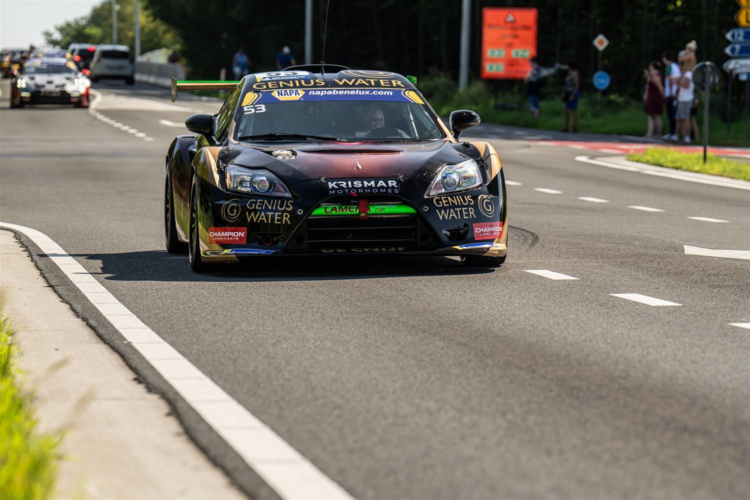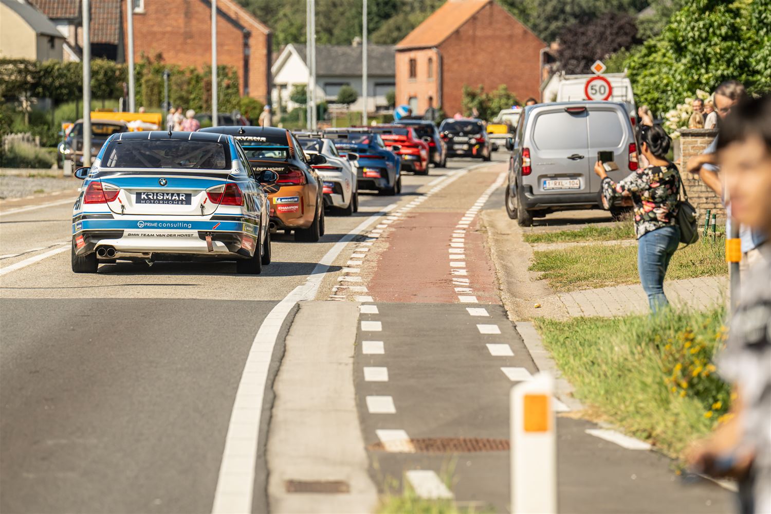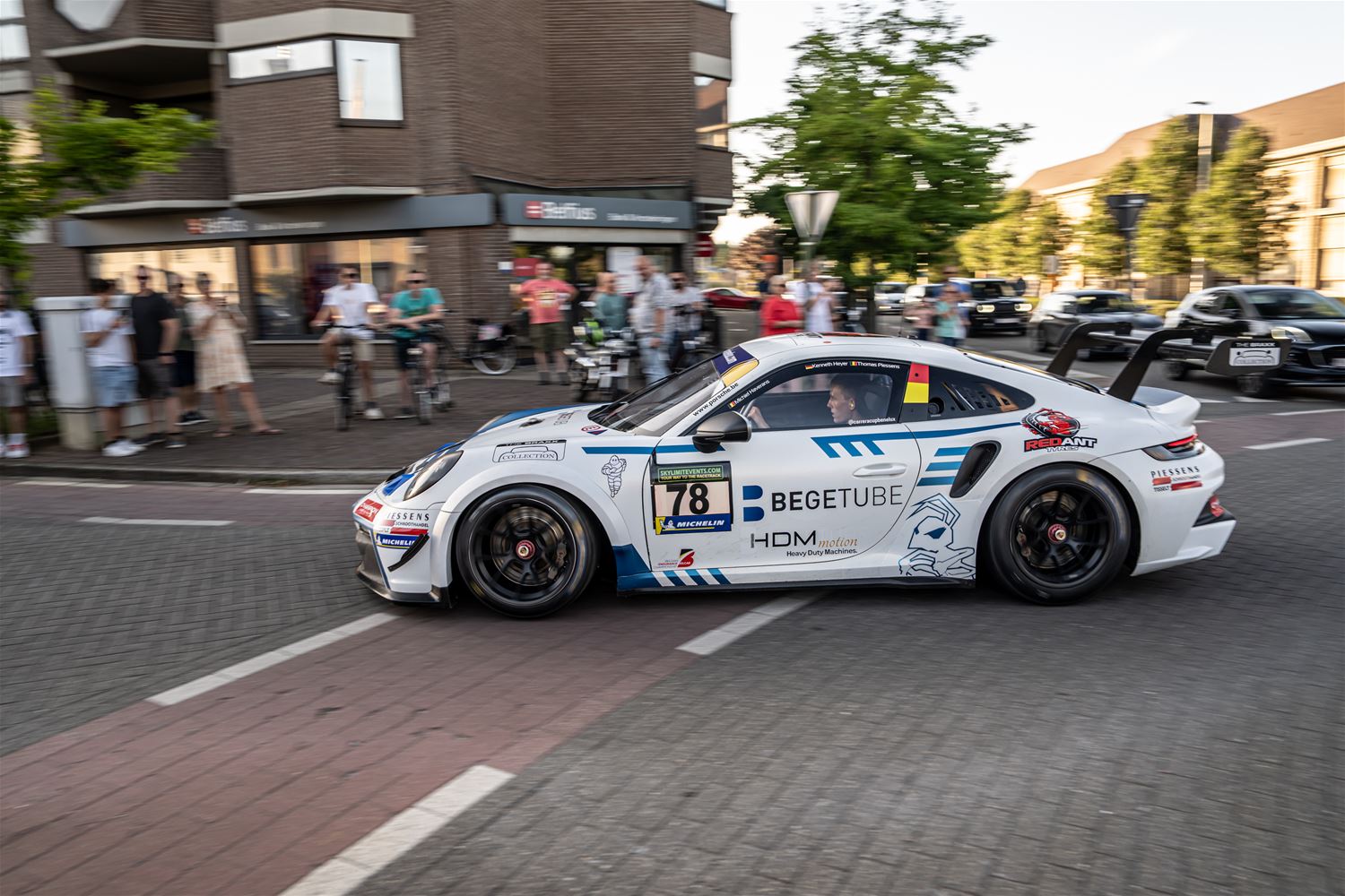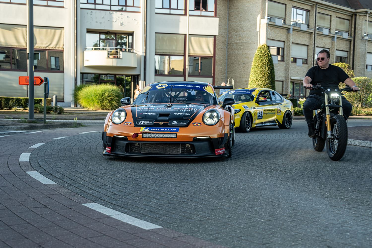 Massale belangstelling voor de parade van de 41 bolides die deelnemen aan de 24 Hours of Zolder en die van het circuit naar het Heldenplein reden en vanavond de omgekeerde beweging maakten. Ze werden daarbij begeleid door de politie en Race Rescue. Onder de dreunen van een dj-car werd druk gefotografeerd en op handtekeningen gejaagd. Ondertussen werden de bolides technisch gekeurd en werden in het gemeentehuis de administratieve plichtplegingen afgewerkt. Morgen ligt de focus weer op het circuit met vanaf 9.05 uur vrije trainingen, de kwalificaties en de Superpole van 19 tot 20.30 uur, gevolgd door de nachttrainingen van 21.50 tot 23.55 uur. Heel de dag kan het publiek gratis binnen. (foto's Dirk Dekens)78354