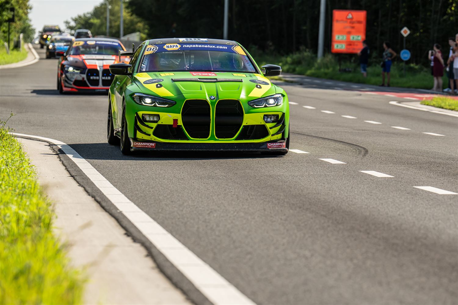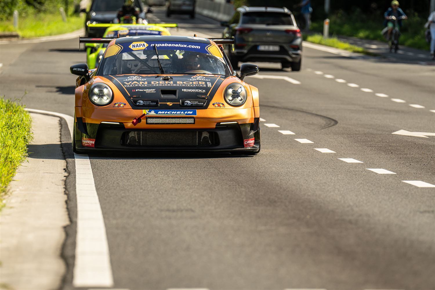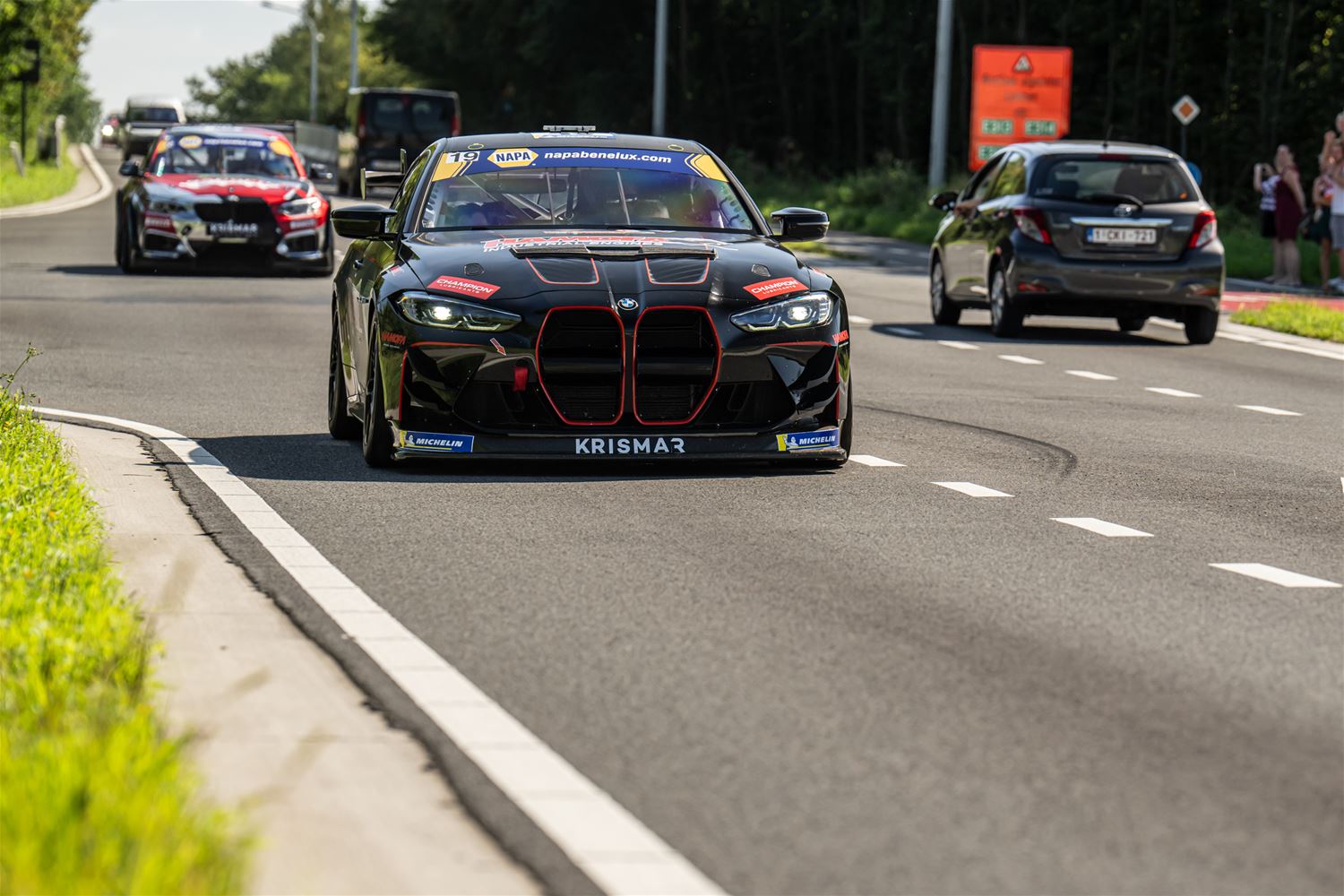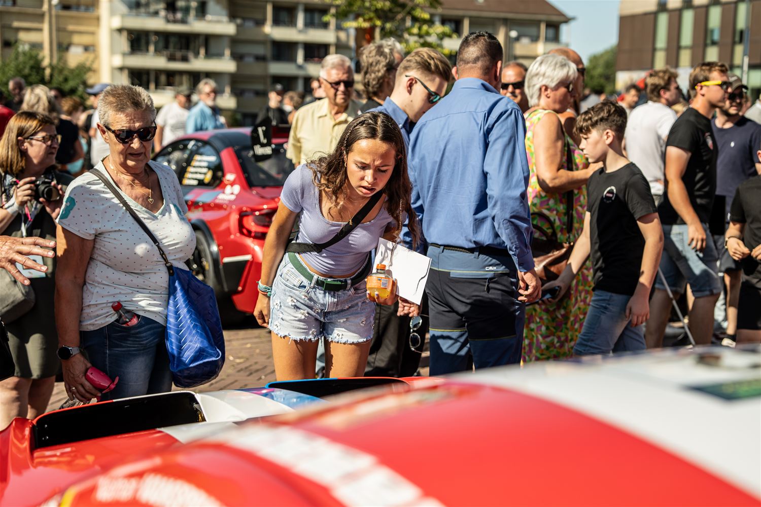Massale belangstelling voor de parade van de 41 bolides die deelnemen aan de 24 Hours of Zolder en die van het circuit naar het Heldenplein reden en vanavond de omgekeerde beweging maakten. Ze werden daarbij begeleid door de politie en Race Rescue. Onder de dreunen van een dj-car werd druk gefotografeerd en op handtekeningen gejaagd. Ondertussen werden de bolides technisch gekeurd en werden in het gemeentehuis de administratieve plichtplegingen afgewerkt. Morgen ligt de focus weer op het circuit met vanaf 9.05 uur vrije trainingen, de kwalificaties en de Superpole van 19 tot 20.30 uur, gevolgd door de nachttrainingen van 21.50 tot 23.55 uur. Heel de dag kan het publiek gratis binnen. (foto's Dirk Dekens)78354