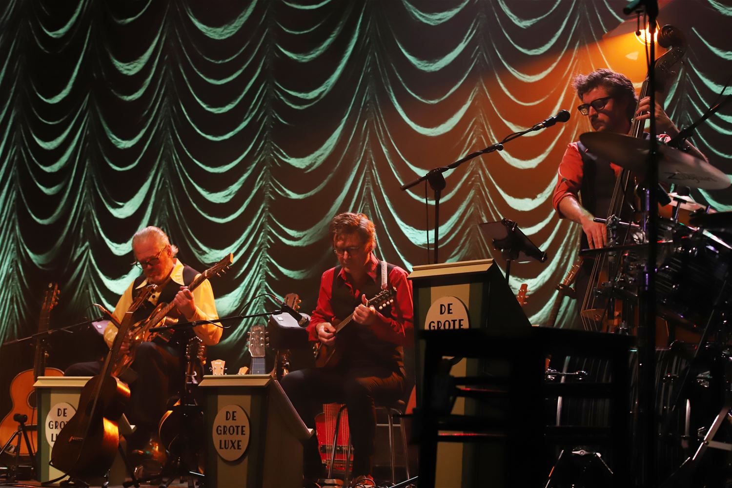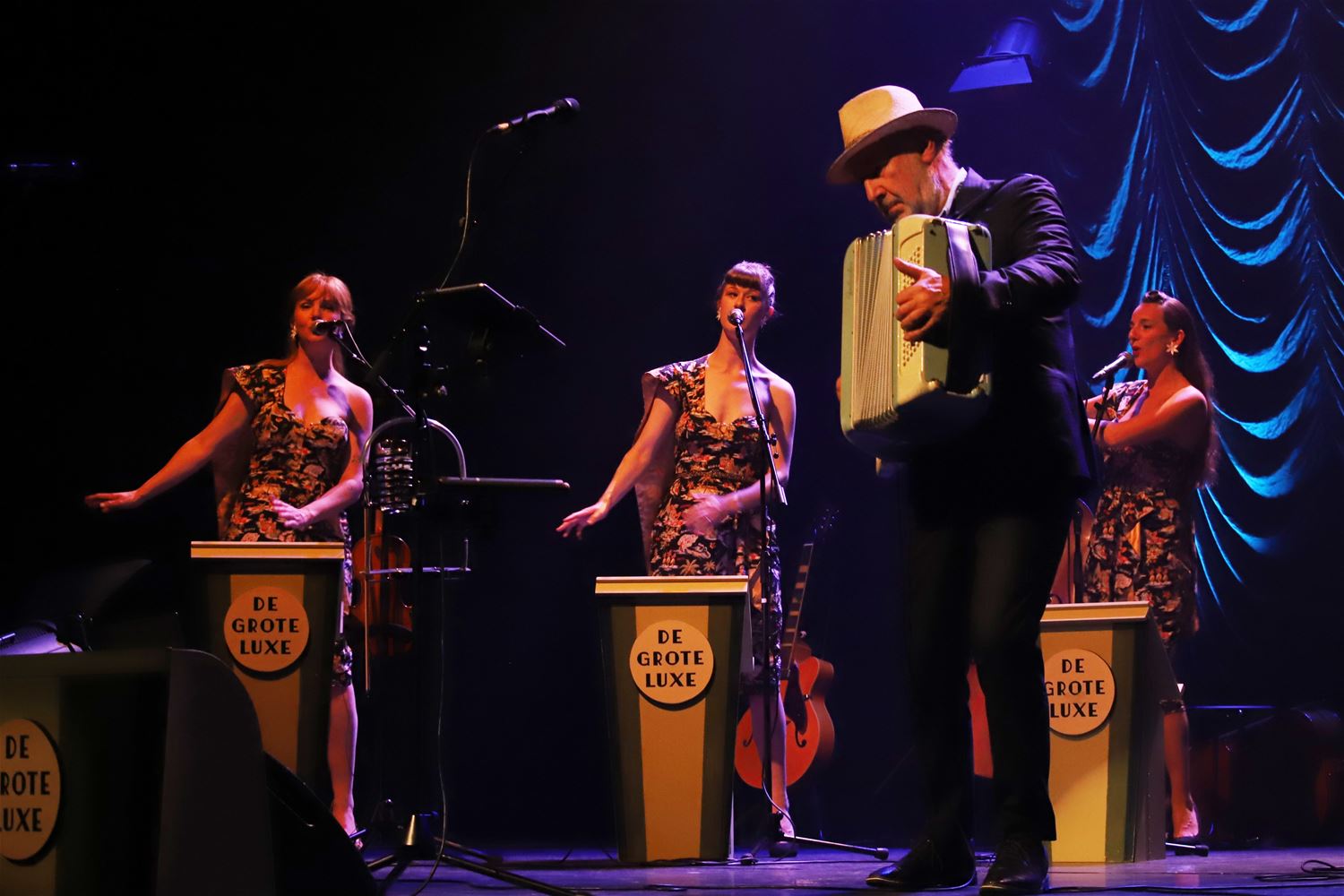 Voor zijn 70ste verjaardag toert Jan De Smet - gekend als zanger-muzikant en ex De Nieuwe Snaar - met een feestprogramma langs de beste cultuurhuizen. Hij kan daarvoor een beroep doen op The Bonnie Blues (drie harmonieuze zangeressen en multi-instrumentalisten), Les Guitares Magiques (drie meesters in het bespelen van snaarinstrumenten) en drummer Stoy Stoffelen. Zelf noemt Jan De Smet dit gezelschap zijn grote luxe en samen brachten ze onder meer het muzikale erfgoed van De Nieuwe Snaar weer tot leven, fel gesmaakt zaterdagavodn in CC Muze. (foto's Herman Eerdekens)78901
