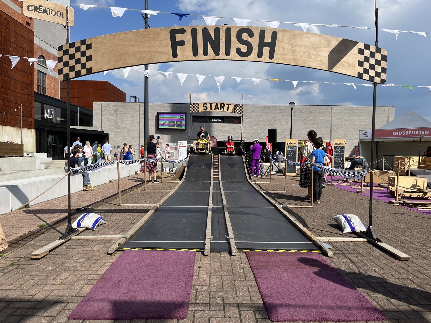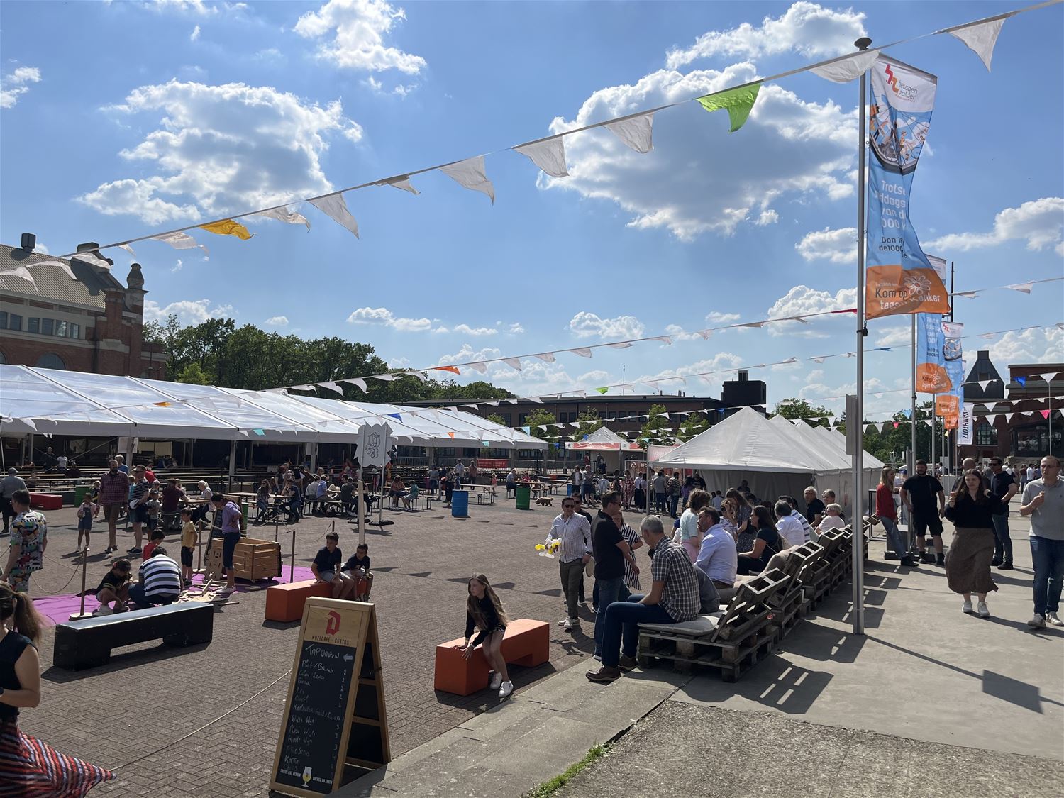 Heel wat passanten keken verbaasd op bij het passeren van het Marktplein vandaag, want daar had een groot feest met een heleboel activiteiten plaats. Het was de familiedag van de UHasselt. De universiteit viert haar 50ste verjaardag en had haar 1.200 personeelsleden en hun gezin uitgenodigd voor een leuk feestje op en rond het mijnterrein. Ze kregen een rondleiding door de mijngebouwen, konden wandelen naar de top van de terril, een uitgestippelde fietstocht doen, wetenschapsshows bijwonen, lachen met stand-up comedian Erhan Demerci, bieren keuren op een tasting, of zelf een zeepkist bouwen en testen, ... Het weer was bovendien ook in feeststemming, de jarige unief heeft dus niet alleen de wind in de zeilen maar ook de zon in het gelaat. 77495