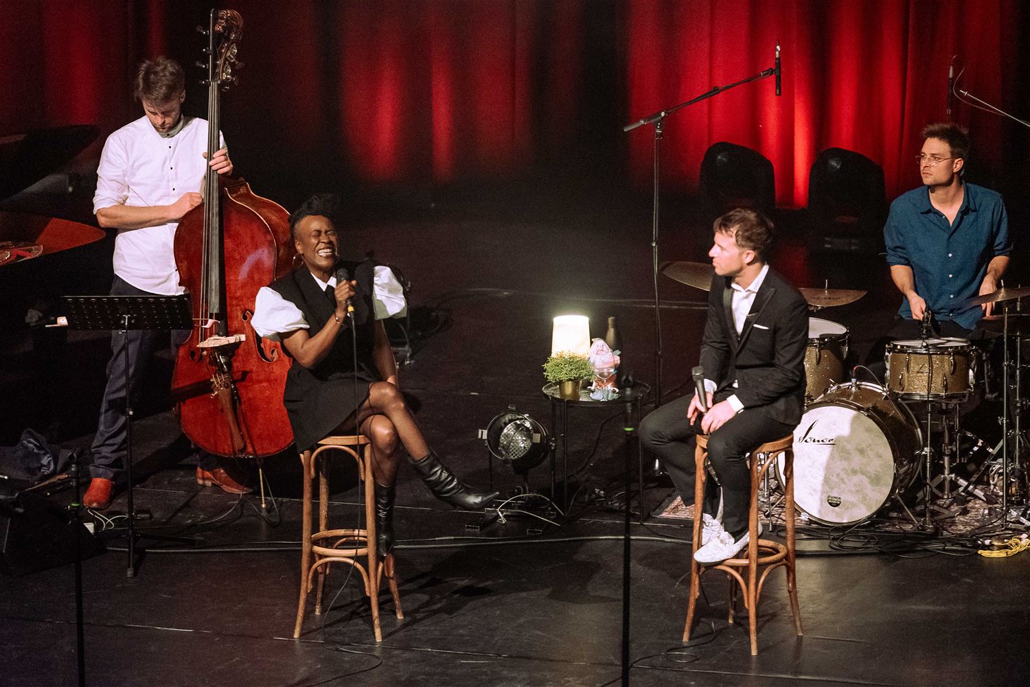 Zaterdagavond stelde Jef Neve in CC Muze zijn nieuwe album ‘That old Feeling’ voor. Een mix van eigen werk en meer of minder bekende liedjes, kwestie van een sfeervolle avond te creëren. En of dat lukte! Afgetrapt werd met de minder bekende song ‘Piece of Clay’ van Marvin Gaye gevolgd door ‘Something so right’ van Paul Simon. Monique Harcum en Sam Merrick brachten de ene prachtige songversie na de andere. Met de meester himself uiteraard in een glansrol op de piano. Het kon niet anders dan op bisnummers uitdraaien waarbij beide zangers in duet gingen en contrabassist Natham Wouters zich helemaal liet gaan. (foto's Ann Jordens)79842