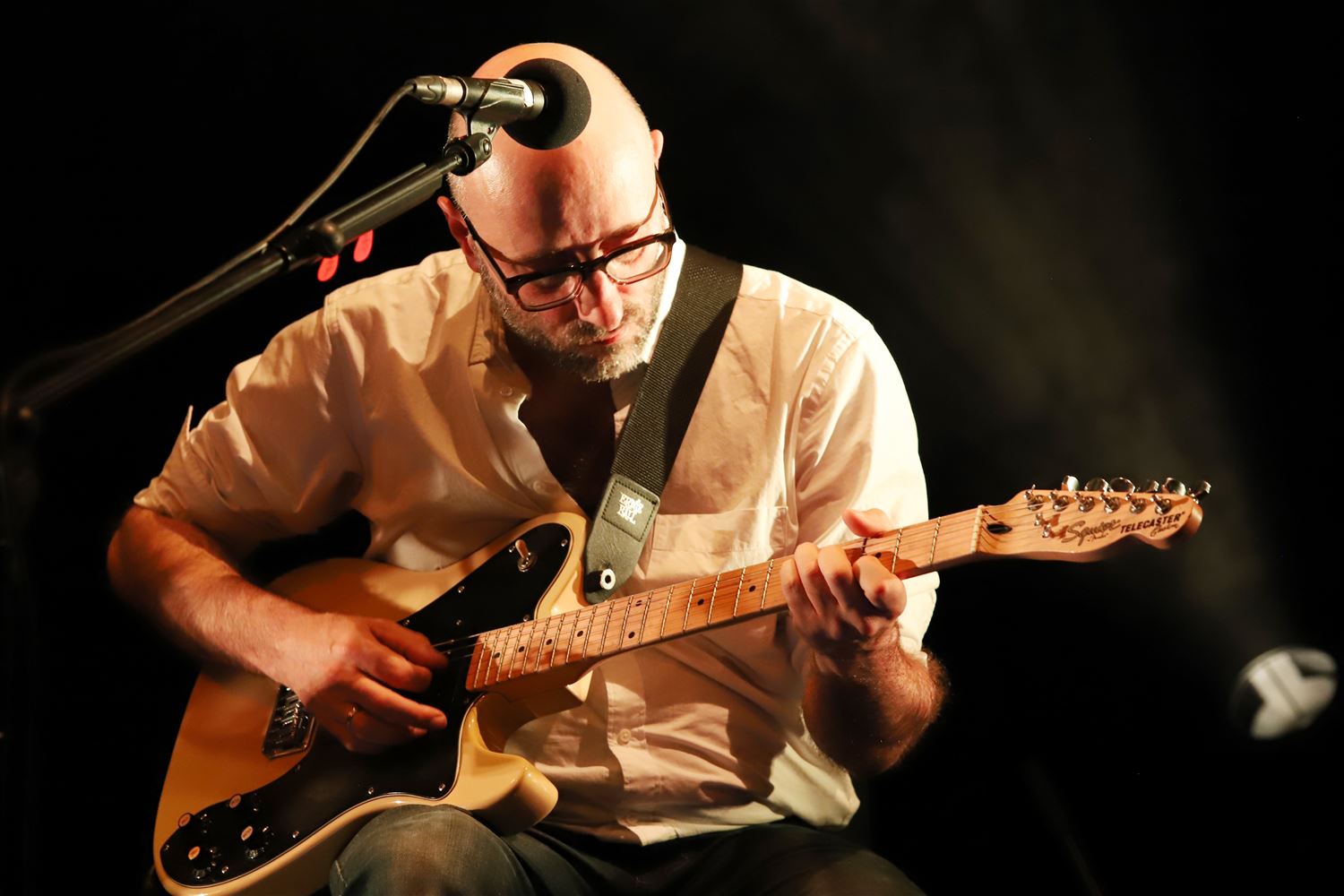 Jim White speelde vrijdagavond met zijn muzikanten een prachtig concert in de zwarte zaal van CC Muze. Met zijn eigenzinnige liedjes en bindteksten gaf hij een alternatieve kijk op de Southern States, religie en samenleving. (foto's Herman Eerdekens)79099