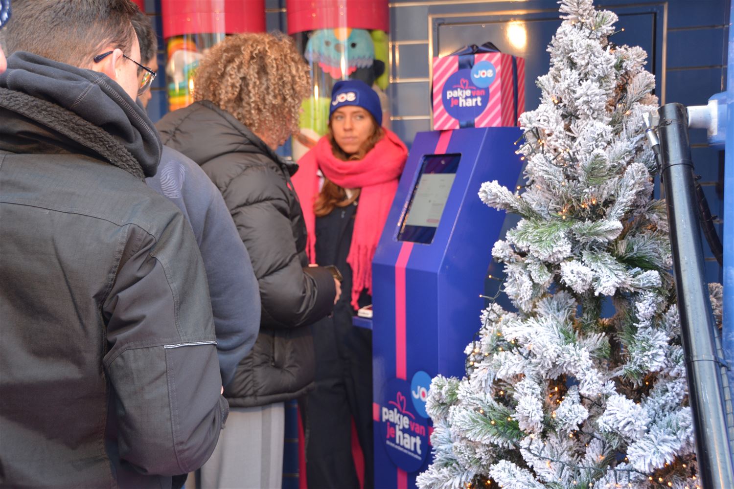 Radiozender JOE is vandaag op het Willibrordusplein neergestreken met zijn pakjestruck en zendt een hele dag zijn programma's live uit. Het is uiteraard de bedoeling om zoveel mogelijk pakjes te verkopen voor kinderen die anders geen cadeautje krijgen. Er is keuze tussen heel wat mogelijkheden en categorieën. Het plein is door de gemeentediensten mooi aangekleed met kerstbomen en er kwamen al heel wat mensen langs. Onder meer de kleuters van Straal zorgden met hun enthousiasme voor de nodige ambiance, ook de kinderopvang, mensen van 't Weyerke, buurtbewoners, ... zakten af naar het plein. En ook artiesten laten zich zien, Sabien Tiels tekende al present, straks worden onder meer Dana Winner, Pat Krimson en Loredana en nog anderen verwacht. Tussendoor zijn er ook getuigenissen. Verder kan je een kop warme soep of chocomelk van het DAC kopen, er zijn geschenkartikelen te koop, je kunt draaien aan het rad van fortuin of voor 5 euro - voor het goede doel - je Avatar laten maken waarmee je een kerstfilmpje kan versturen. Nadien verhuist het toestel naar de bib tot Kerstmis. Voor wie wil langskomen, de uitzendingen van Joe op het Willibrordusplein gaan nog door tot 18 uur.83855