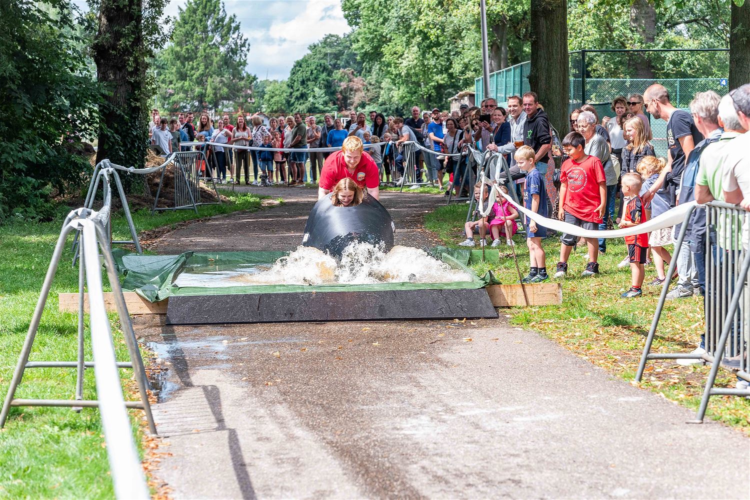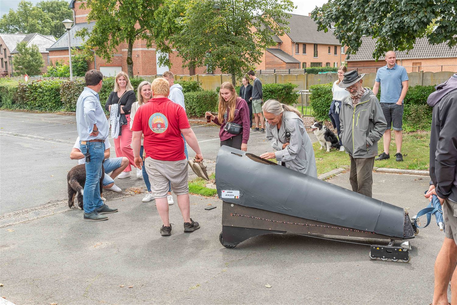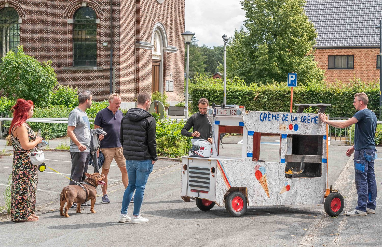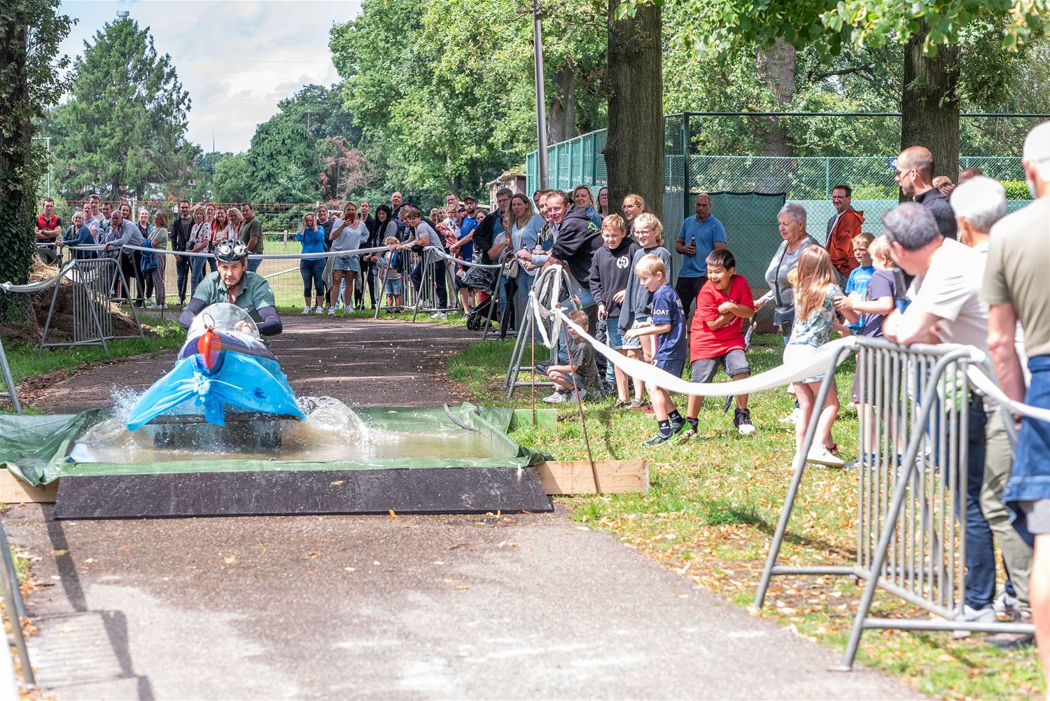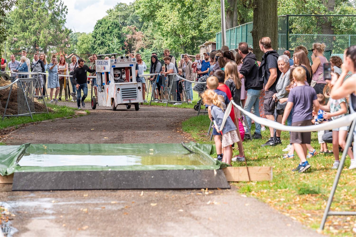 De parochiefeesten in Eversel mogen dan niet op schitterend weer rekenen, er was vandaag wel veel volk. En die toeschouwers kwamen vooral voor de eerste zeepkistenrace. Er waren weliswaar maar vijf deelnemers, maar die zorgden voor een ludiek spektakel waar iedereen veel plezier aan beleefde. Aan de jeugdlokalen was een 'ramp' gemaakt waar de zeepkisten een vliegende start namen, onderweg vormde een waterbak dan nog een hindernis. Elke team mocht drie pogingen ondernemen, maar voor heel wat toeschouwers had het nog wat langer mogen duren. Misschien beginnen anderen volgende week al te bouwen voor volgend jaar. (foto's Ann Jordens)78173