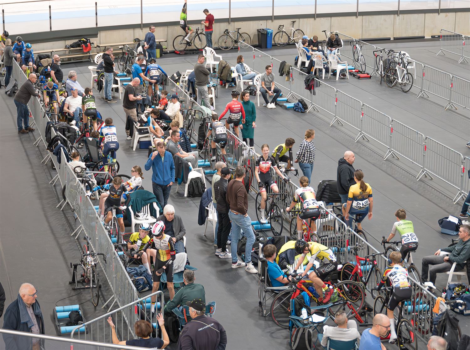 Heel wat jonge renners en rensters verschenen vandaag in de Velodroom aan de start van dag 1 van de Belgische pistekampioenschappen. Eerst werden de fietsen grondig technisch gecontroleerd door specialisten van Belgian Cycling. Na een opwarming op de rollen, mochten ze de baan op voor verschillende disciplines zoals sprint, afvalling en achtervolging. Ondanks het drukke programma en de vele deelnemers bleef vandaag de belangstelling eerder beperkt. Morgen is er dag 2, ook dan mogen inwoners van Heusden-Zolder gratis binnen. (foto's Roman Martyka)84044
