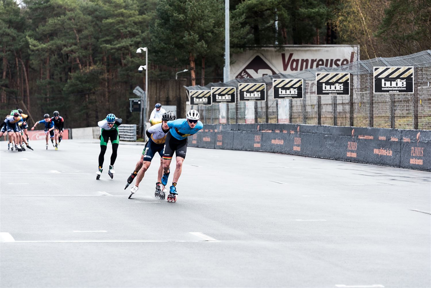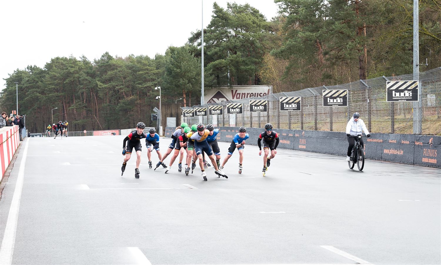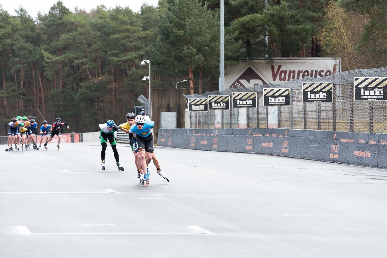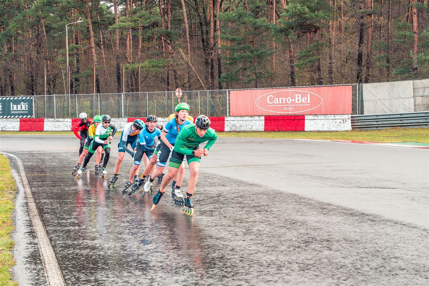 Vandaag werden op Circuit Zolder de wielen letterlijk onder de voeten gebonden. Een kleine 200 deelnemers uit binnen- en buitenland was afgezakt voor de Belgische kampioenschappen marathonskaten. Voor wie de volledige marathon koos betekende dat dus een dikke 42 km. Na de middag konden de recreanten in een stralend zonnetje skaten, maar de zowat 40 deelnemers aan de topwedstrijden in de voormiddag moesten het op een nat wegdek beslechten. De Belgische top 4 was helaas niet aanwezig wegens de wereldkampioenschappen in Shanghai. Joren Geerts kon zich bij de dames tot kampioen kronen, bij de heren werd Brecht Lippens kampioen. (foto’s Ann Jordens)88126