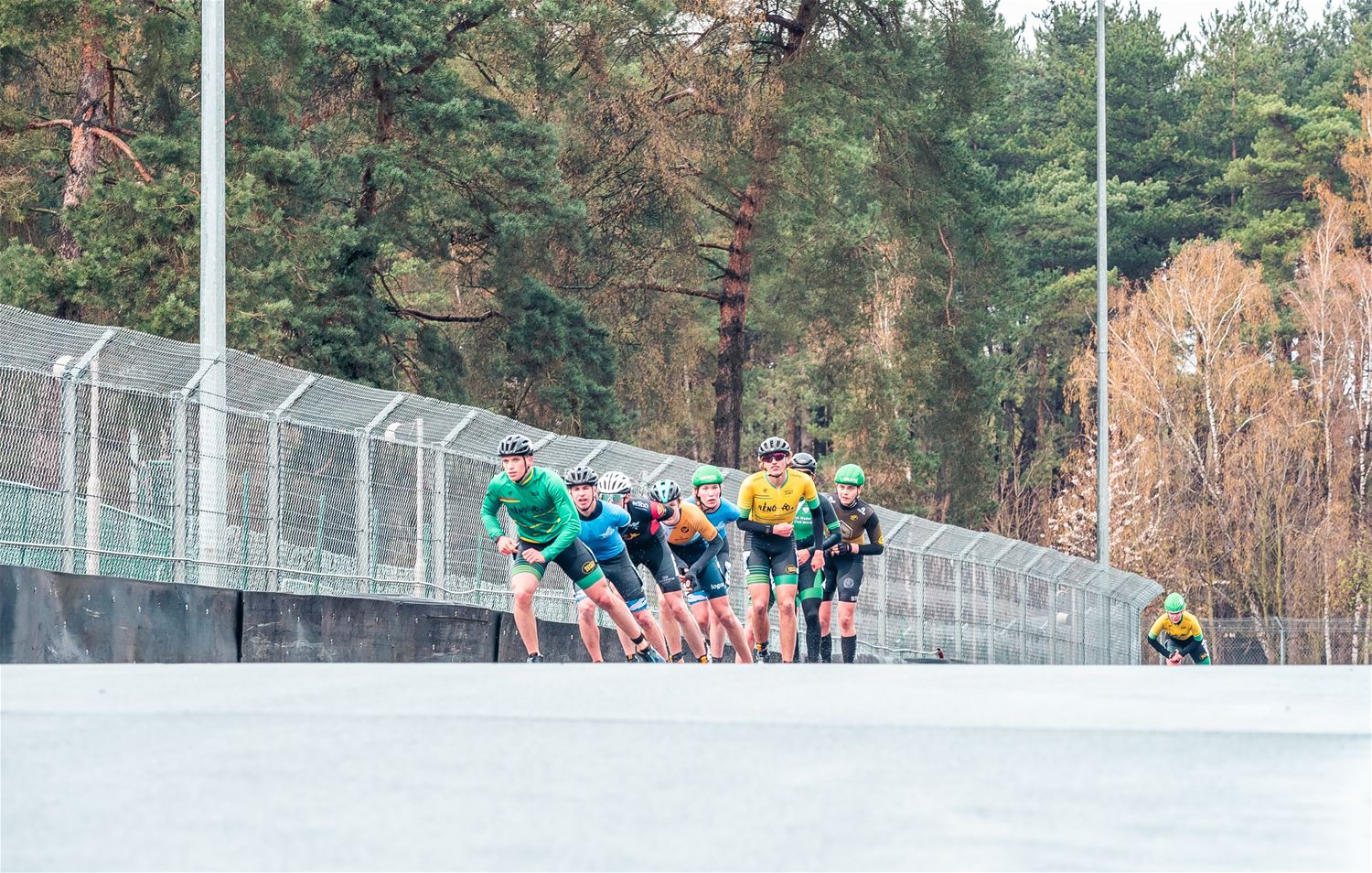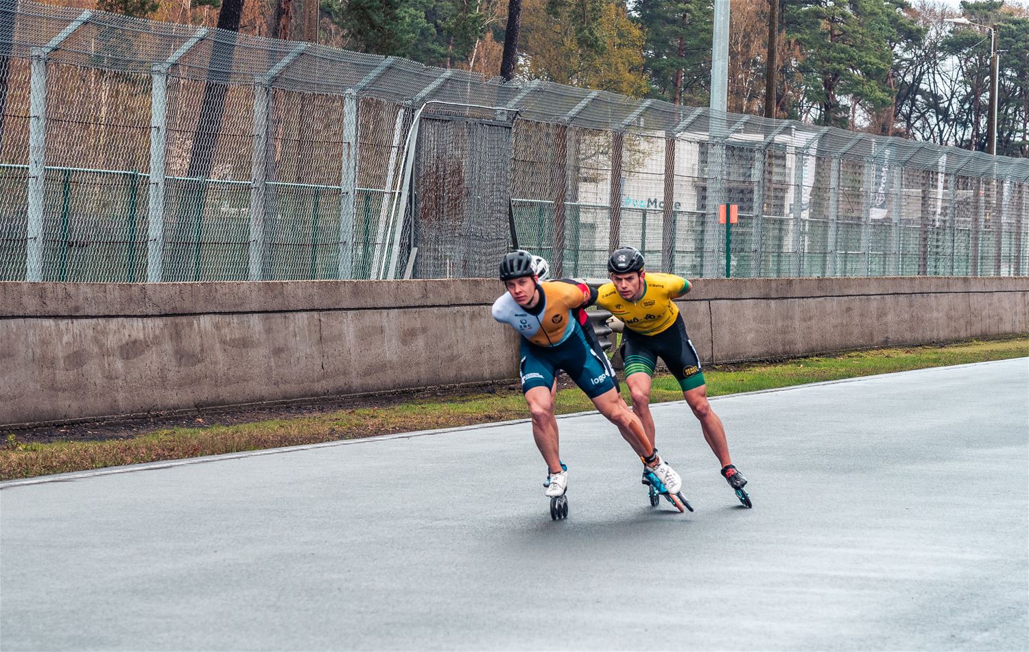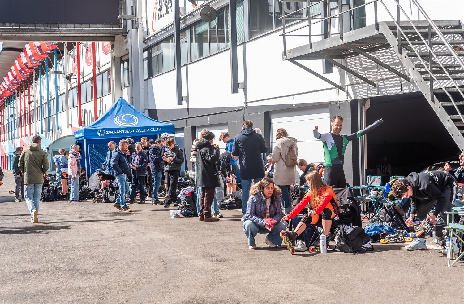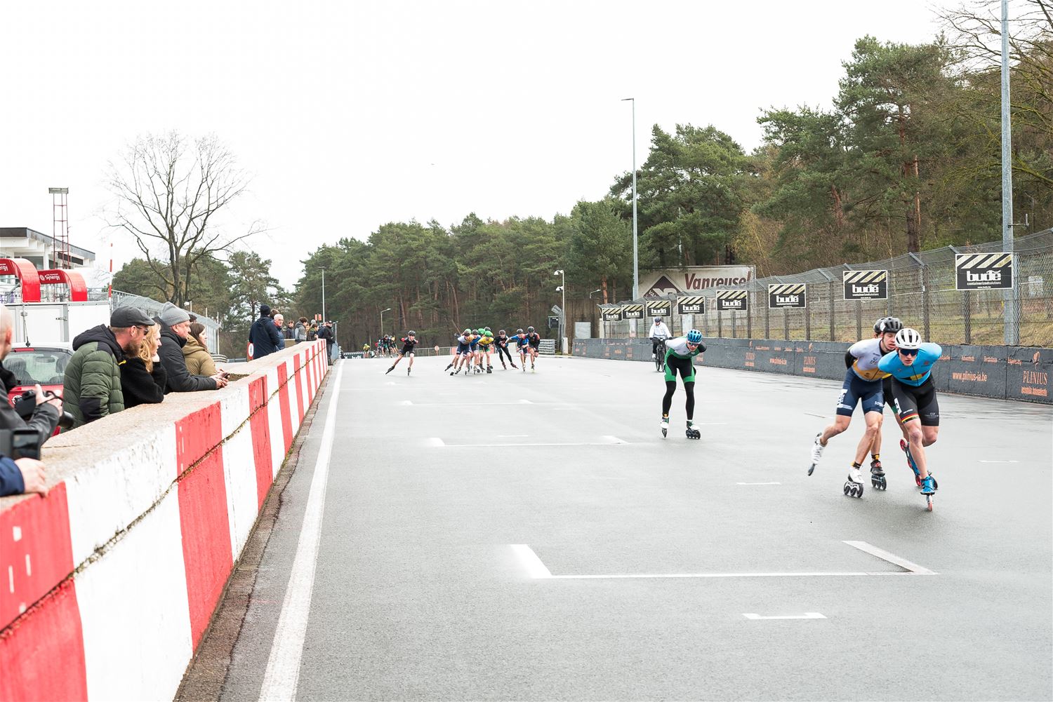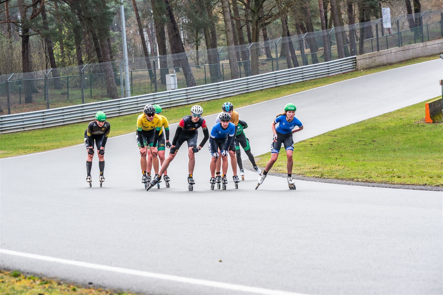 Vandaag werden op Circuit Zolder de wielen letterlijk onder de voeten gebonden. Een kleine 200 deelnemers uit binnen- en buitenland was afgezakt voor de Belgische kampioenschappen marathonskaten. Voor wie de volledige marathon koos betekende dat dus een dikke 42 km. Na de middag konden de recreanten in een stralend zonnetje skaten, maar de zowat 40 deelnemers aan de topwedstrijden in de voormiddag moesten het op een nat wegdek beslechten. De Belgische top 4 was helaas niet aanwezig wegens de wereldkampioenschappen in Shanghai. Joren Geerts kon zich bij de dames tot kampioen kronen, bij de heren werd Brecht Lippens kampioen. (foto’s Ann Jordens)88126