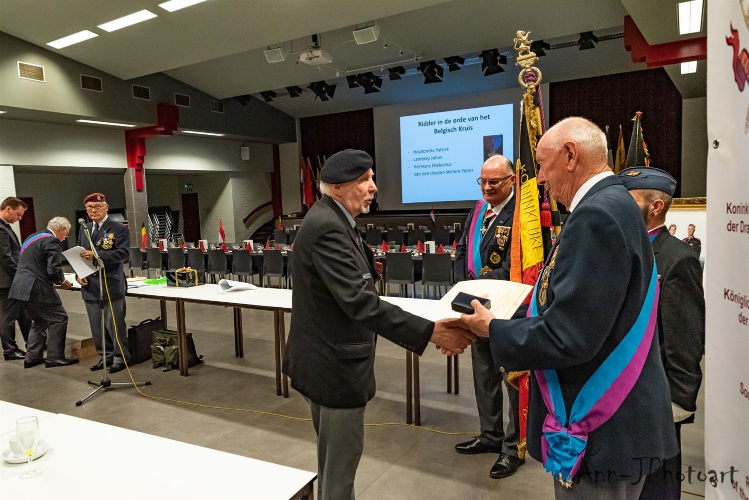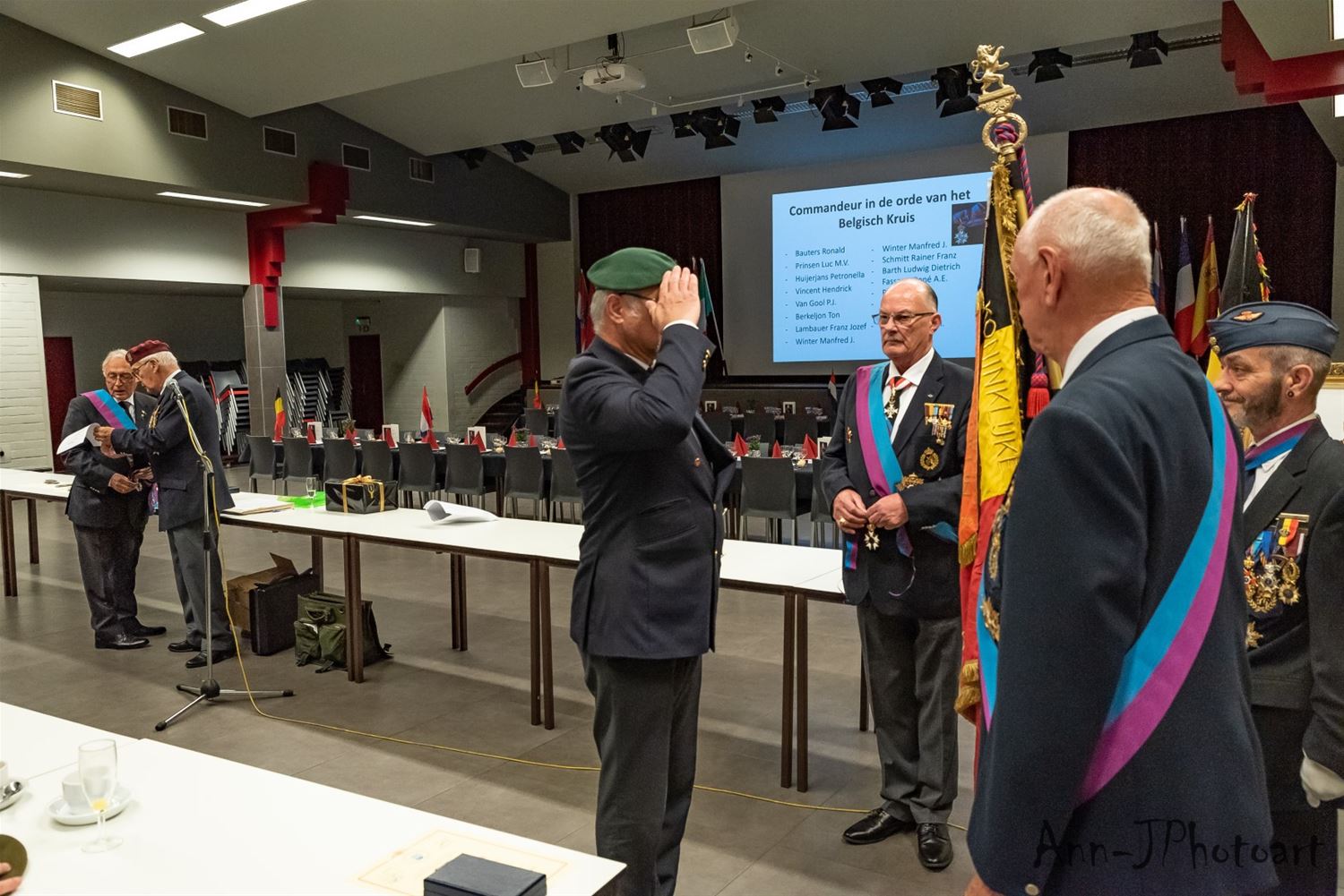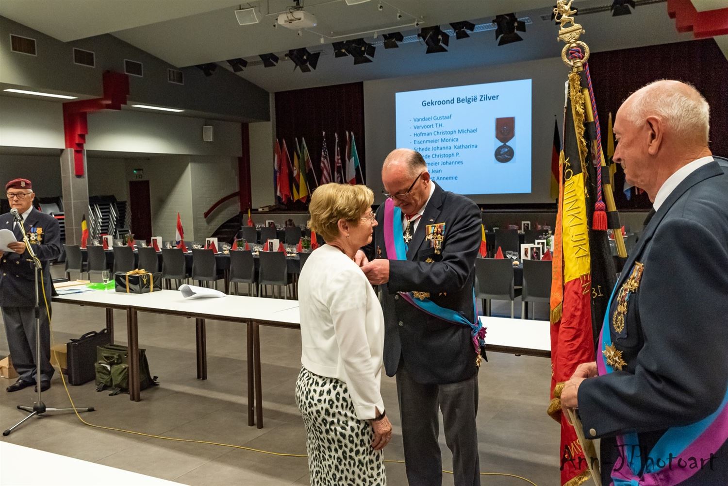 De Koninklijke en Menslievende Vereniging van Dragers van Eretekens en Medailles vqn België hield haar jaarlijkse promotiefeest van de Limburgse afdeling in 't Kuipershof. Naast de uitreiking van de medailles aan verdienstelijke leden waren er toespraken door provinciaal voorzitter Tonny Leten, de regionale voorzitter René Verkuijlen en de Belgische nationale voorzitter Rudy Maes. Een emotioneel moment was ook de overdracht van de vlag, na vele jaren is het aan een nieuwe vlaggendrager. De vereniging, die bestaat sinds 1865, heeft op dit moment 172 leden, van wie 95 in Limburg, 47 in Nederland, 30 in Duitsland en er zijn 6 nieuwe leden bijgekomen. Naast de uitreiking van medailles doet de vereniging ook zelf aan liefdadigheid. (foto's Ann Jordens)73184