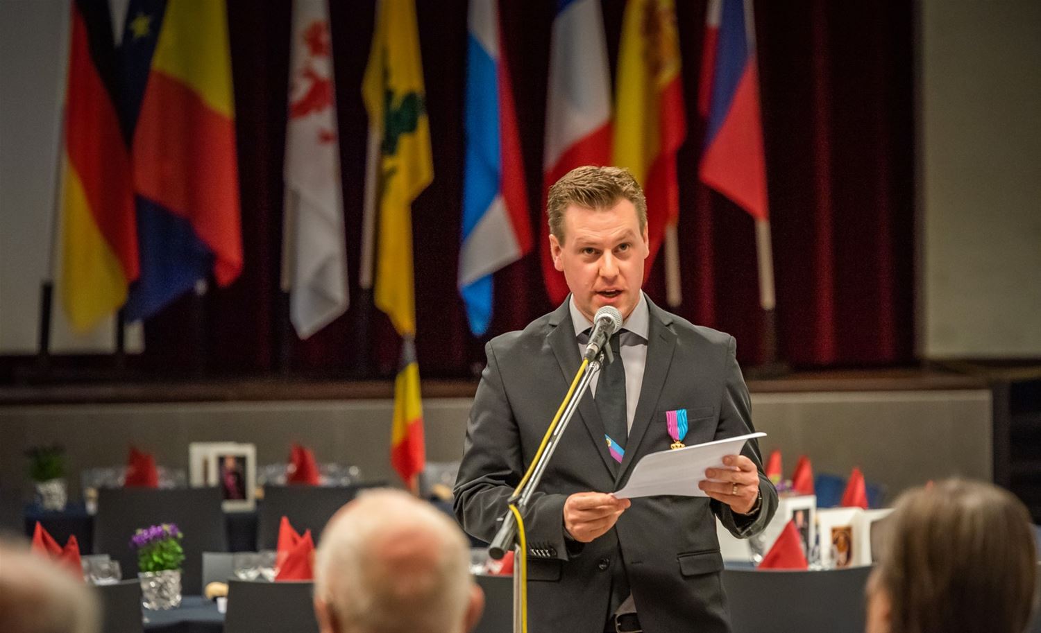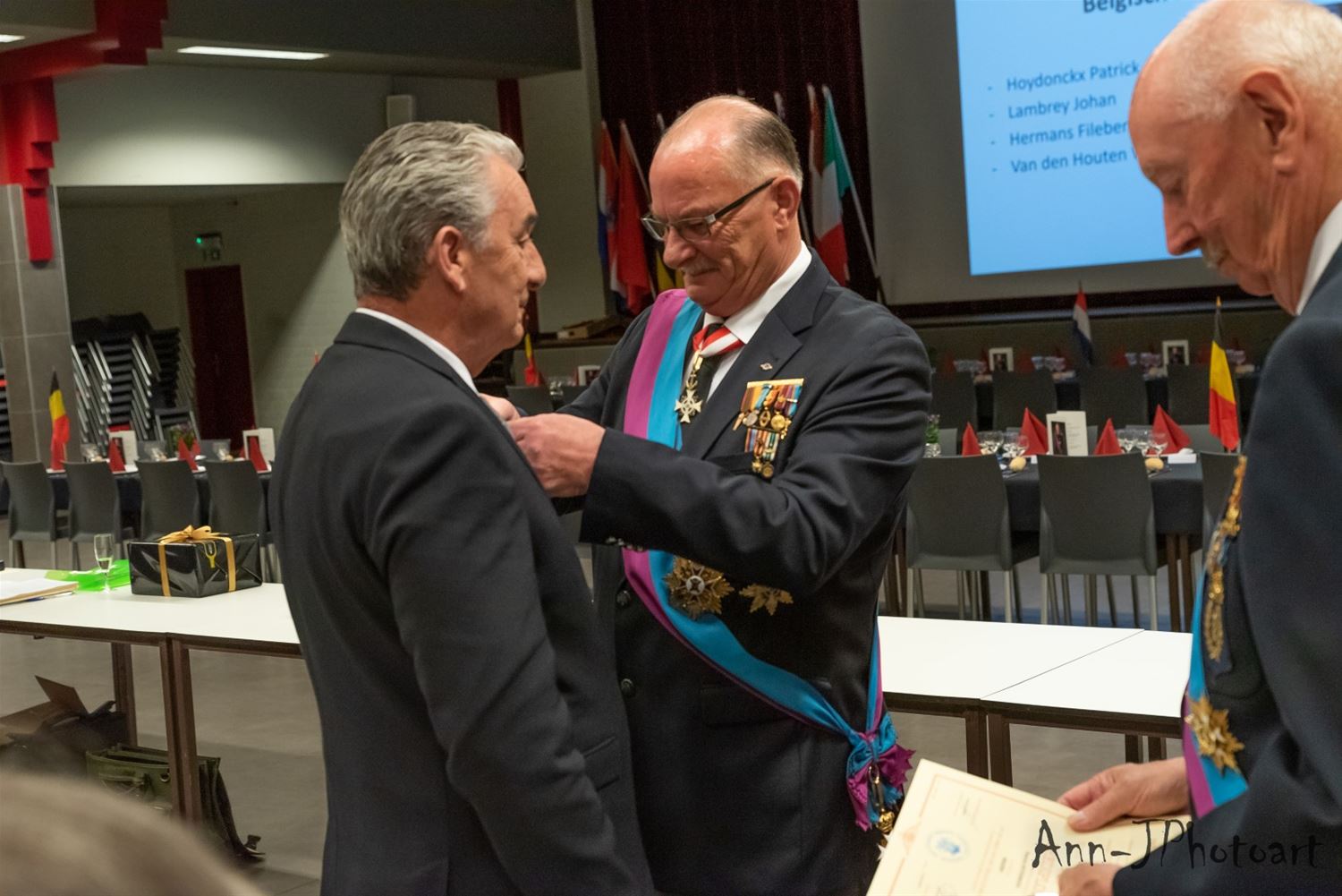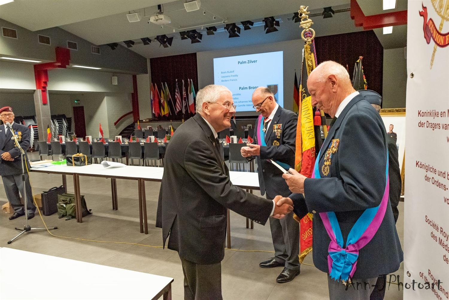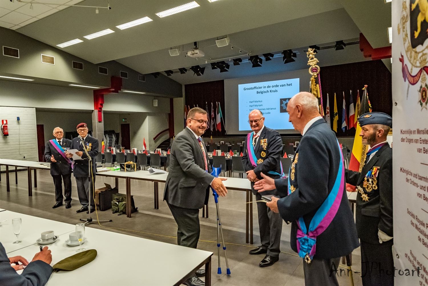 De Koninklijke en Menslievende Vereniging van Dragers van Eretekens en Medailles vqn België hield haar jaarlijkse promotiefeest van de Limburgse afdeling in 't Kuipershof. Naast de uitreiking van de medailles aan verdienstelijke leden waren er toespraken door provinciaal voorzitter Tonny Leten, de regionale voorzitter René Verkuijlen en de Belgische nationale voorzitter Rudy Maes. Een emotioneel moment was ook de overdracht van de vlag, na vele jaren is het aan een nieuwe vlaggendrager. De vereniging, die bestaat sinds 1865, heeft op dit moment 172 leden, van wie 95 in Limburg, 47 in Nederland, 30 in Duitsland en er zijn 6 nieuwe leden bijgekomen. Naast de uitreiking van medailles doet de vereniging ook zelf aan liefdadigheid. (foto's Ann Jordens)73184