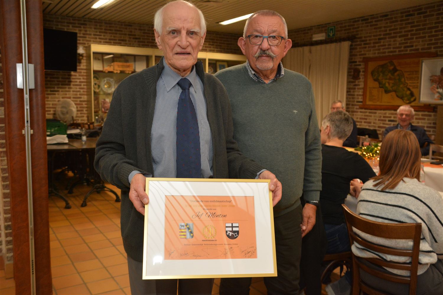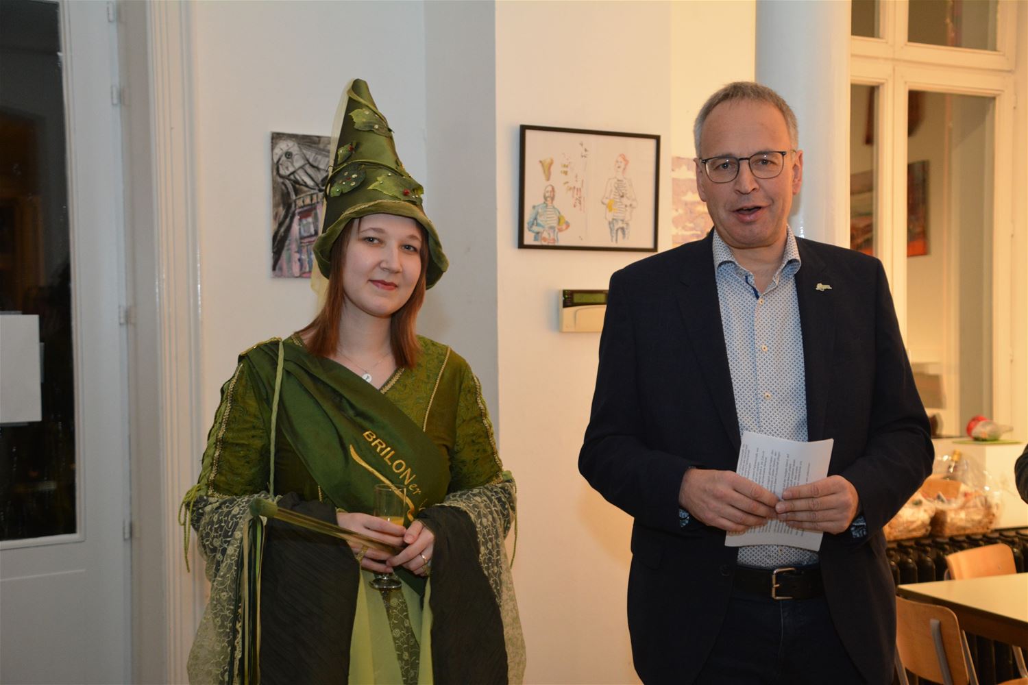Met een plechtigheid zijn vanavond in kasteel Meylandt de lichtjes in de kerstboom van partnerstad Brilon ontstoken. Voorzitter Michel Oyen van het Verbroederingscomité was verheugd dat de traditie werd voortgezet waarmee Brilon een kerstboom schenkt aan Heusden-Zolder, een boom die een zichtbare plaats kreeg voor het kasteel en langs de Meylandtlaan. Schepen Marten Frederix benadrukte dat wij het allemaal goed hebben en een gezellige periode beleven maar dat we er ook moeten bij stilstaan dat voor veel volkeren in de wereld helemaal niet evident is, en dat zij in heel andere omstandigheden deze periode moeten doorkomen. Marcus Bange van het stadsbestuur van Brilon vertegenwoordigde burgemeester Christof Bartsch, die last minute door familiale omstandigheden moest verstek geven. Hij beloofde dat de traditie van de kerstboomschenking ook de volgende jaren zal voortgezet worden en misschien nog kan uitgebreid worden. Iets wat bij de aanwezigen in ieder geval als muziek in de oren klonk. Geschenken werden uitgewisseld met de nadruk op lokale specialiteiten. Opvallende aanwezige was ook Hannah Zwingelberg, de 20ste Waldfee van Brilon. De woudfee is een felbegeerde ambassadeursfunctie in een stad die door een enorme bosoppervlakte bedekt wordt. Tenslotte werd Jef Minten gehuldigd als ere-lid van het Verbroederingscomité. Jef zet zich al meer dan 50 jaar in als vrijwilliger voor de verbroedering, en voor heel wat andere verenigingen. Hij vertelde hoe alles in 1974 begon toen hij samen met andere collega’s van de post in Heusden – na hun dagelijkse ronde – met de bus naar Brilon trok voor een verbroedering met collega’s. Vooraf moest hij in de bibliotheek gaan opzoeken waar het toen nog onbekende Brilon lag. Datzelfde jaar volgde een tegenbezoek en de trein was vertrokken. Later nam de het Verbroederingscomité tot op vandaag de fakkel over. Momenteel bestaan trouwens heel wat plannen om die verbroedering extra impulsen te geven met uitwisselingen op meerdere vlakken.87154