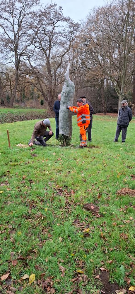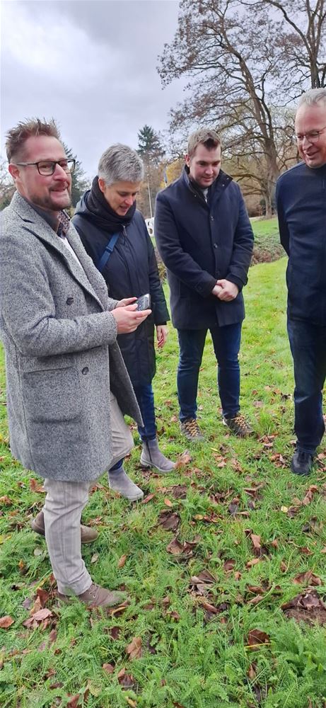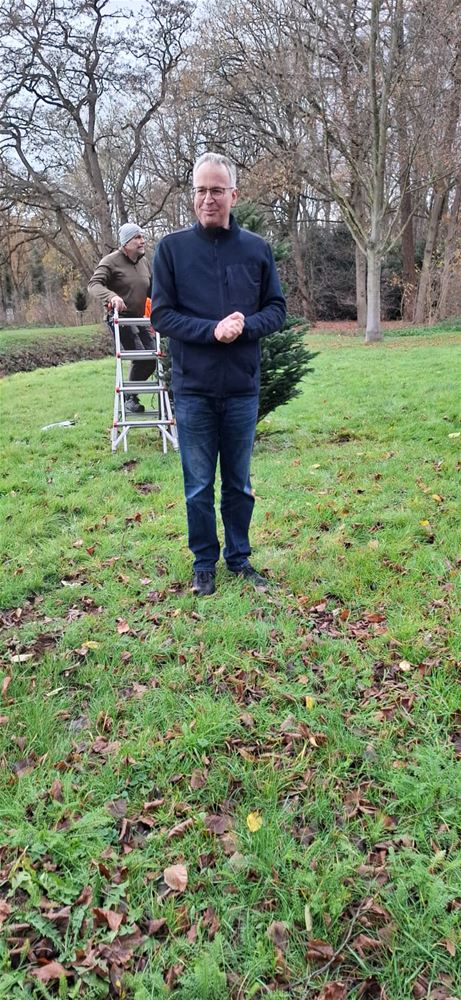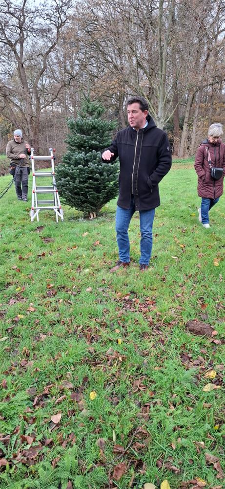 Een delegatie uit partnerstad Brilon is vanmiddag op Meylandt gearriveerd mét een kerstboom uit hun woud. Die werd door het gemeentebestuur in ontvangst genomen en kreeg een plaatsje voor het kasteel. Vanavond is er nog een korte plechtigheid waarbij omstreeks 18.30 uur de lichtjes in de boom worden ontstoken. (foto’s Michel Oyen)87143