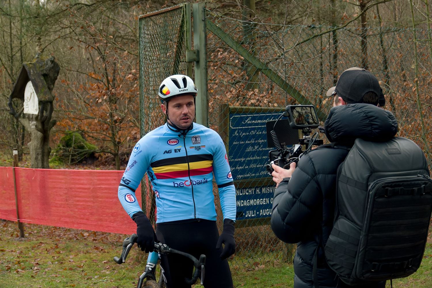 Bondscoach Angelo De Clercq is niet iemand die alleen maar vanop de zijlijn toekijkt. Hij sprong vandaag zelf op de fiets om het BK-parcours te verkennen. Ook in het weekend zal hij van nabij alles opvolgen, want hij moet stilaan aan zijn WK-selectie beginnen denken. Toch lijkt het een open kampioenschap te worden. Of we als Limburgers veel moeten juichen, is niet zeker, toch niet bij de elite. Quinten Hermans en Timo Kielich zie je dit seizoen niet of weinig in het veld. Laura Verdonschot start wel om haar supporters te plezieren, maar zonder enige ambitie in afwachting van haar operaties. Ook Fleur Moors laat verstek gaan om gezondheidsredenen. Maar hopelijk kijkt de bondscoach samen met ons naar de jonge renners van eigen bodem: Mathiz Tielens bij de eerstejaars nieuwelingen, en de broers Yoren en Yenthe Vanhoudt die bij de U23 zowat in hun achtertuin rijden. Daarnaast zijn er nog Melanie (junioren) en Thomas Lemmens (eerstejaars nieuwelingen), zus en broer uit Beringen. De jongeren zullen het moeten doen in het bronsgroene eikenhout. (foto's Robrecht Froyman)84164