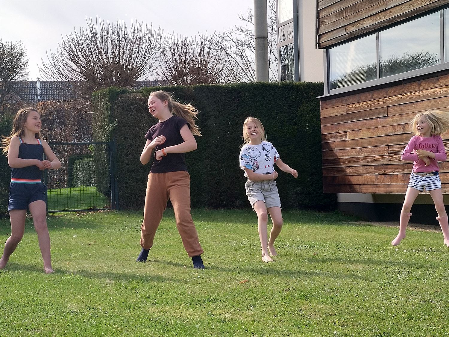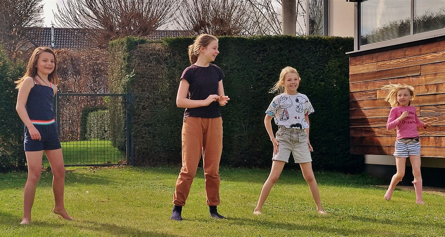 Paasvakantie, mooi weer en vooral geen beperkingen zoals de voorbije twee jaar. En dus namen enkele creatieve kinderen van de Pastoor Sakstraat (Blauwe Wijk) het initiatief om de volwassenen uit hun kot te lokken. Ze staken een eigen show in elkaar, gingen met uitnodigingen van deur tot deur en stoomden hun optreden klaar. De toeschouwers daagden op, met een attentie voor de jonge artiesten, die zo op hun manier de buren weer bij elkaar brachten. 't Kan misschien inspiratie bieden voor anderen. (foto's Tony Sempels)72733