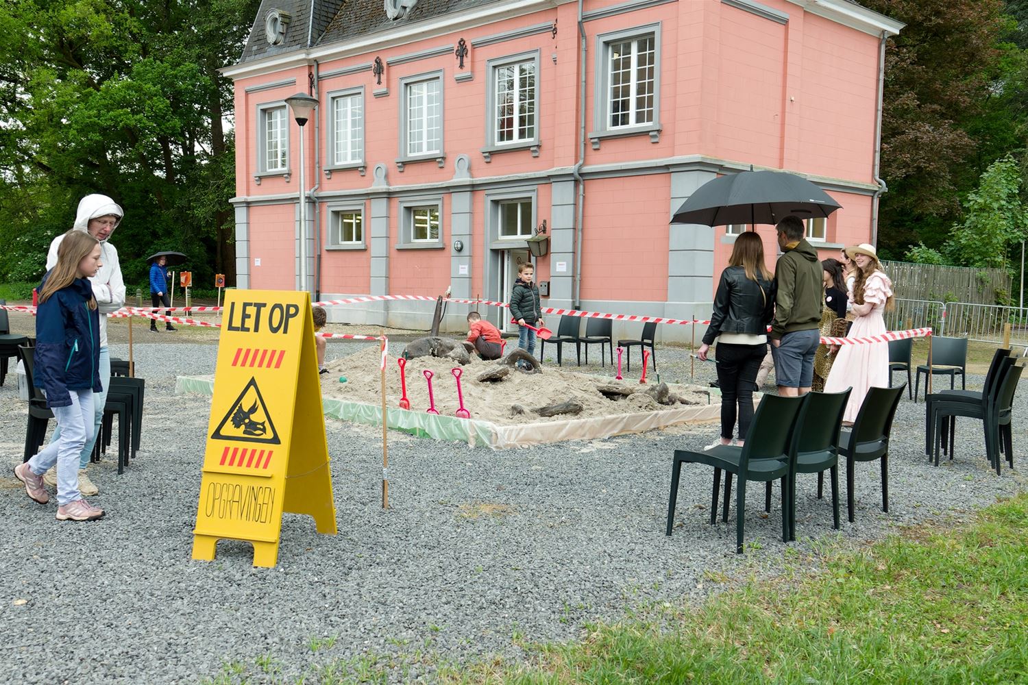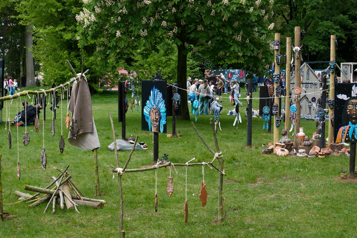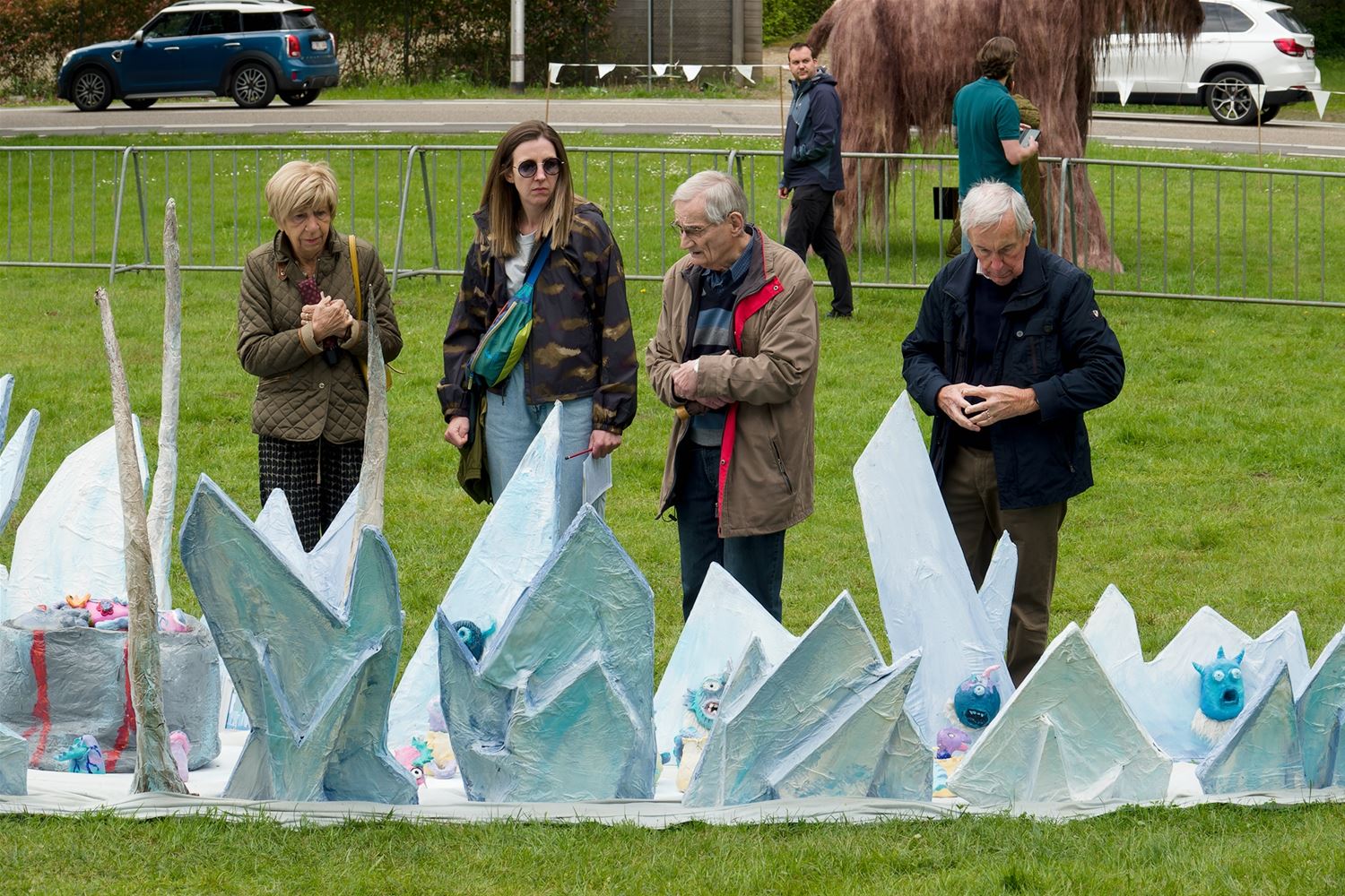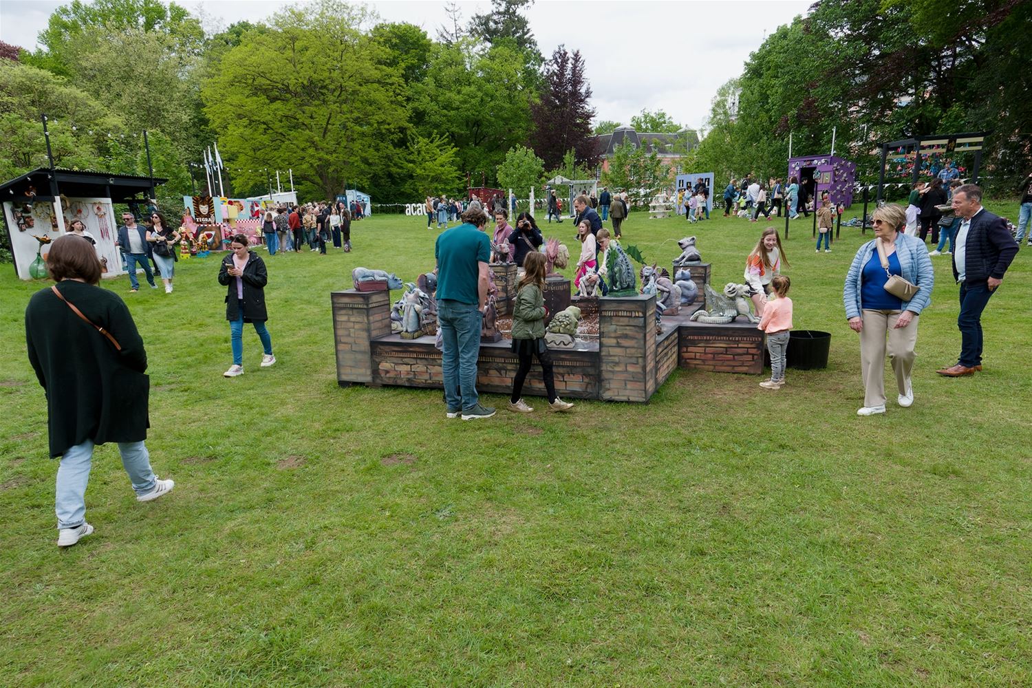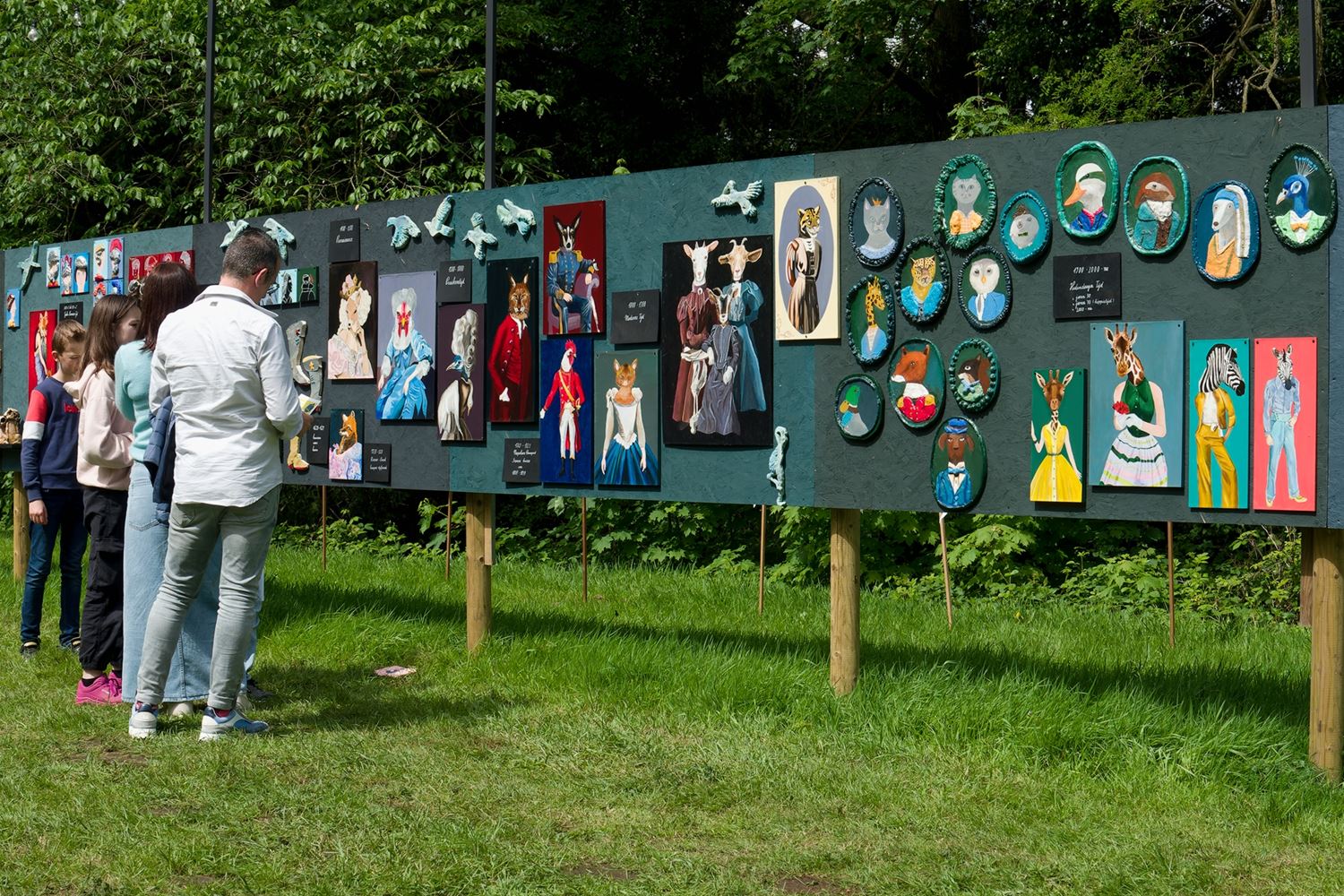 De weergoden waren in een artistieke bui vandaag want ondanks de mindere voorspellingen zijn de paraplu's het grootste deel van de dag overbodig geweest aan kasteel Meylandt. Er was dan ook veel belangstelling voor 'Knal in de Tijd' het kunstenfestival van de academie, waarin de jongste kunstenaars van alle afdelingen hun kunnen tonen. Ze gingen ver en minder ver terug in de tijd, van de tijd van de dino's tot nostalgische taferelen uit de jaren zestig. Zowaar een kerkhof van overleden artiesten waartussen ook Poetin wishfull-thinking-gewijs begraven lag. Het gaat om kleine kunstwerkjes, maar ook grote constructies zoals een fontein die langs alle zijden spuit. Er was op het terrein ook ludieke animatie, en muzikale optredens in de tent aan de achterzijde waar ook honger en dorst werden gestild. Morgen is er nog een eventdag met animatie, daarna kan de expo nog bezocht worden tot 20 mei. Een absolute aanrader. (foto's Robrecht Froyman)80845