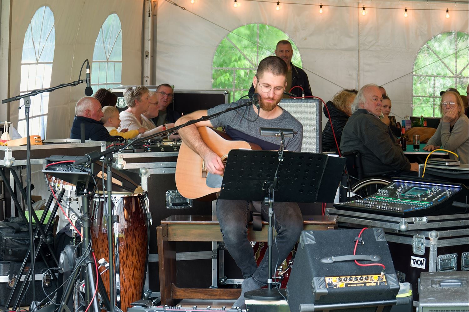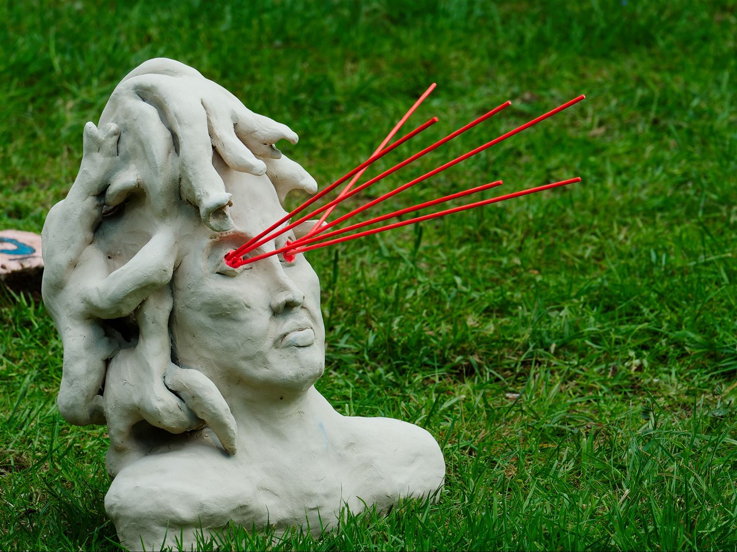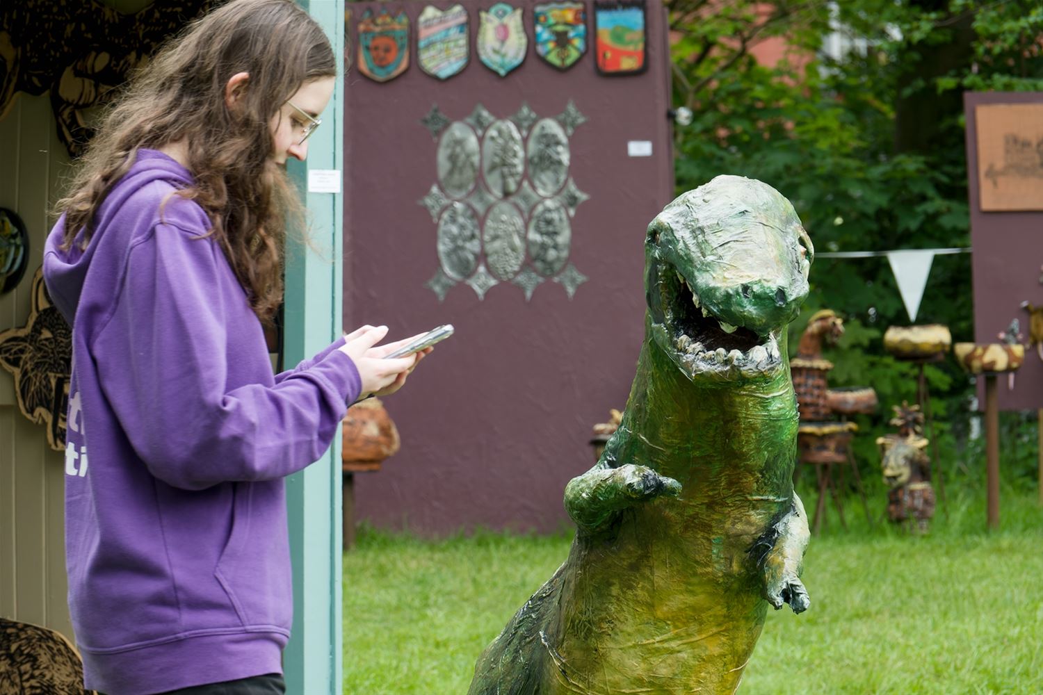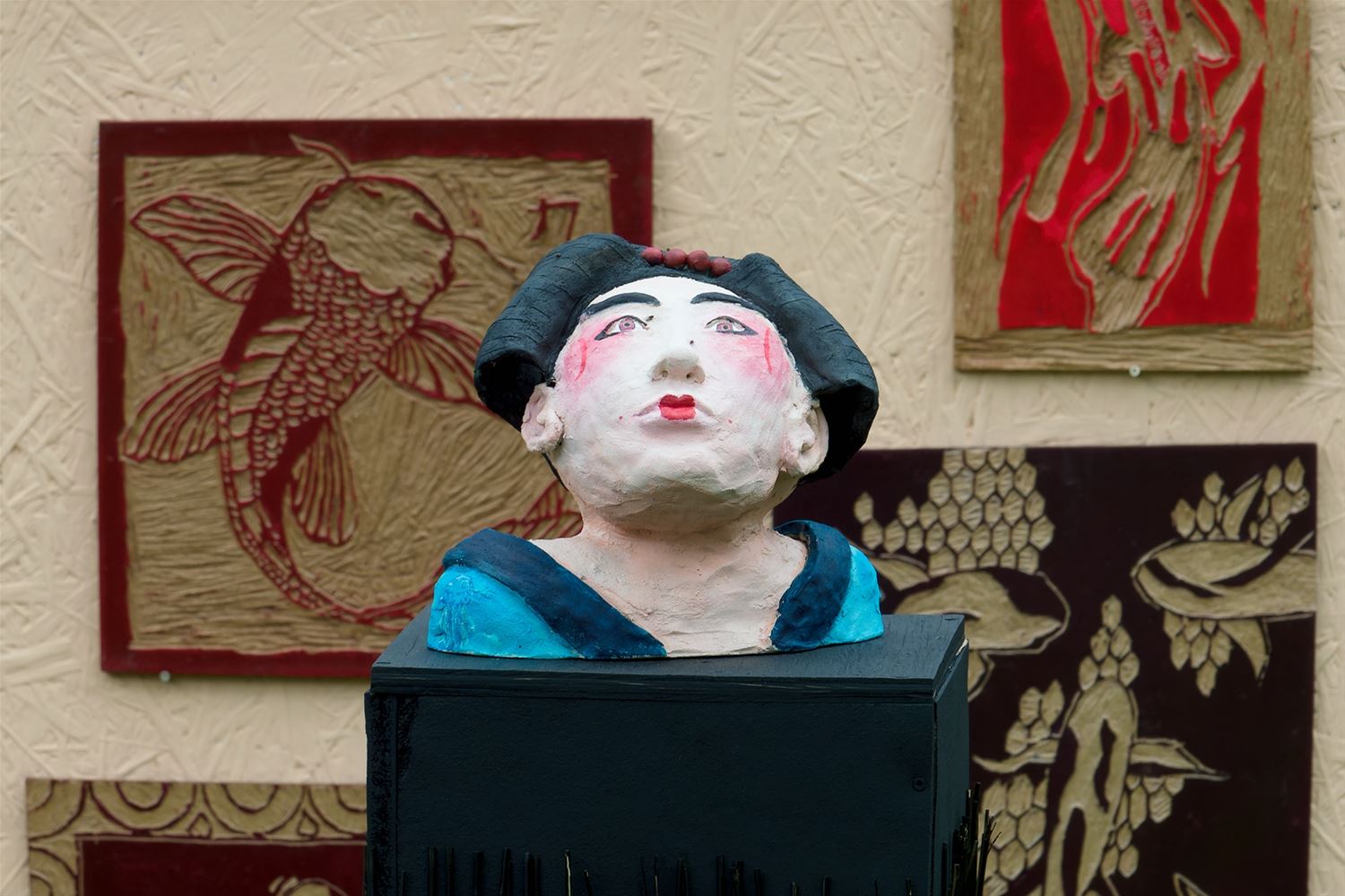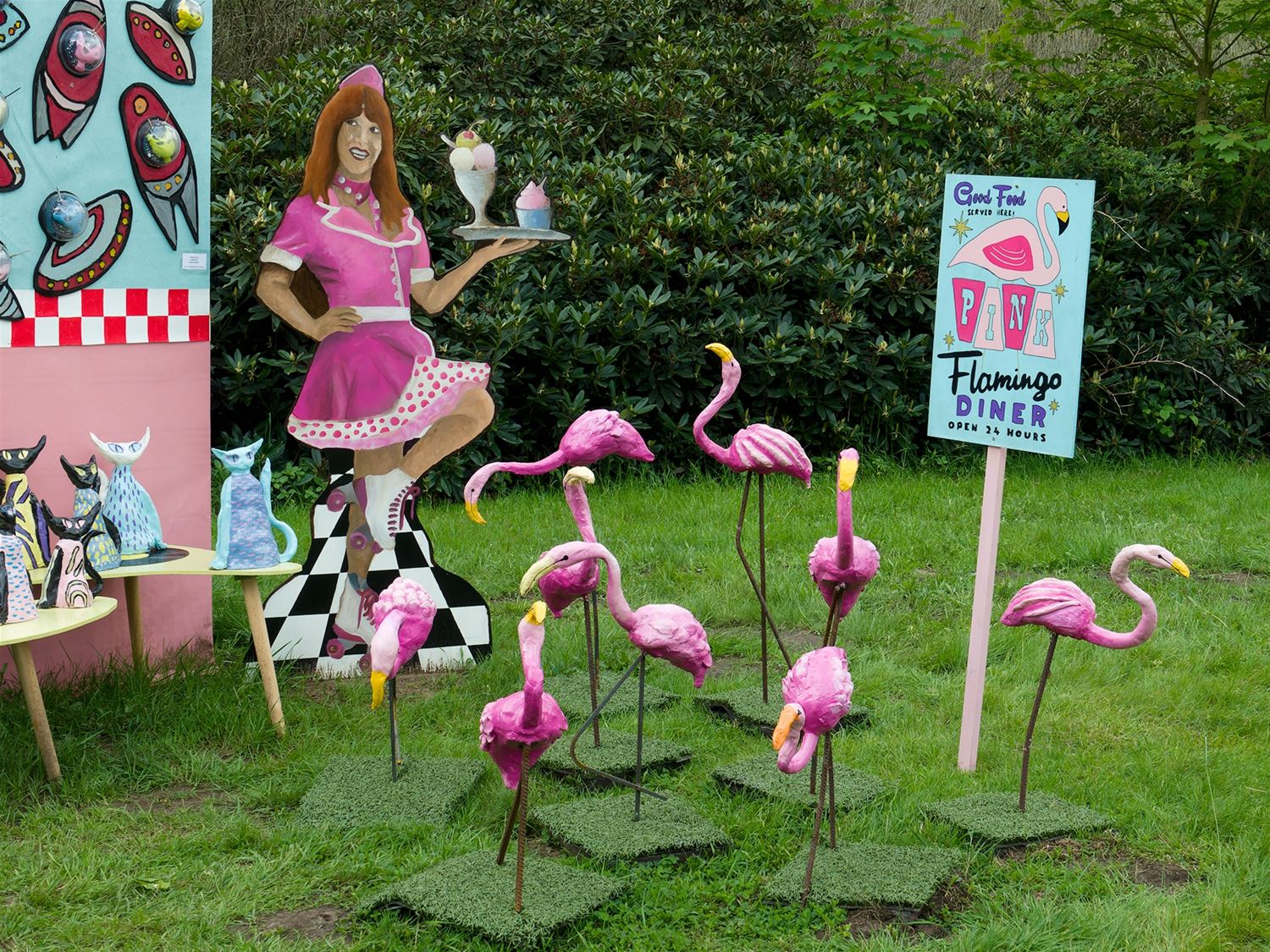 De weergoden waren in een artistieke bui vandaag want ondanks de mindere voorspellingen zijn de paraplu's het grootste deel van de dag overbodig geweest aan kasteel Meylandt. Er was dan ook veel belangstelling voor 'Knal in de Tijd' het kunstenfestival van de academie, waarin de jongste kunstenaars van alle afdelingen hun kunnen tonen. Ze gingen ver en minder ver terug in de tijd, van de tijd van de dino's tot nostalgische taferelen uit de jaren zestig. Zowaar een kerkhof van overleden artiesten waartussen ook Poetin wishfull-thinking-gewijs begraven lag. Het gaat om kleine kunstwerkjes, maar ook grote constructies zoals een fontein die langs alle zijden spuit. Er was op het terrein ook ludieke animatie, en muzikale optredens in de tent aan de achterzijde waar ook honger en dorst werden gestild. Morgen is er nog een eventdag met animatie, daarna kan de expo nog bezocht worden tot 20 mei. Een absolute aanrader. (foto's Robrecht Froyman)80845