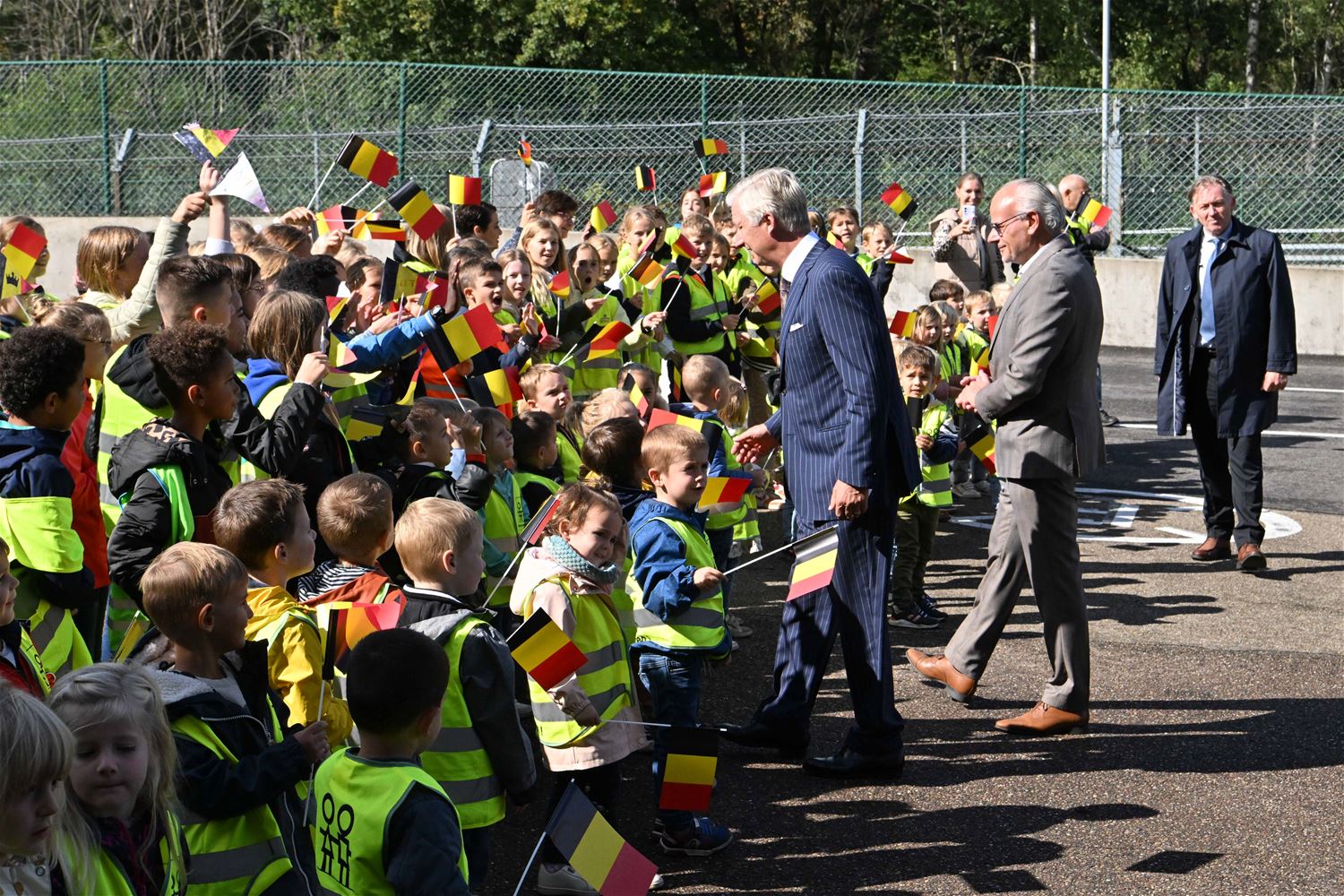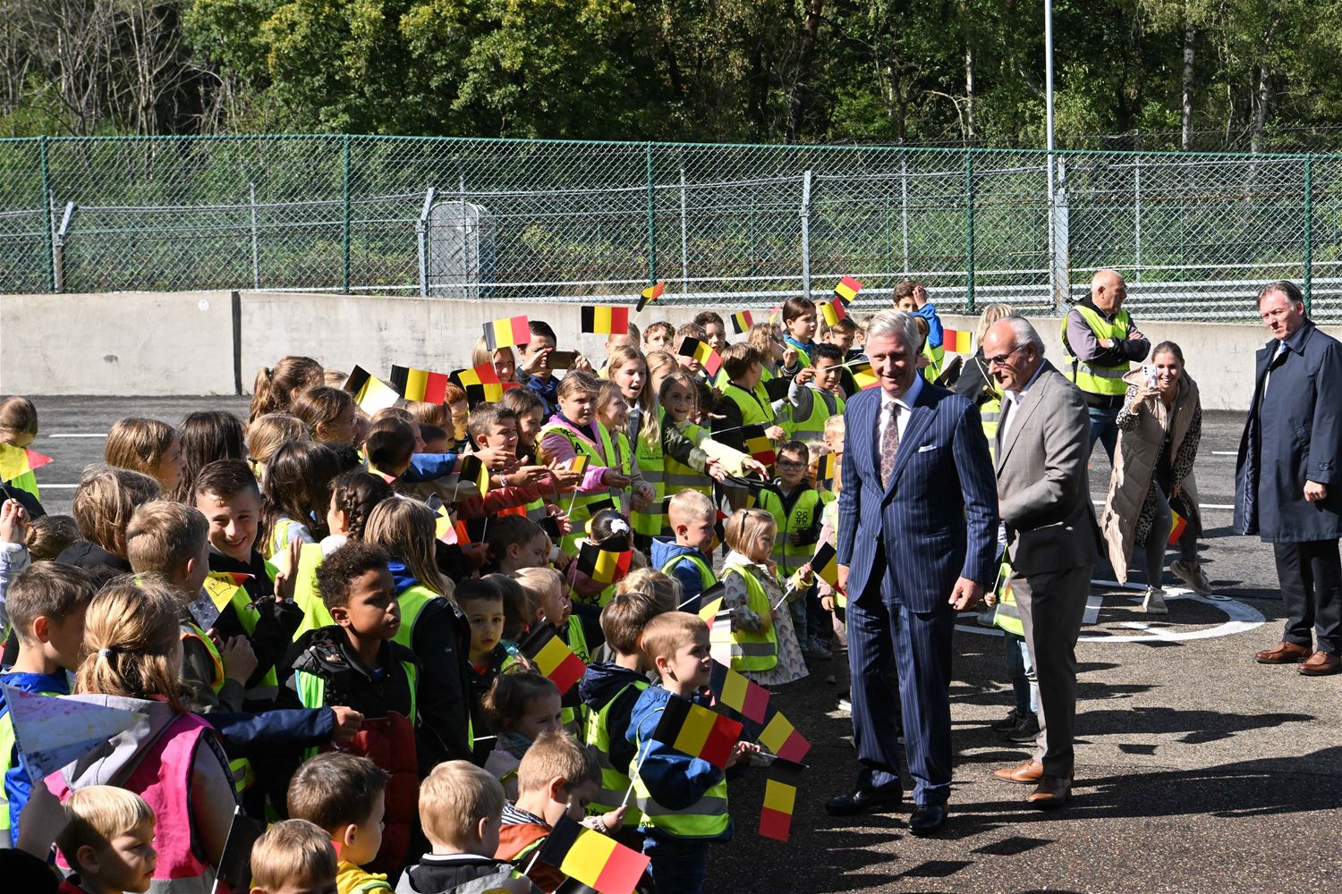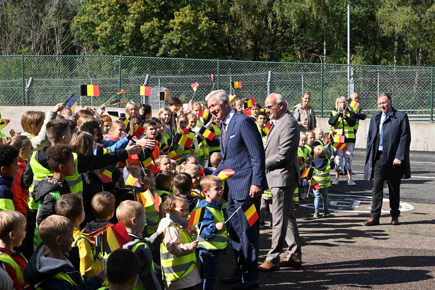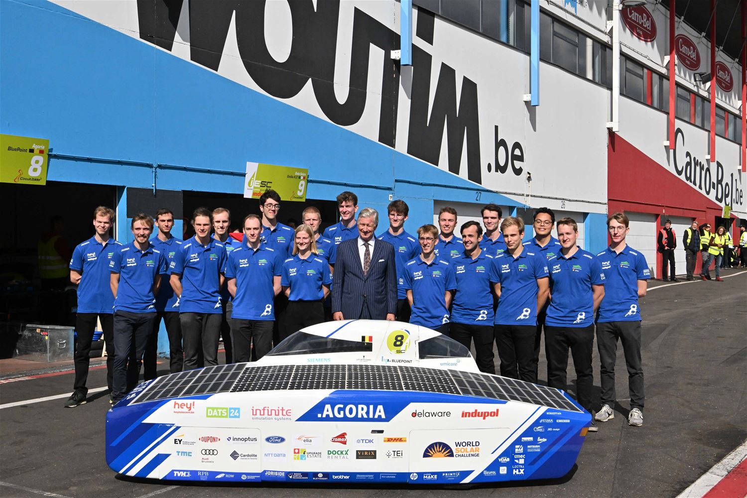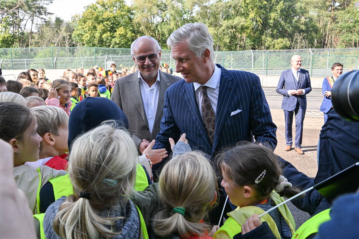 Koning Filip heeft deze namiddag zoals aangekondigd de deelnemers aan de iLumen European Solar Challenge bezocht. Morgen om 13 uur vertrekt een 20-tal zonnewagens voor de 24 uursrace. De koning werd toegejuicht door kinderen van onder meer de basisscholen Boekt en Viversel, hij ging hen ook even groeten, wat uiteraard zeer gesmaakt werd door de enthousiaste kinderen. De koning liet zich door de organisatoren van de race en verantwoordelijken van Circuit Zolder informeren over het hele gebeuren met de zonnenwagens. Hij was vooral geïnteresseerd hoe alles functioneerde en vooral hoe dit soort experimenten op termijn ook tot bredere toepassingen in het dagelijkse leven kunnen leiden. De koning ging op de foto met het Belgische Agoria-team met de Bluepoint en hij stapte in de Nederlandse bolide om een proefrondje te maken. Hij was erg onder de indruk van de mogelijkheden die de zonnewagens bieden. (foto's Hans Put)75225