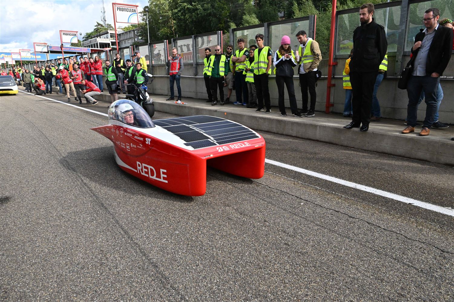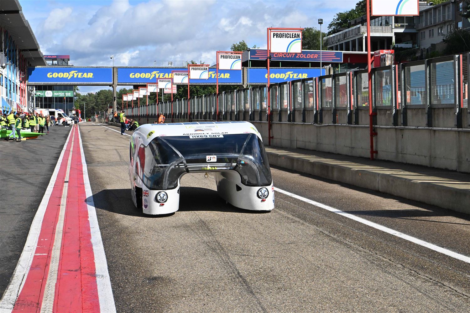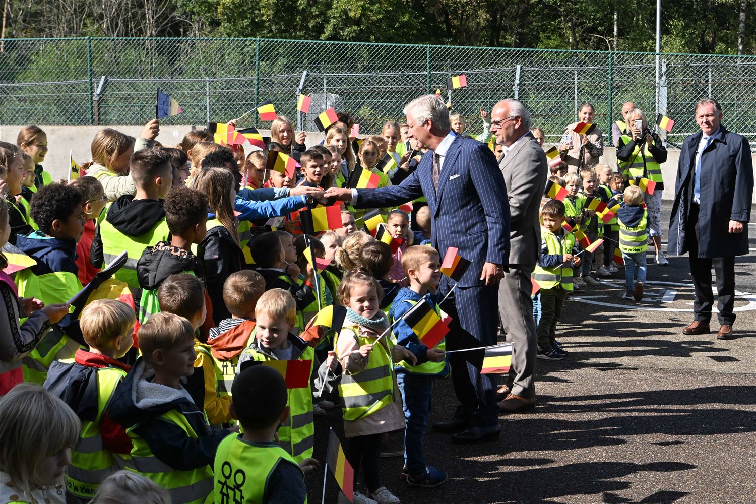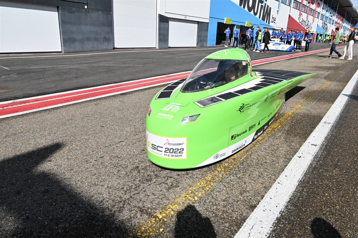 Koning Filip heeft deze namiddag zoals aangekondigd de deelnemers aan de iLumen European Solar Challenge bezocht. Morgen om 13 uur vertrekt een 20-tal zonnewagens voor de 24 uursrace. De koning werd toegejuicht door kinderen van onder meer de basisscholen Boekt en Viversel, hij ging hen ook even groeten, wat uiteraard zeer gesmaakt werd door de enthousiaste kinderen. De koning liet zich door de organisatoren van de race en verantwoordelijken van Circuit Zolder informeren over het hele gebeuren met de zonnenwagens. Hij was vooral geïnteresseerd hoe alles functioneerde en vooral hoe dit soort experimenten op termijn ook tot bredere toepassingen in het dagelijkse leven kunnen leiden. De koning ging op de foto met het Belgische Agoria-team met de Bluepoint en hij stapte in de Nederlandse bolide om een proefrondje te maken. Hij was erg onder de indruk van de mogelijkheden die de zonnewagens bieden. (foto's Hans Put)75225