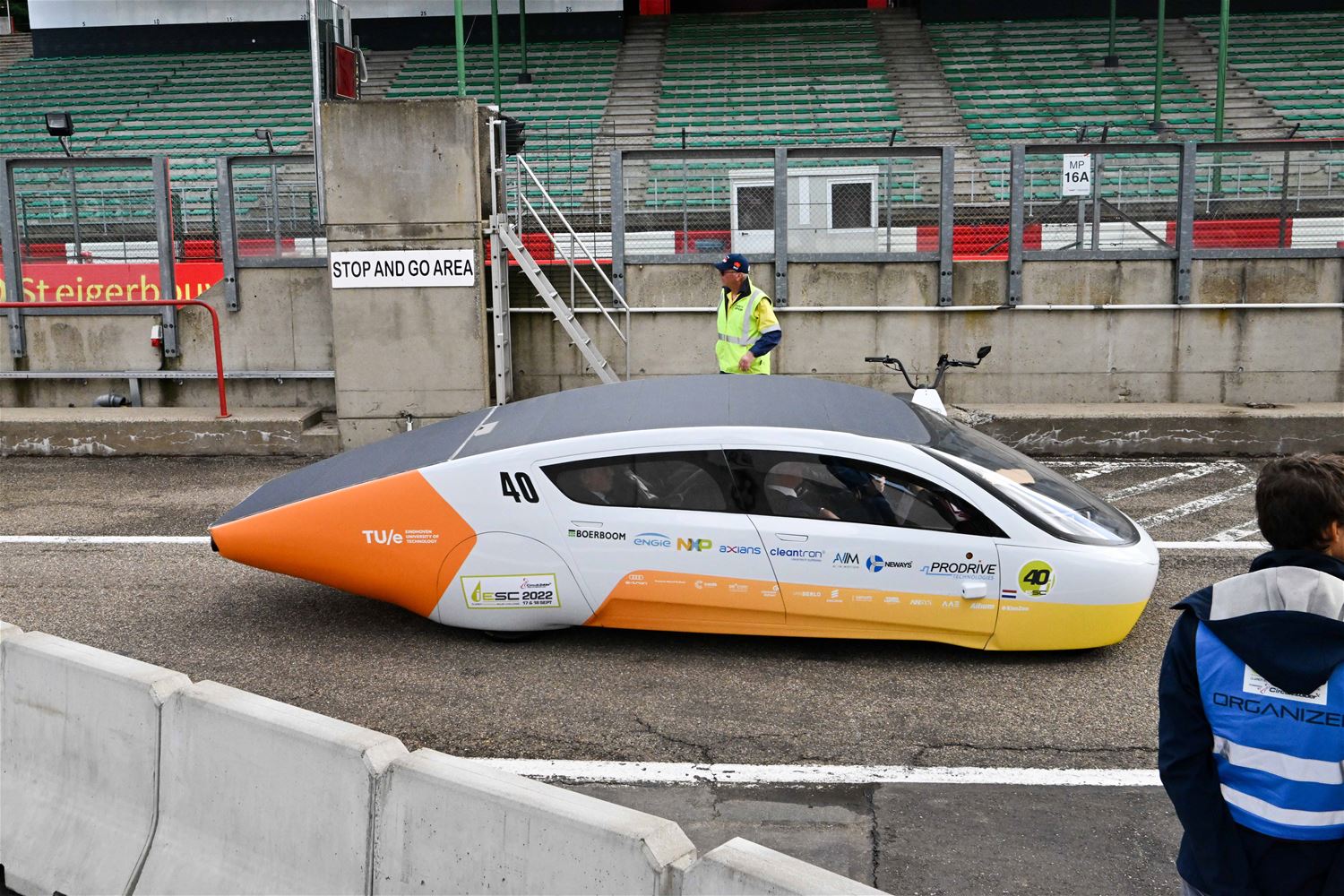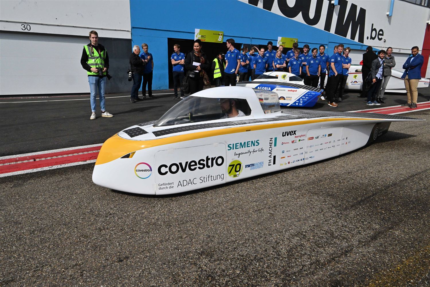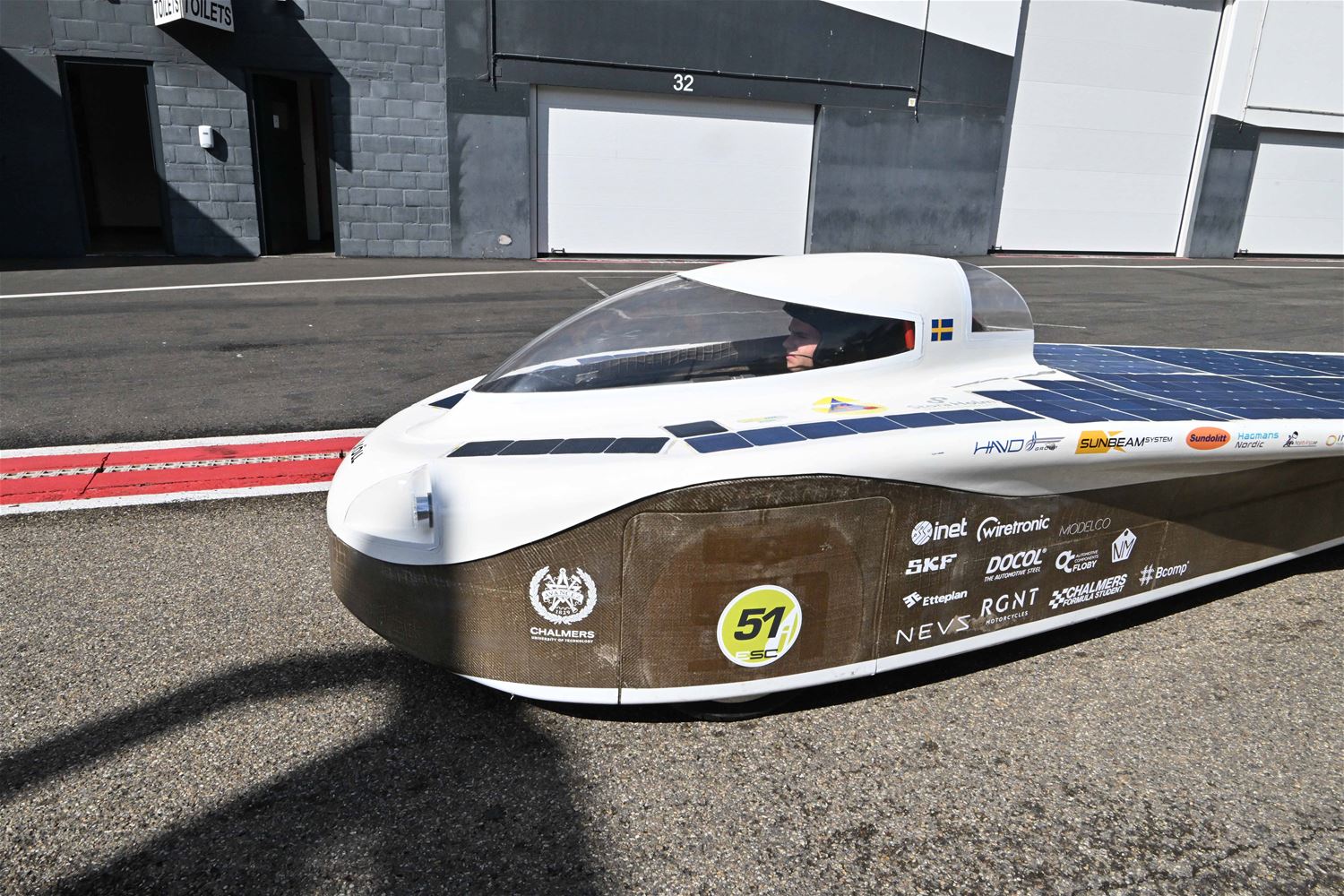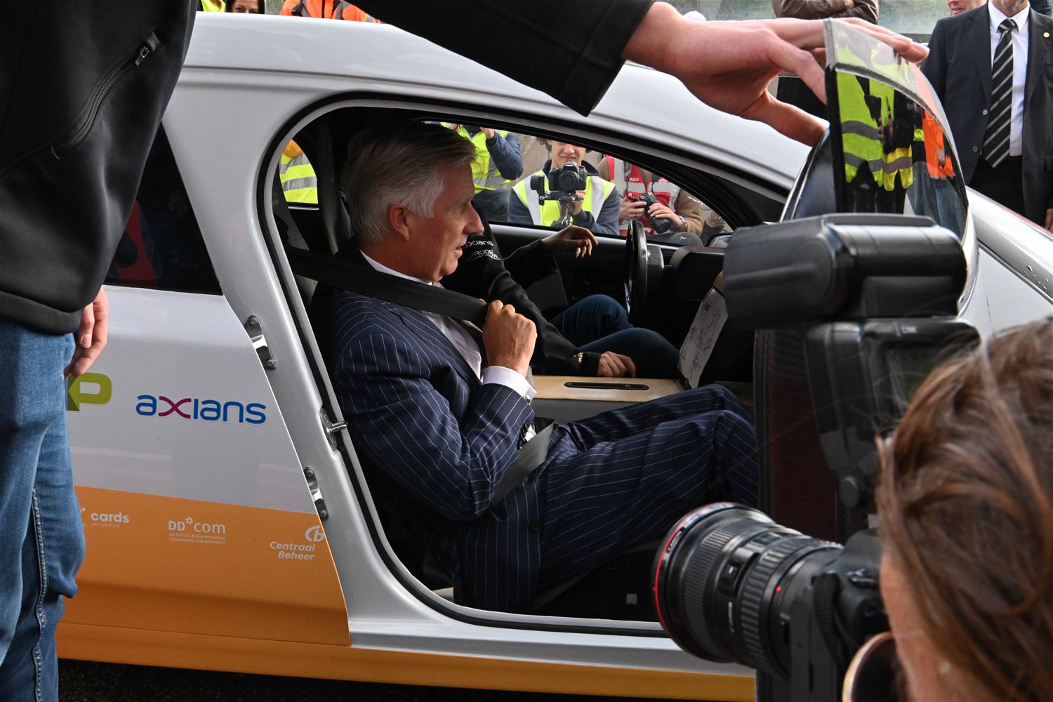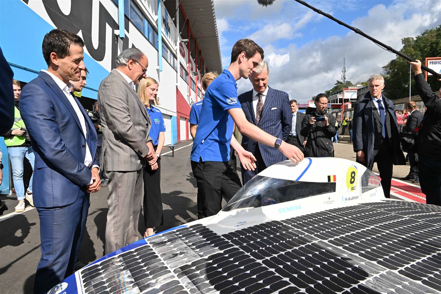 Koning Filip maakt ritje in een zonnewagen