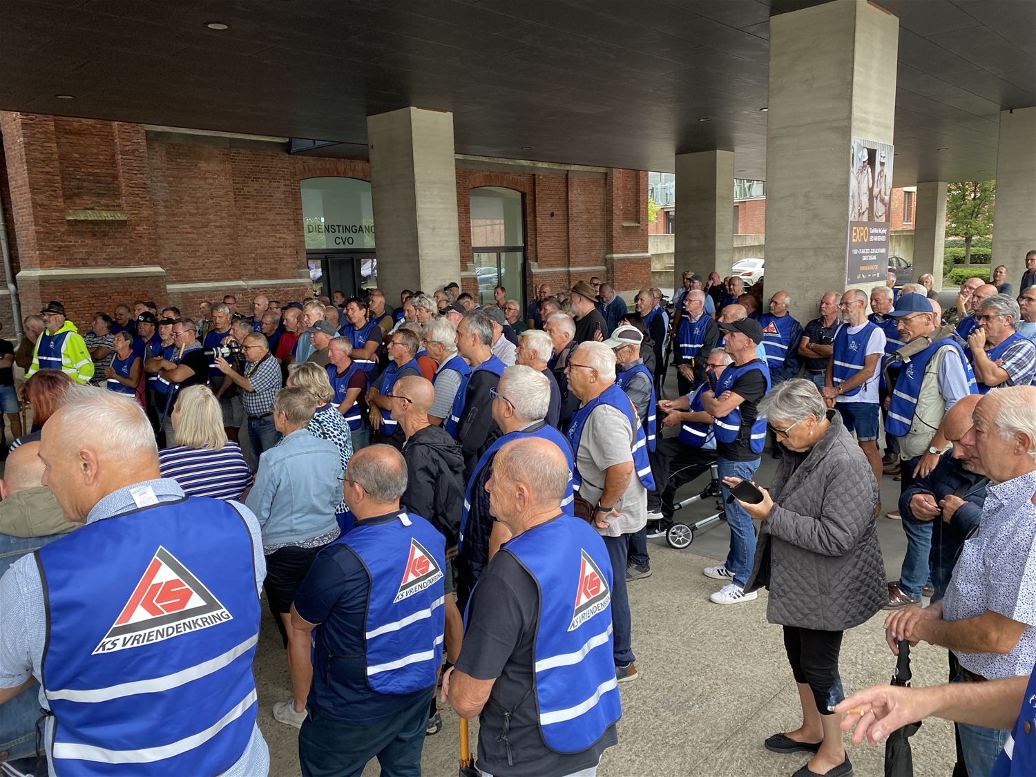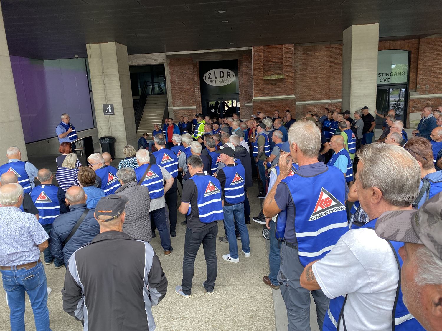 De geplande betoging van ondergrondse mijnwerkers volgende maandag in Brussel wordt uitgesteld naar een latere datum en vervangen door een infovergadering. Dat is zojuist meegedeeld op een 'persconferentie' bij ZLDR Luchtfabriek die ook door meer dan 200 ex-mijnwerkers werd bijgewoond. Volgens waarnemend voorzitter Eddy Melis van de KS-Vriendenkring gaan ze pas naar Brussel als hun voorzitter Michel Dylst kan meegaan. Daarnaast zijn er heel wat praktische problemen, het gerecht heeft immers voor het onderzoek de hele administratie in beslag genomen en de bankrekening geblokkeerd. In de plaats van de actie van maandag wordt om 11 uur een infovergadering georganiseerd op het mijnterrein van Zolder om een stand van zaken te geven. Overigens, zijn Michel Dylst en zijn vrouw vandaag voor de raadkamer verschenen. Die heeft hun aanhouding met een maand verlengd. 75210