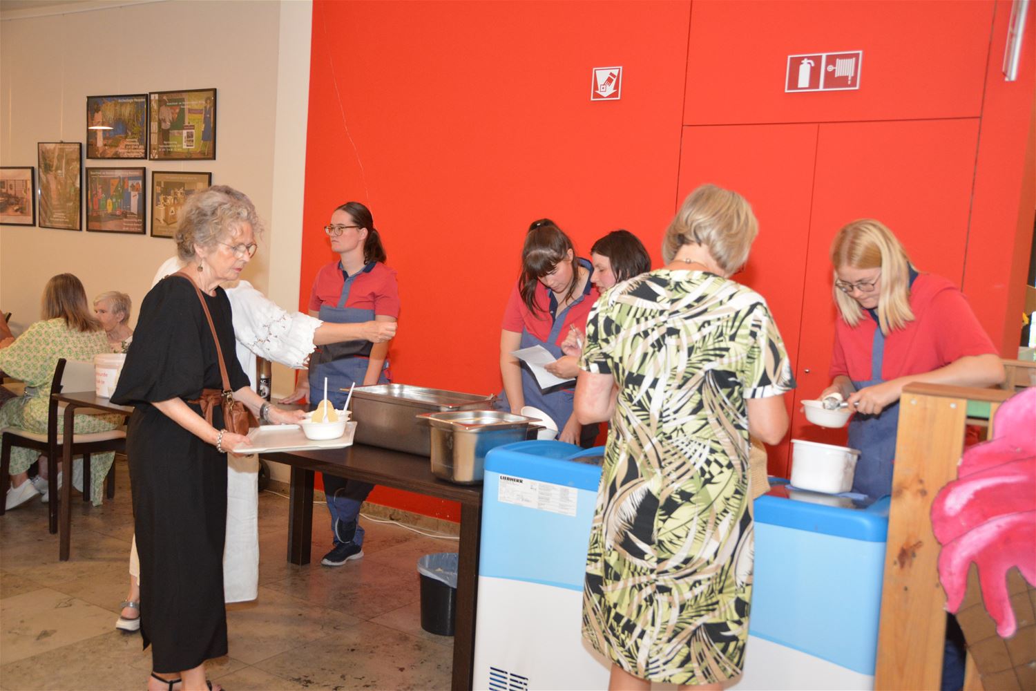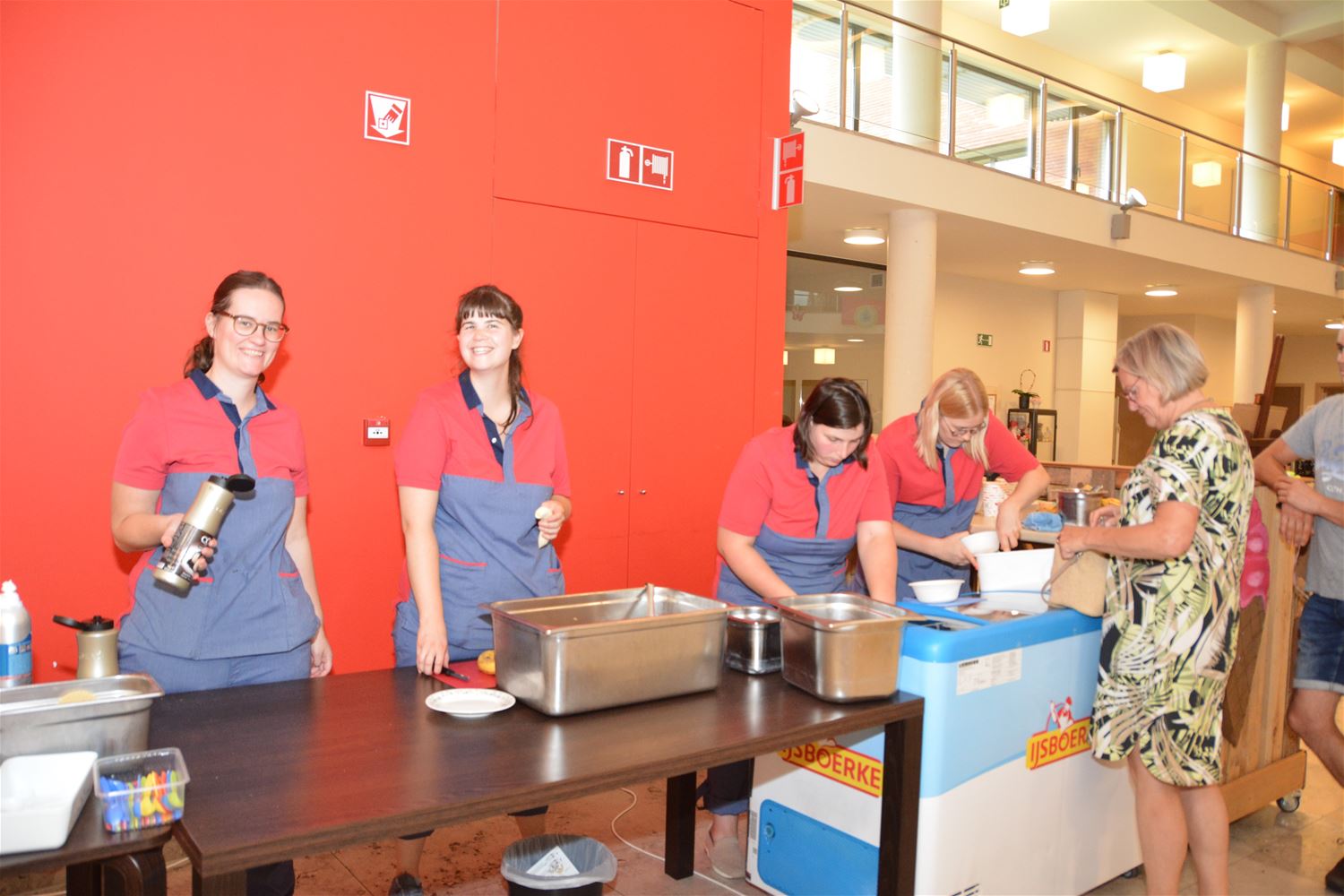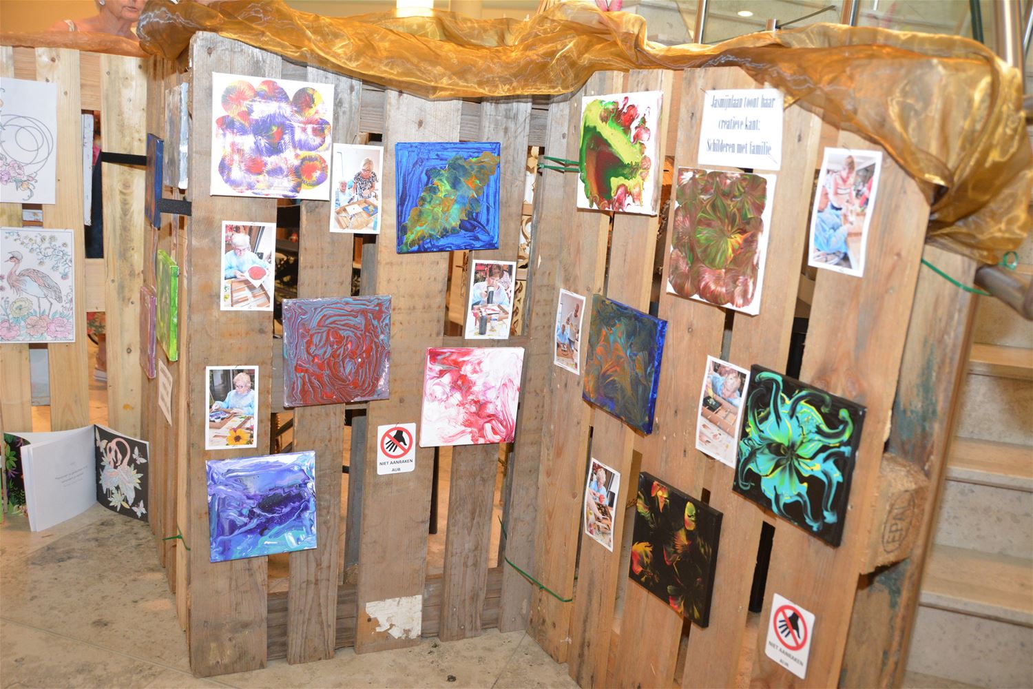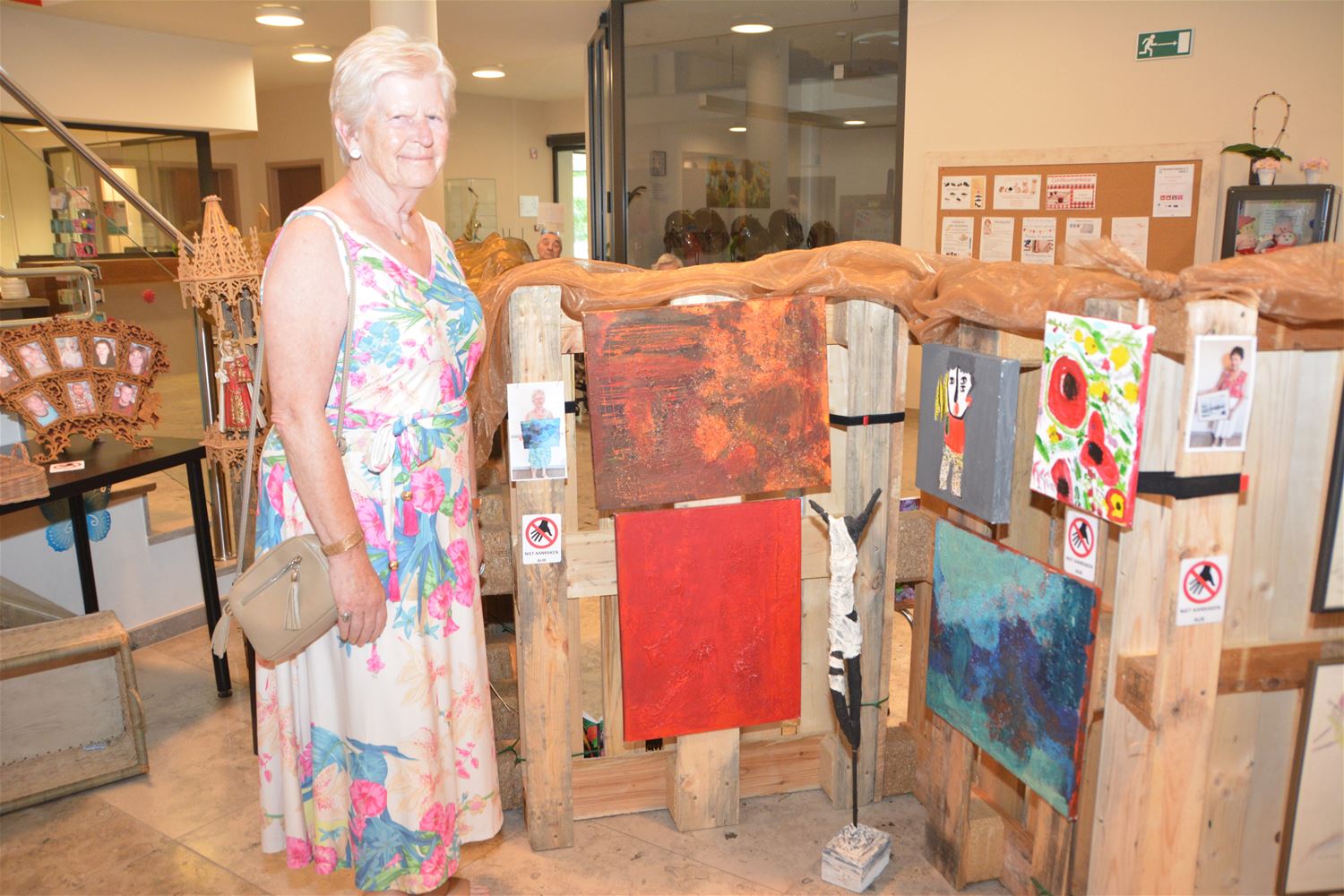 Hof ter Bloemen telt heel wat creatieve bewoners. Dat werd vandaag duidelijk tijdens de tentoonstelling van hun werkjes. Er is een knutselwerkgroep maar dat is allesbehalve een vrijblijvende bezigheidstherapie. De deelnemers maken kleurrijke schilderijtjes, wenskaarten versierd met parels, poppetjes en knuffels, ... mooi om te zien. Ze exposeerden het vandaag allemaal met de nodige trots. En er waren ook heel wat kunstkijkers want de tenoonstelling ging gepaard met een ijsfestijn. (foto's Marina Poelmans)78358