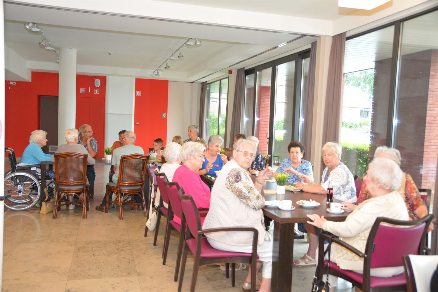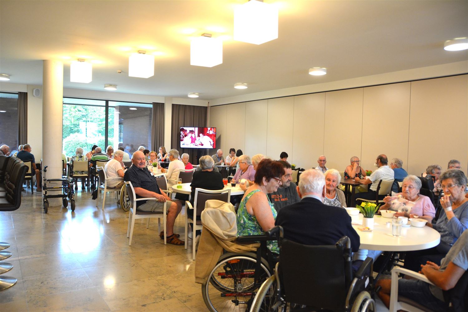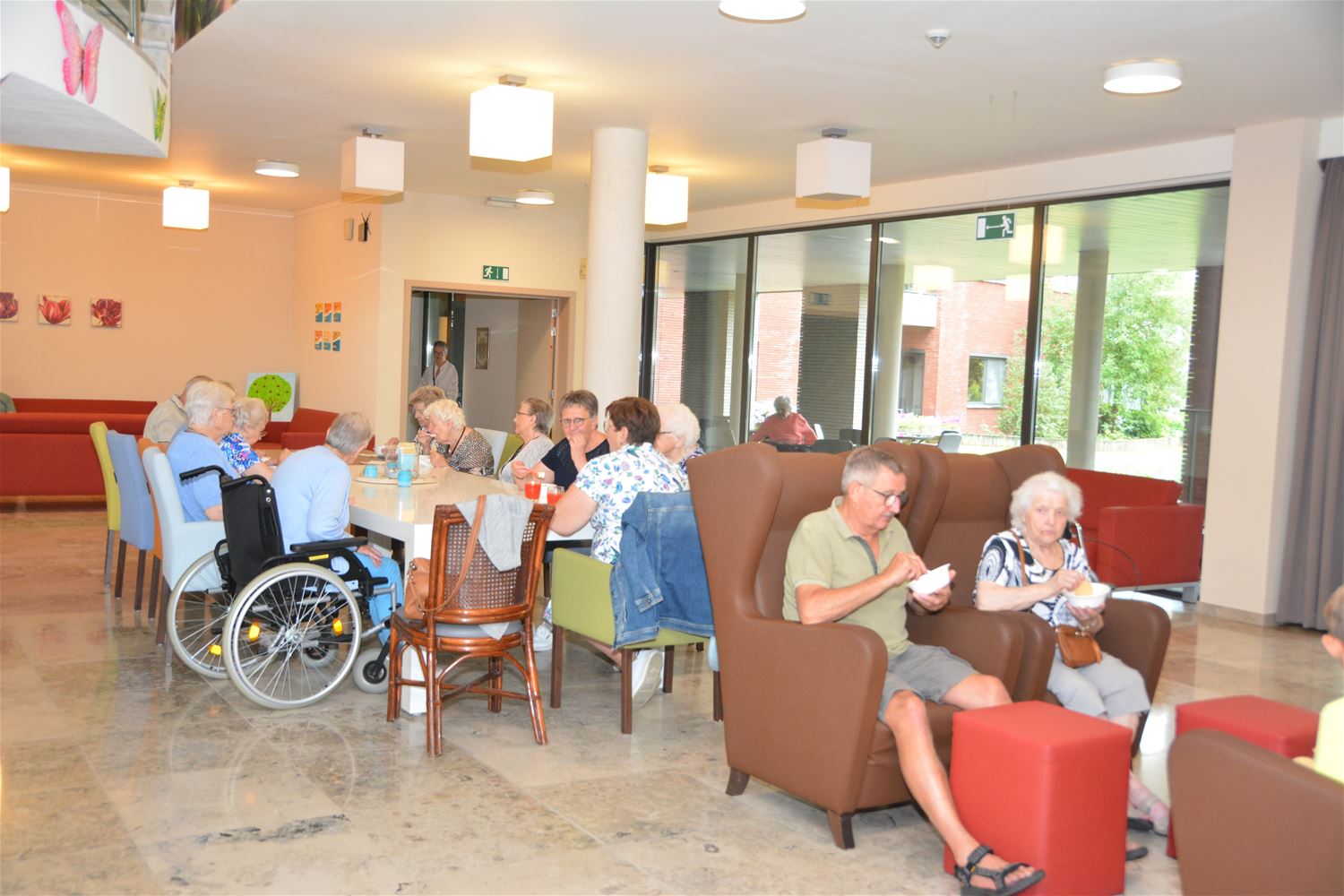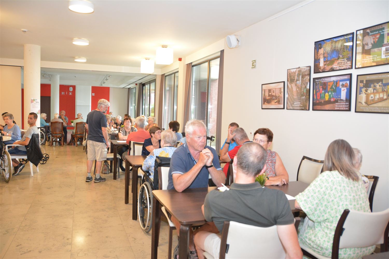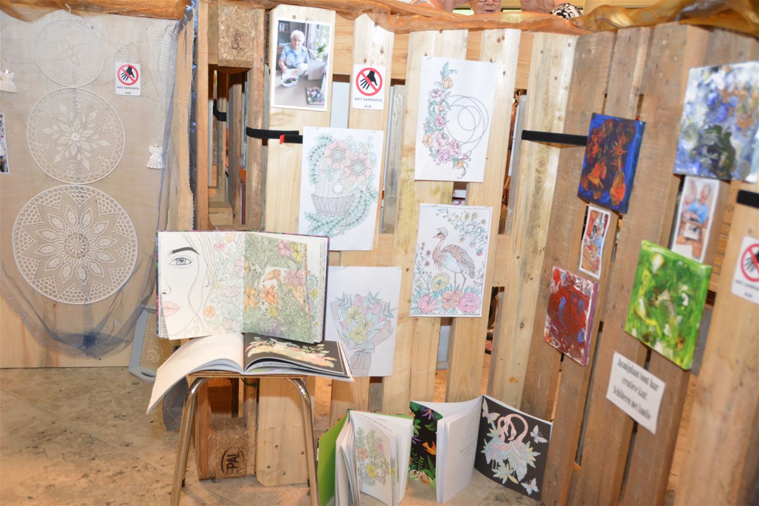 Hof ter Bloemen telt heel wat creatieve bewoners. Dat werd vandaag duidelijk tijdens de tentoonstelling van hun werkjes. Er is een knutselwerkgroep maar dat is allesbehalve een vrijblijvende bezigheidstherapie. De deelnemers maken kleurrijke schilderijtjes, wenskaarten versierd met parels, poppetjes en knuffels, ... mooi om te zien. Ze exposeerden het vandaag allemaal met de nodige trots. En er waren ook heel wat kunstkijkers want de tenoonstelling ging gepaard met een ijsfestijn. (foto's Marina Poelmans)78358