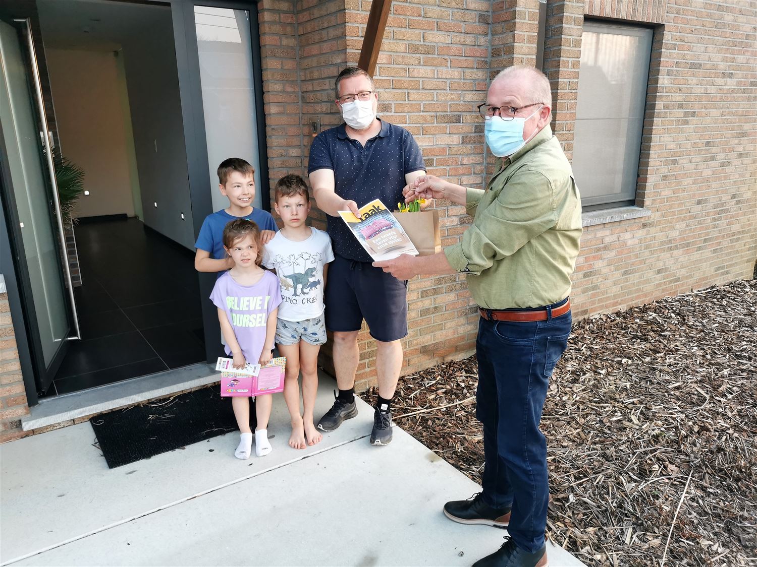 Het blijft aanpassen voor de verenigingen in deze tijd. Zo kon KWB-Eversel voor het tweede jaar op rij zijn traditionele paasontbijt niet organiseren. Daarom kregen alle leden een paaspakket met paasbloemen en - eitjes aan huis geleverd. Daarvoor trokken de wijkmeesters op pad. (foto's Rudi Rykers)