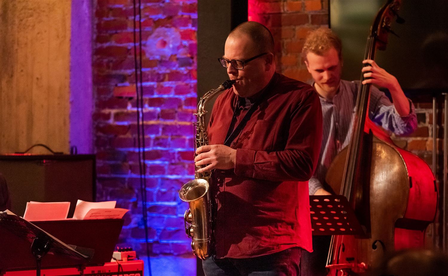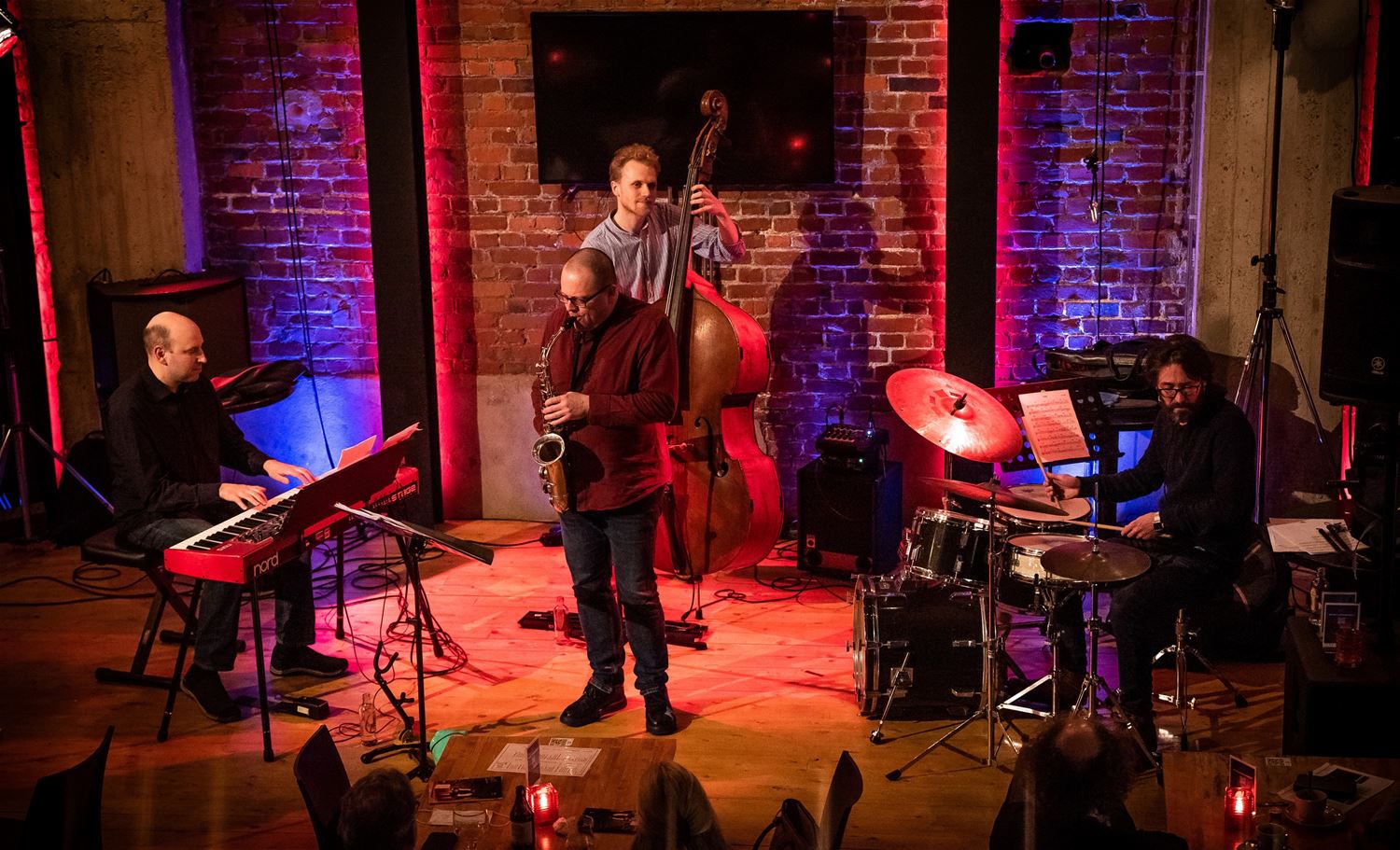 Opnieuw een stevige jazzavond vanavond in het MuzeCafé. Daar mocht Lieven Cambré - saxofonist van eigen bodem - enkele muzikanten uitnodigen. Samen met pianist Bram Weijters, contrabassist Jasper De Roeck en drummer Lionel Beuvens maakte hij er een boeiende avond van met eigen composities, enkele jazzstandaards en wat improvisatie. (foto's Ann Jordens)72379