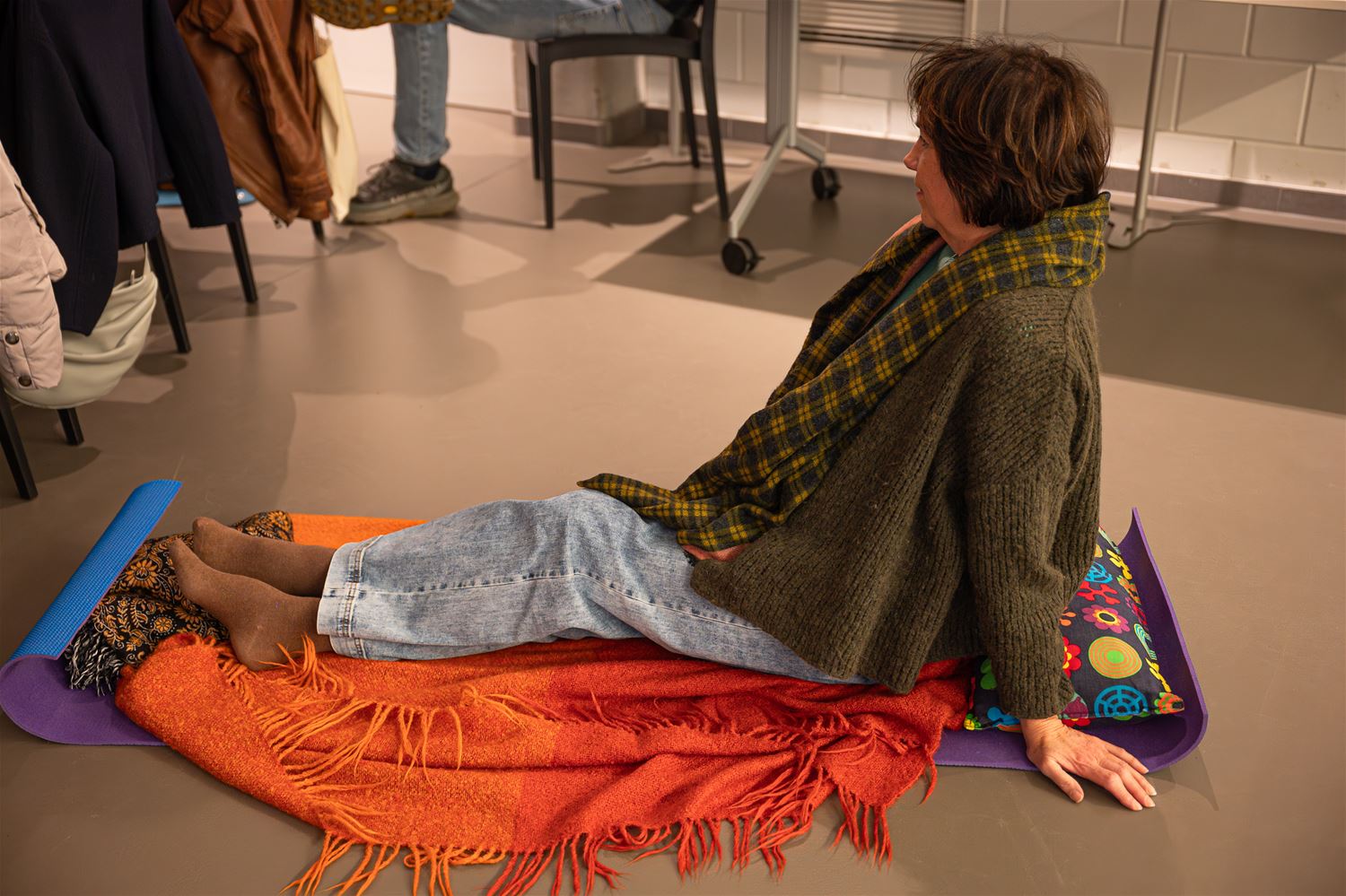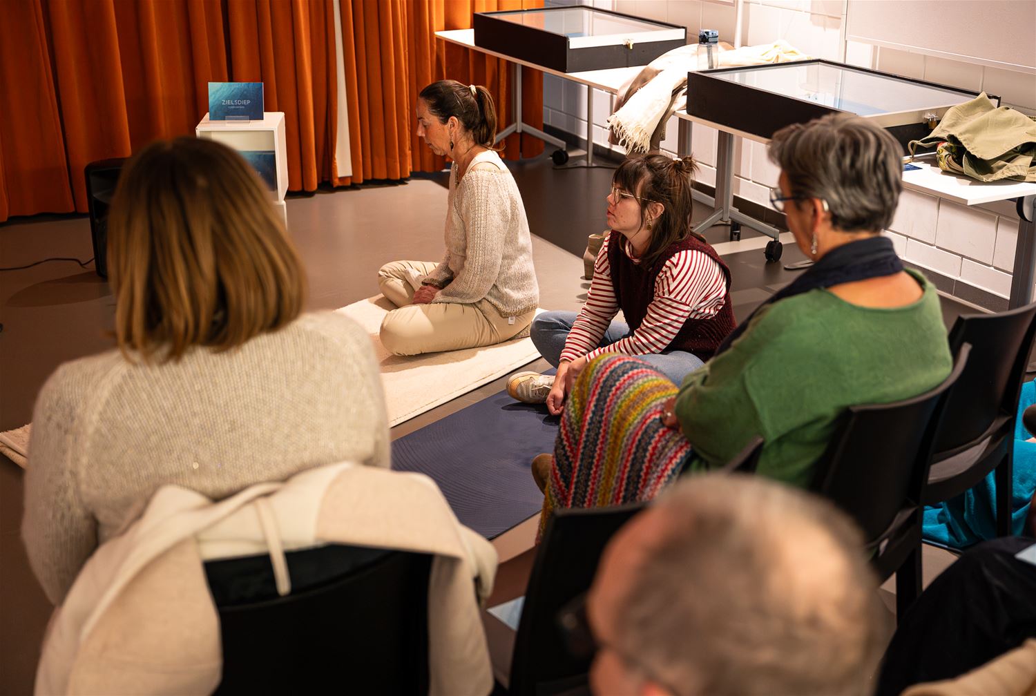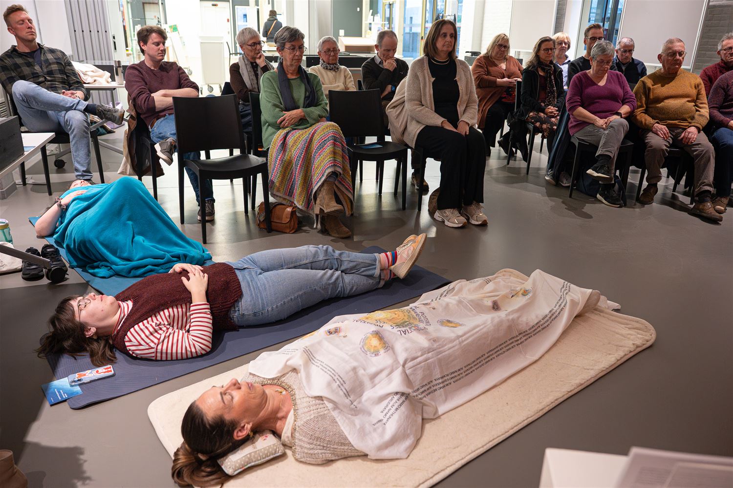 Liggend en zittend luisteren naar muziek en poëzie