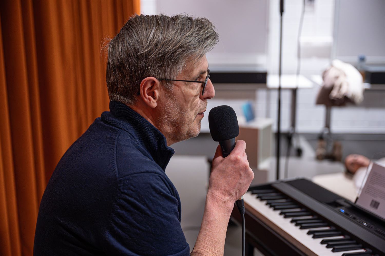 Een bijzondere voorstelling vanavond in de bibliotheek. Daar lagen zowaar mensen op de grond terwijl er live piano werd gespeeld. Het ging om de voorstelling ‘Feel Free & Zielsdiep’ met pianist, schrijver en inspirator Koen Snyers. Hij speelde zachte pianomuziek, afgewisseld met teksten die hij voordroeg uit zijn nieuwe poëziebundel ‘Zielsdiep’. Een deel van het publiek verkoos om de voorstelling liggend op een yogamatje mee te maken, de anderen zaten gewoon op een stoel. Er hing dus een zen-sfeer die de aanwezigen wellicht mee huiswaarts hebben genomen. (foto’s Roman Martyka)88153