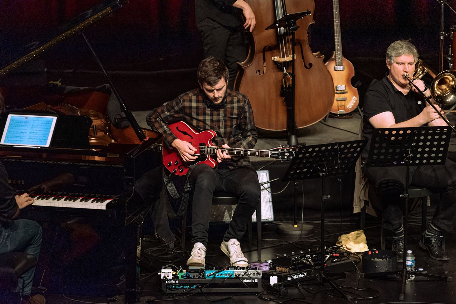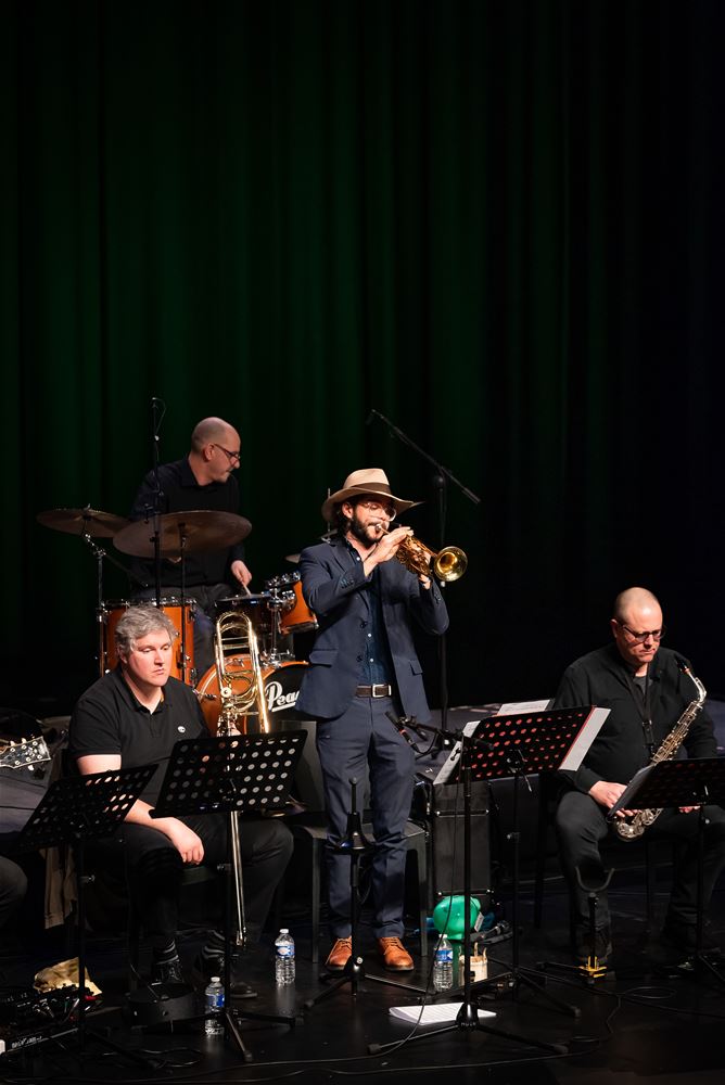 Ja, er bestaat zoiets als 'Limburgse jazz'. Dat bleek gisteravond ten overvloede in CC Muze, waar eerst in de zwarte zaal en nadien in het MuzeCafé jazzmuzikanten - van het MJO en daarbuiten - verzamelen bliezen om te putten uit The Real Book dat Marco Cirone had samengesteld met daarin 60 composities met een Limburgse link. Het publiek kreeg daardoor een breed staalkaartje uit verschillende jazzgenres geserveerd. Wie weet waartoe dit nog allemaal leidt? (foto's Ann Jordens)76355