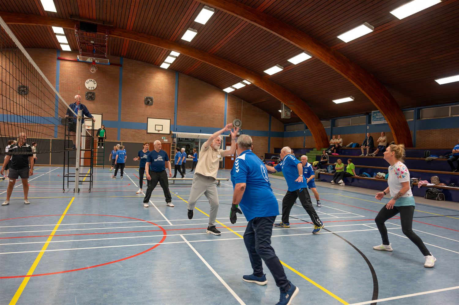 In sporthal Olympia werd vandaag het provinciaal netbaltornooi voor senioren gespeeld. Netbal is een vrij populaire sport bij mensen die niet meer tot de jongsten behoren en die toch aan hun conditie willen blijven werken. ’t Is ook een teamsport waarbij ook heel wat plezier gemaakt wordt. Dat betekent niet dat er vandaag niet gespeeld werd om te winnen, integendeel. Het startte vanmorgen met een collectieve opwarming. Nadien zorgden scheidsrechters dat alles in goede banen verliep tijdens de wedstrijden tussen herenploegen, damesteams en gemengde ploegen. In het totaal waren er 78 deelnemers uit Overpelt, Neerpelt, Diepenbeek, As, Neeroeteren, Hamont-Achel, Tongeren-Borgloon, Guigoven, Kortessem, Leopoldsburg en ook 10 uit Heusden-Zolder. De oudste deelnemer telt liefst 86 lentes. Team Sport van de gemeente zorgde mee voor de organisatie. (foto's Roman Martyka)86980