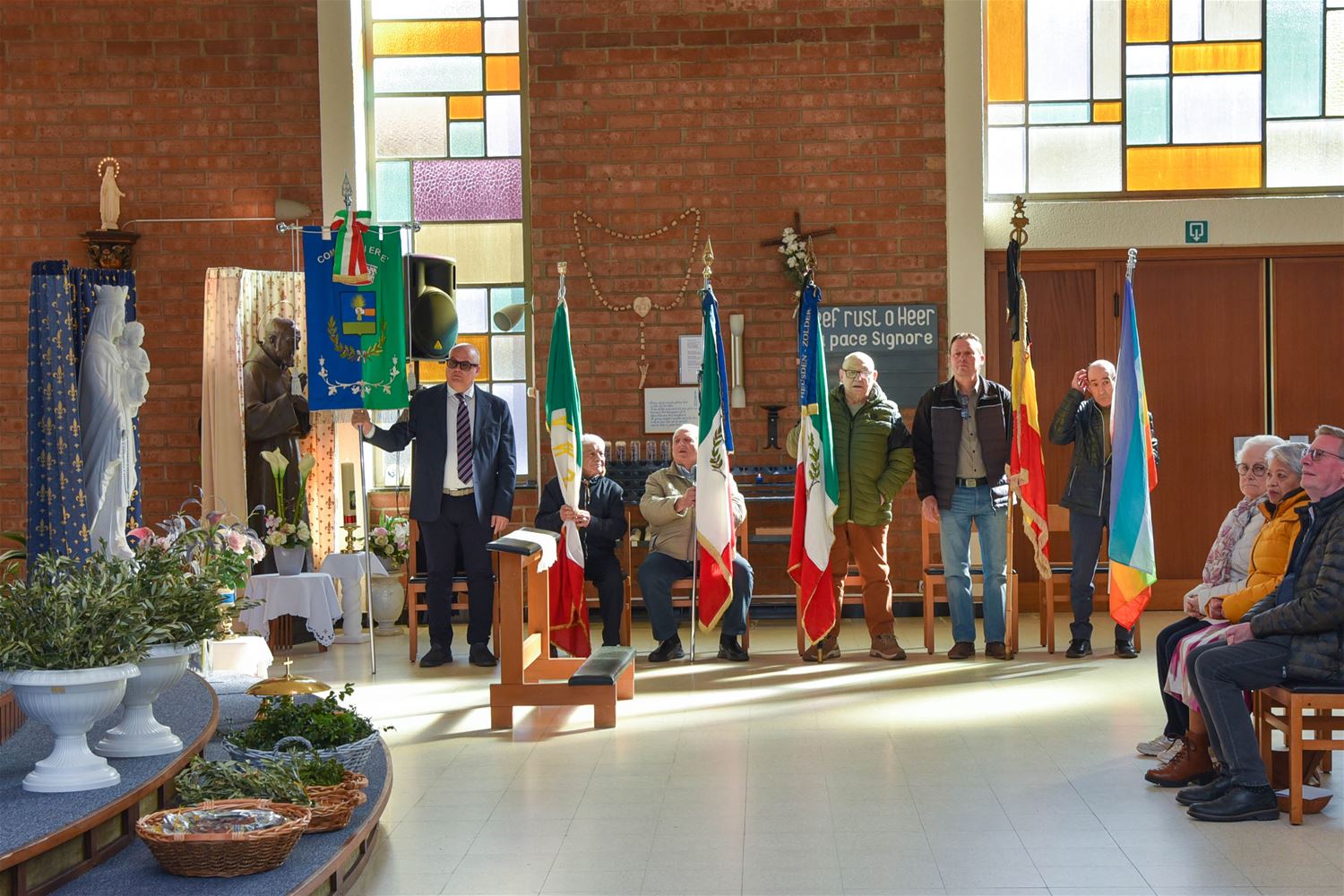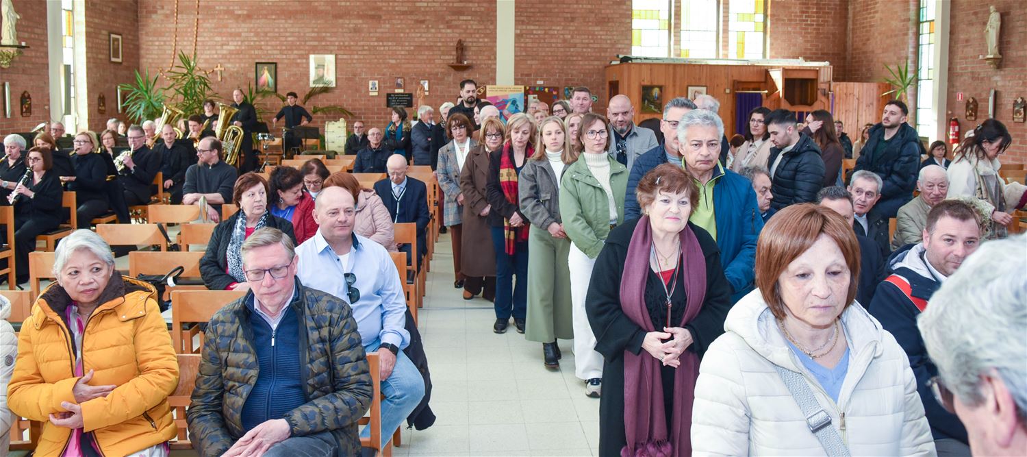 Palmzondag is zoals steeds een speciale dag in de wijk Lindeman. De Italiaanse vereniging ANCRI houdt dan een viering om de slachtoffers van oorlogen en arbeidsongevallen te herdenken, maar tegelijk staat die ook in het teken van vrede en verbroedering. Daarom was ook vandaag weer een delegatie van zustergemeente Erbè aanwezig, onder leiding van burgemeester Enrico Natali . Na de eucharistieviering, opgeluisterd door De Ware Vrienden, werden palmtakken uitgedeeld. Daarop trok het gezelschap in stoet naar het Volkerenplein. Er waren toespraken van burgemeester Mario Borremans, zijn collega Enrico Natali en Luciano Ferro van Ancri. De vredesboodschap klonk nu luider dan anders door. De harmonie speelde de nationale en Europese hymnes. Voor de aanwezigen volgde nog een feestprogramma. (foto’s David Amgad)88135