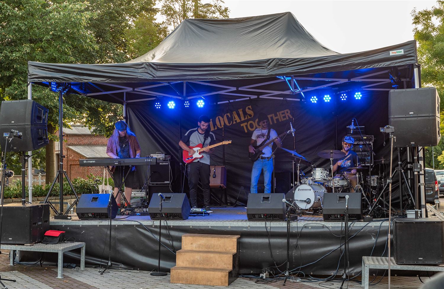 Een zomerse festivalsfeer zaterdagavond op het dorpsplein in Zolder waar voor 't Kuipke lokaal muzikaal talent op het podium verscheen voor de tweede editie van de Locals Together. Prille bands en muzikanten met heel wat decennia op hun teller wisselden elkaar af. Een vleuge funk tussen het hardere rockwerk door. Maar het vaste publiek van Locals-gebonden activiteiten weet dat het vooral stevige gitaarmuziek mag verwachten en het werd dan ook tijdens deze editie op zijn wenken bediend. (foto's Ann Jordens)78275