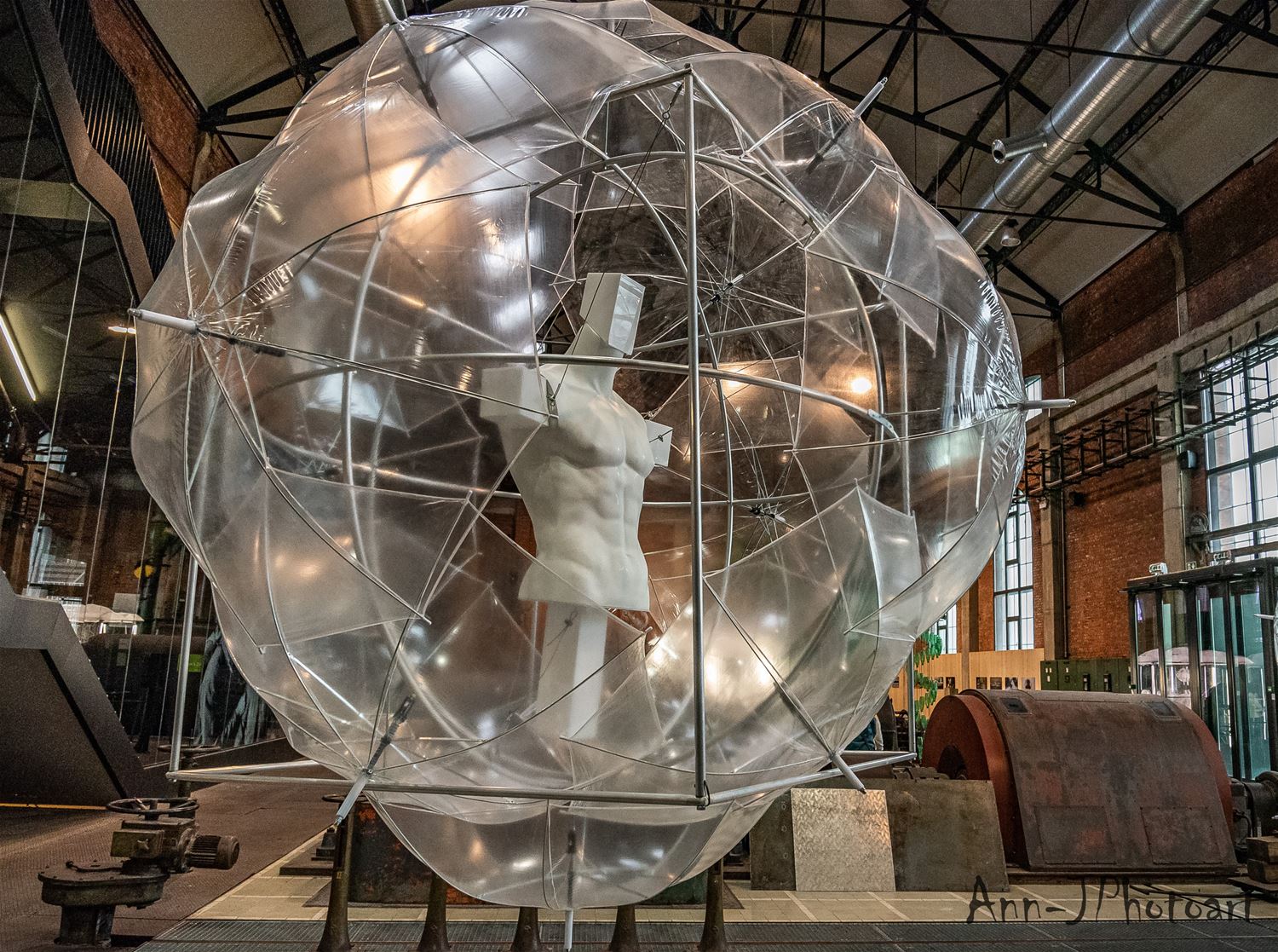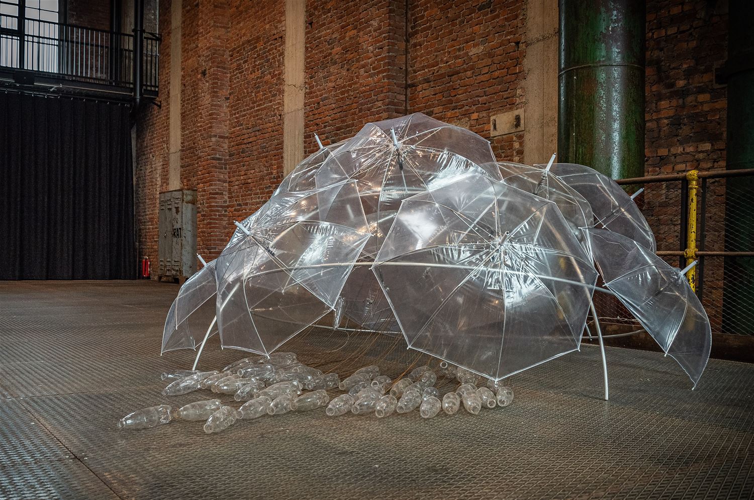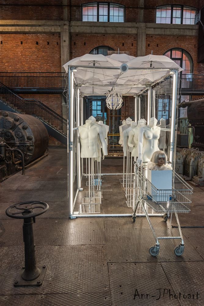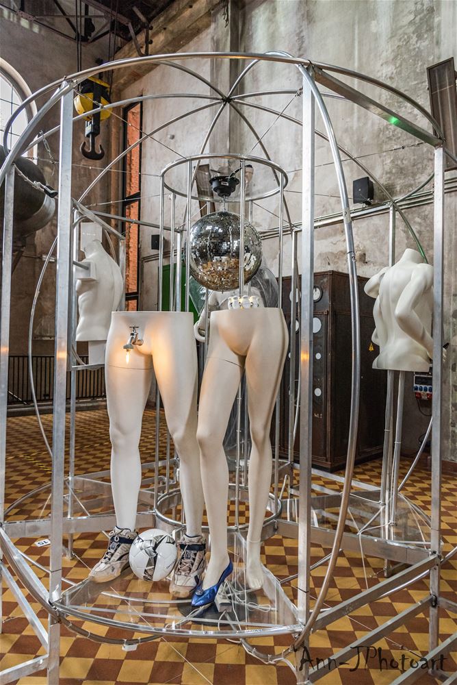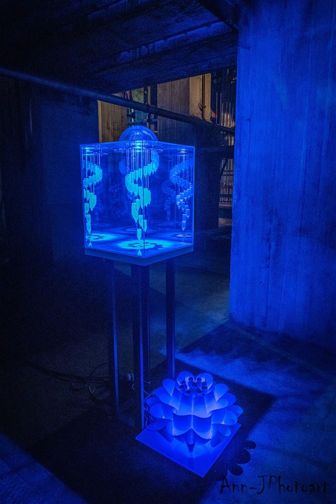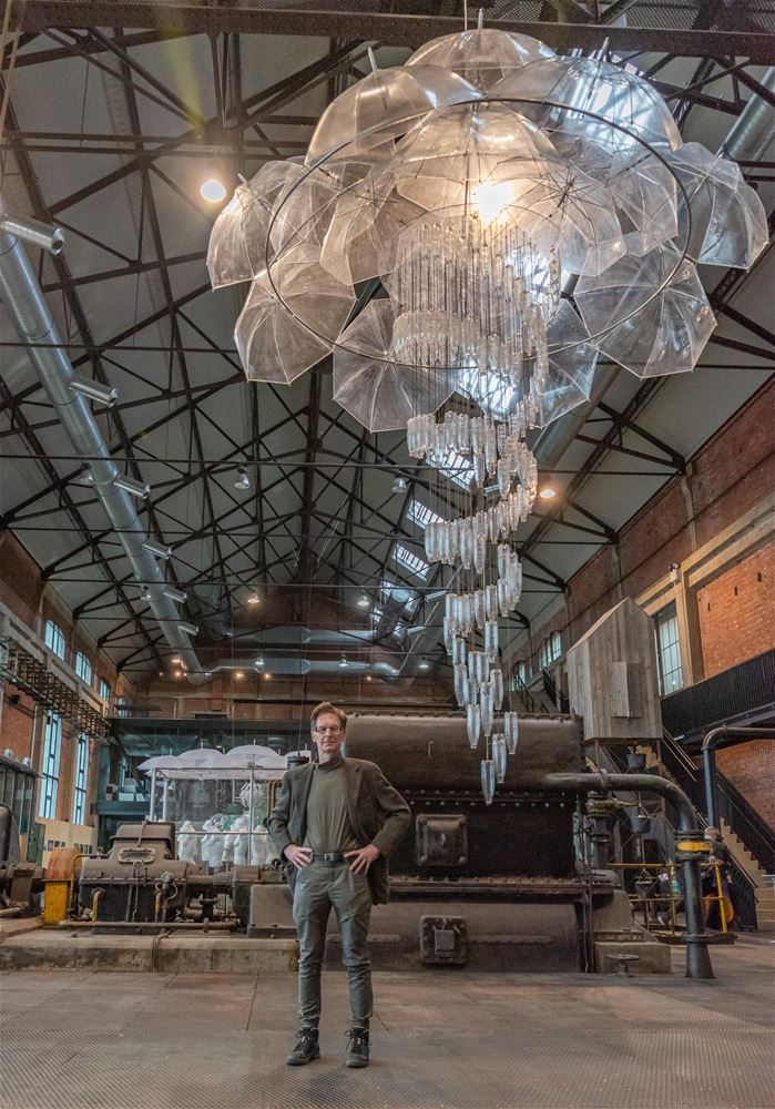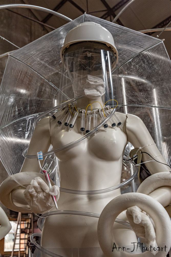 in ZLDR luchtfabriek is vandaag de tentoonstelling 'Social Distance / Rethinking Society’ van Mark Swysen geopend. En het is een verrassend spektakelstuk geworden, een aanrader, ook voor wie zich niet makkelijk tot een bezoek aan een kunstexpo laat verleiden. Mark Swysen is geen traditionele kunstenaar, met een knipoog naar de wetenschap heeft hij alledaagse voorwerpen als bijvoorbeeld paraplu's en pet-flessen uit hun gewone context gehaald en verwerkt in verrassende constructies waar ze als het ware een nieuwe werkelijkheid uitmaken. En om de ervaring nog completer te maken, ondersteunt hij het visuele met licht, geluid en beweging. Nog te beleven tot en met 6 juni. De toegang is gratis, maar je moet per bubbel wel tickets reserveren. (foto's Ann Jordens)69154