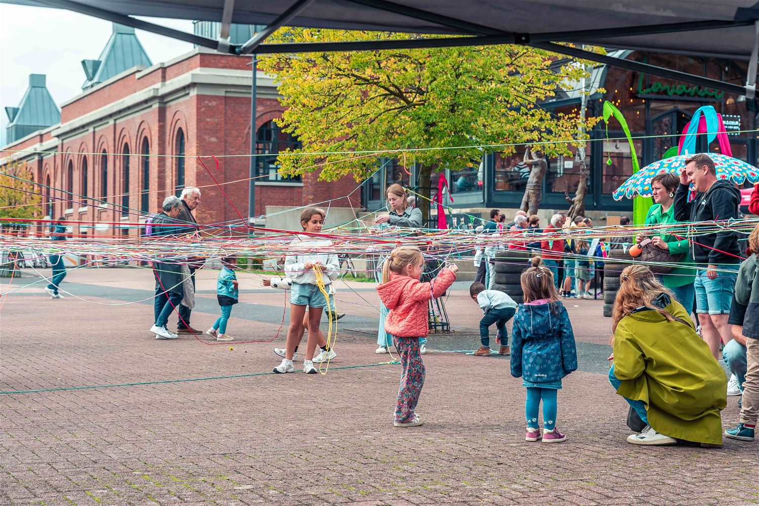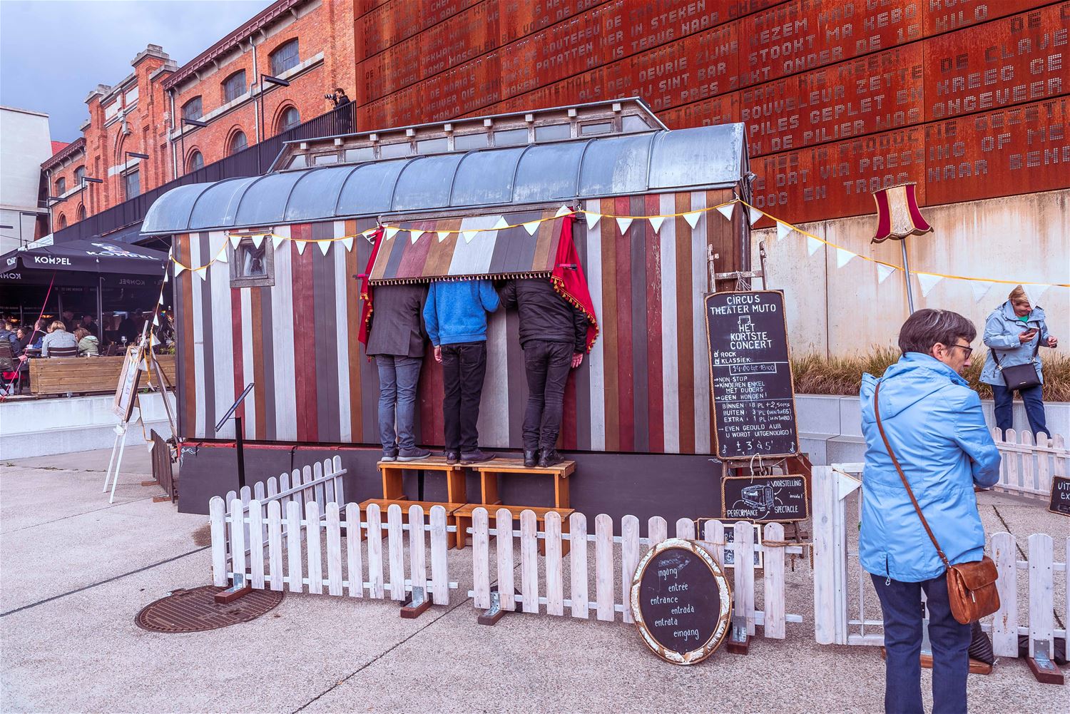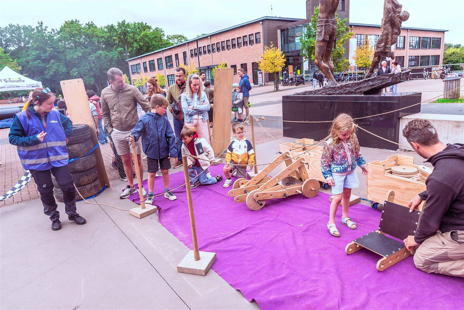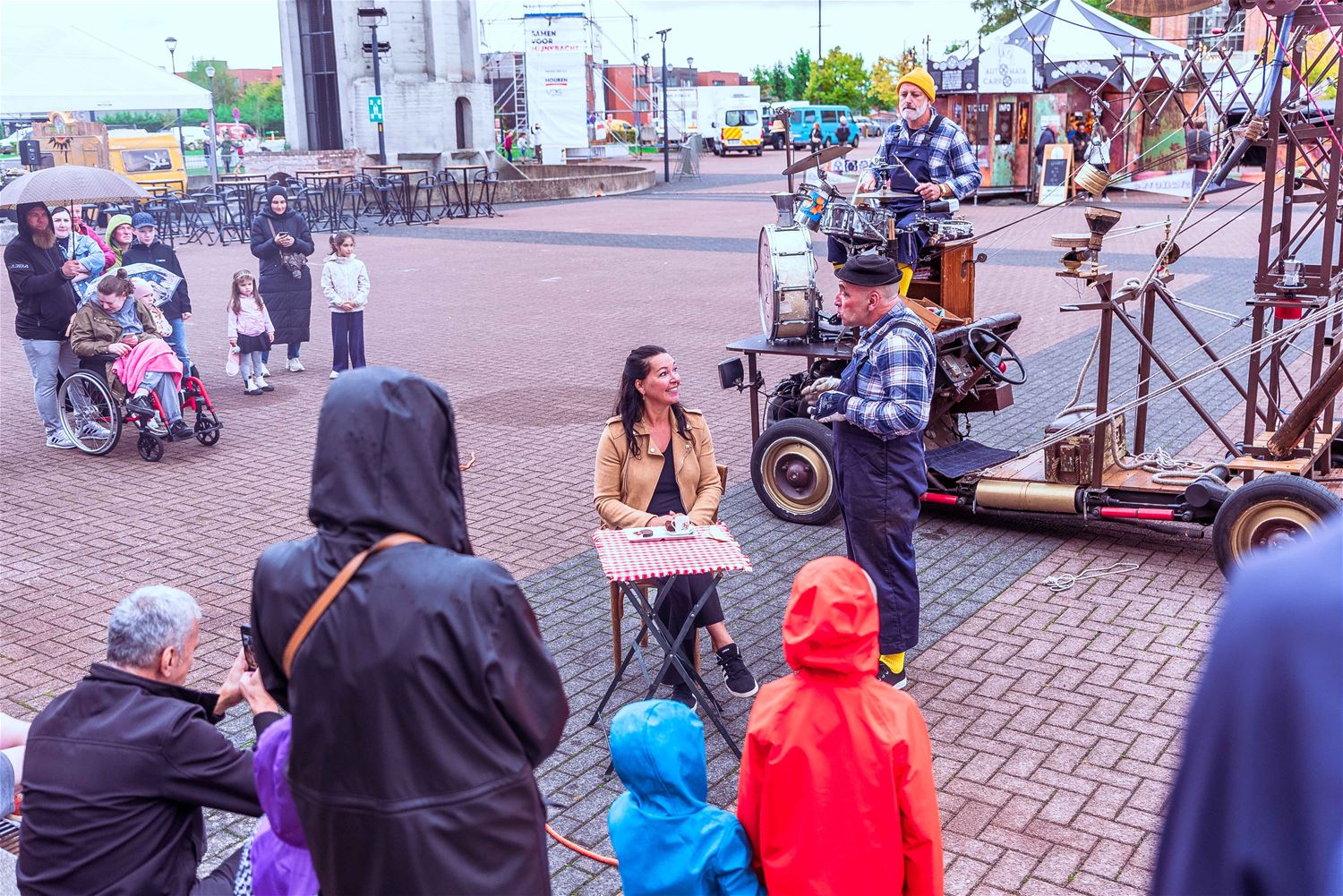 Terwijl de binnenvoorstellingen allemaal zowat uitverkocht waren, gebeurde er tijdens MIJN|KRACHT buiten op het plein ook enorm veel. Sportieve uitdagingen van het circuit, artistieke opdrachten van de academie, het jongerenwerk dat zich van zijn creatiefste kans toonde, miniatuurtheater, dans, muzikale optredens, het reuzenrad, Jef Cox die 60 meter boven de grond over een koord wandelde, maar gelukkig toch was vastgemaakt, visuele en auditieve acts, eten, drinken, … er gebeurde altijd wel iets voor jong en oud. Alleen jammer dat de regen even de pret kwam verstoren, wellicht was er bij beter weer nog meer volk geweest. (foto’s Ann Jordens)86404