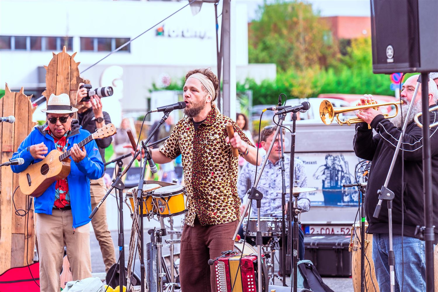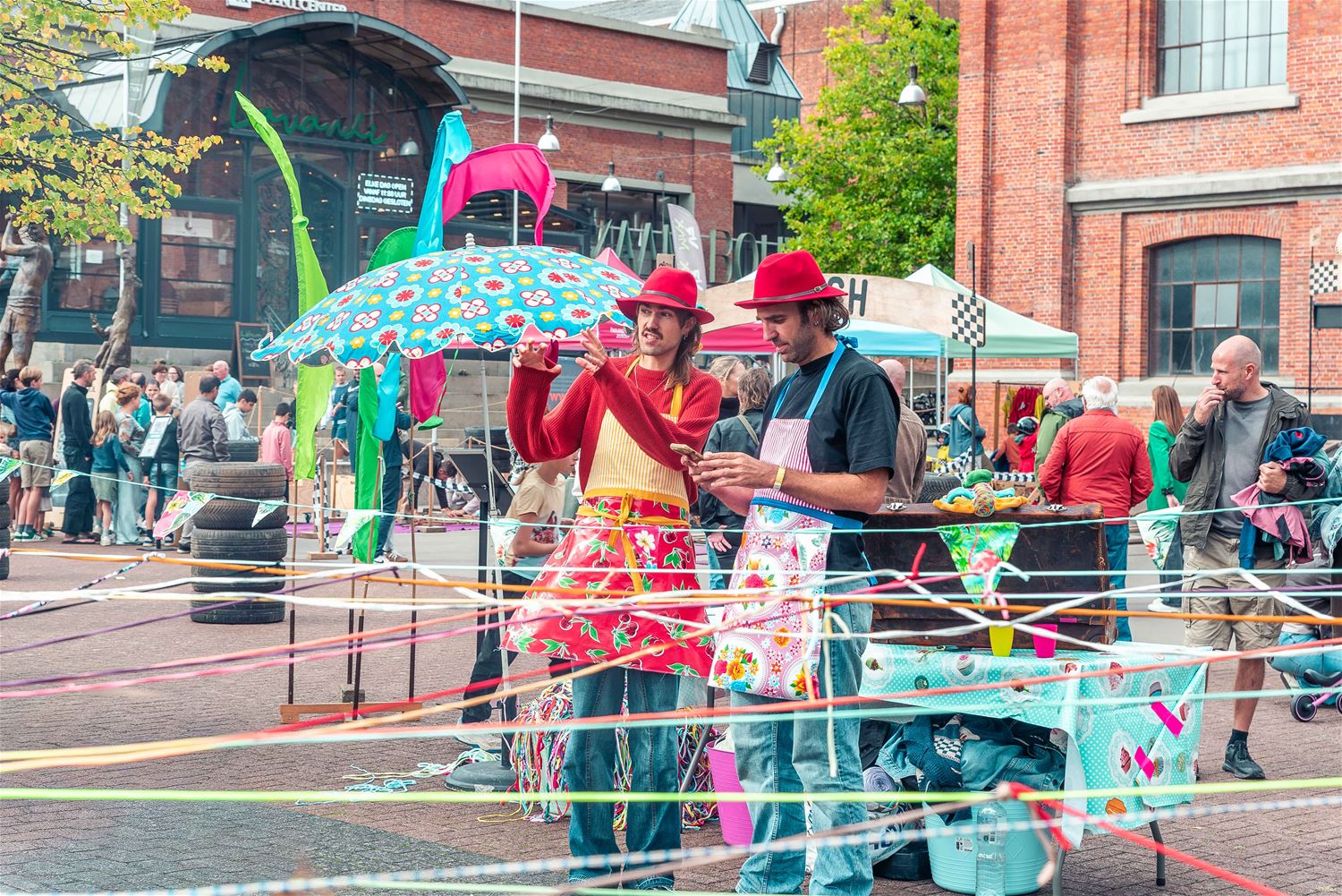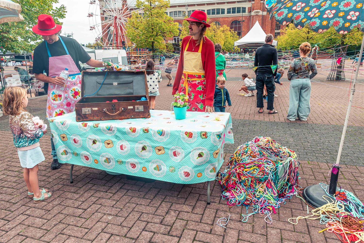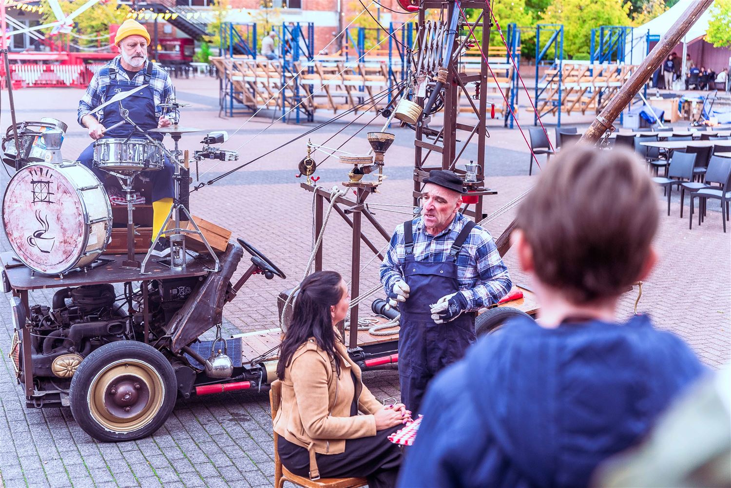 Terwijl de binnenvoorstellingen allemaal zowat uitverkocht waren, gebeurde er tijdens MIJN|KRACHT buiten op het plein ook enorm veel. Sportieve uitdagingen van het circuit, artistieke opdrachten van de academie, het jongerenwerk dat zich van zijn creatiefste kans toonde, miniatuurtheater, dans, muzikale optredens, het reuzenrad, Jef Cox die 60 meter boven de grond over een koord wandelde, maar gelukkig toch was vastgemaakt, visuele en auditieve acts, eten, drinken, … er gebeurde altijd wel iets voor jong en oud. Alleen jammer dat de regen even de pret kwam verstoren, wellicht was er bij beter weer nog meer volk geweest. (foto’s Ann Jordens)86404