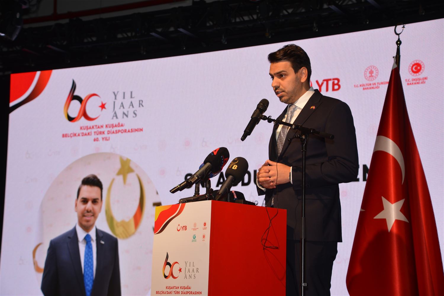 In The Max hebben deze namiddag zowat 900 mensen de viering van 60 jaar Turkse diaspora bijgewoond. Dat werd georganiseerd door de YTB, het Voorzitterschap van Turken in het Buitenland en aanverwante Gemeenschap. Er waren heel wat prominente Turkse sprekers zoals de minister van Familie en Sociaal Beleid Mahinur Özdemir Göktas die met haar entourage vanuit Ankara was overgekomen. Ze was in het gezelschap van het hoofd van het Consulaat in Europa. Ook de Turkse consul in België was present. Alle sprekers schetsten een beeld van de geschiedenis van de Turkse migratie, vooral die naar ons land dan. Ze hadden het ook over de actviteiten die de gemeenschap hier in de loop der jaren heeft ontplooid. Ze kregen een film te zien en er was een kleine historische fototentoonstelling opgebouwd. Tussen talrijke toespraken door waren er ook optredens. Daarbij oogstte vooral Ismail Erdogdu veel succes. Hij was één van de eerste Turken die in Heusden terechtkwamen en zong een zelfgemaakt lied over de charbonnage, met zelfs een oervlaamse vloek erin. Hij kreeg de aanwezigen mee aan het zingen en mocht achteraf op de bijzondere waardering van de Turkse minister rekenen. Het gezelschap werd verwelkomd door twee mijnwerkers en de prominenten legden samen met gastheer Tamer Cankurtaranoglu bloemen neer aan het standbeeld van de mijnwerker.81040