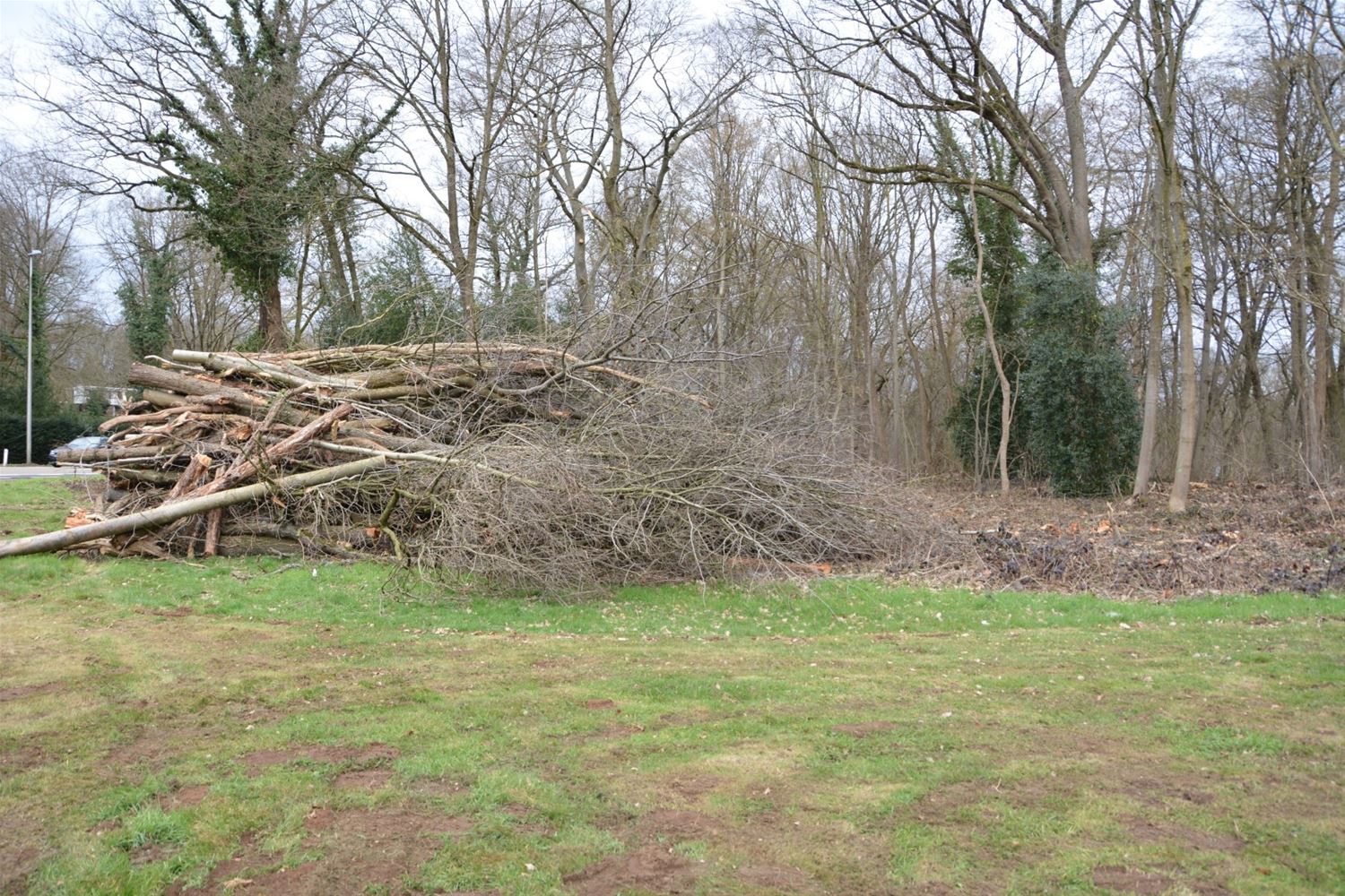 De takken en boomstammen hebben zich de voorbije dagen aardig opgestapeld op domein Meylandt. Na wat zoekwerk blijkt de opdracht gekomen te zijn van het Agentschap Natuur en Bos. Dat deel van domein Meylandt is immers eigendom van het Vlaamse gewest. Eerst was het de bedoeling om daar een uitdunning te doen in het bos, in het kader van natuurbeheer. Maar er bleken veiligheidsproblemen te zijn door onstabiele bomen. De afgelopen jaren zijn daar trouwens bij stormen al enkele bomen op de weg terecht gekomen. En zo zijn nu jammer genoeg ook dikke, oude bomen afgezaagd, maar alles was vooraf gepland door ANB.77023