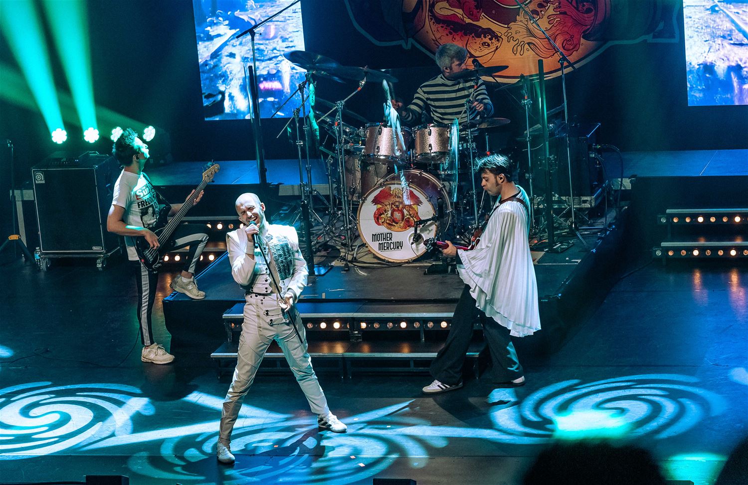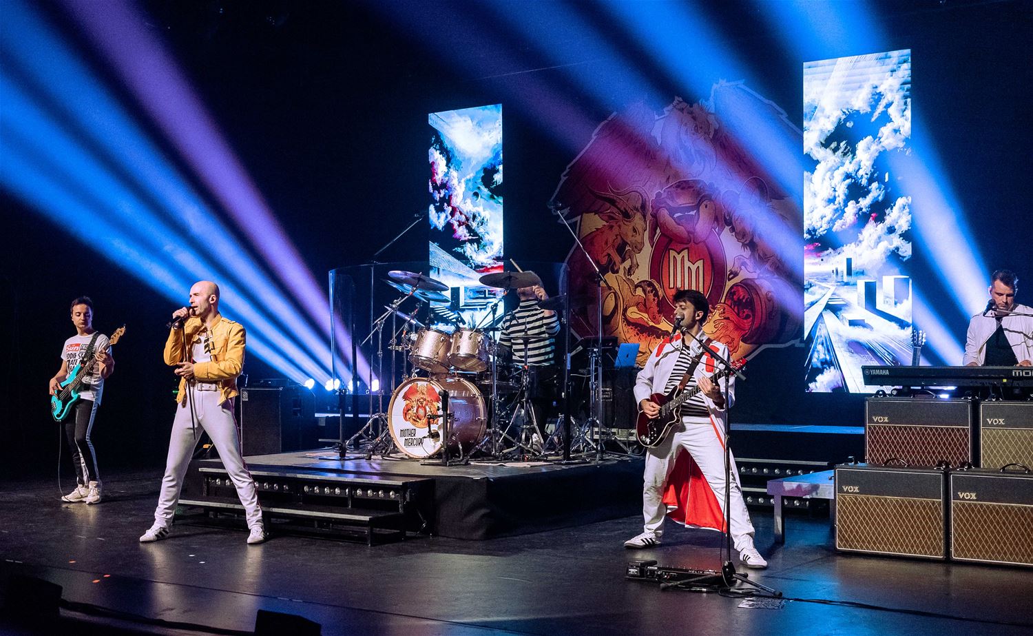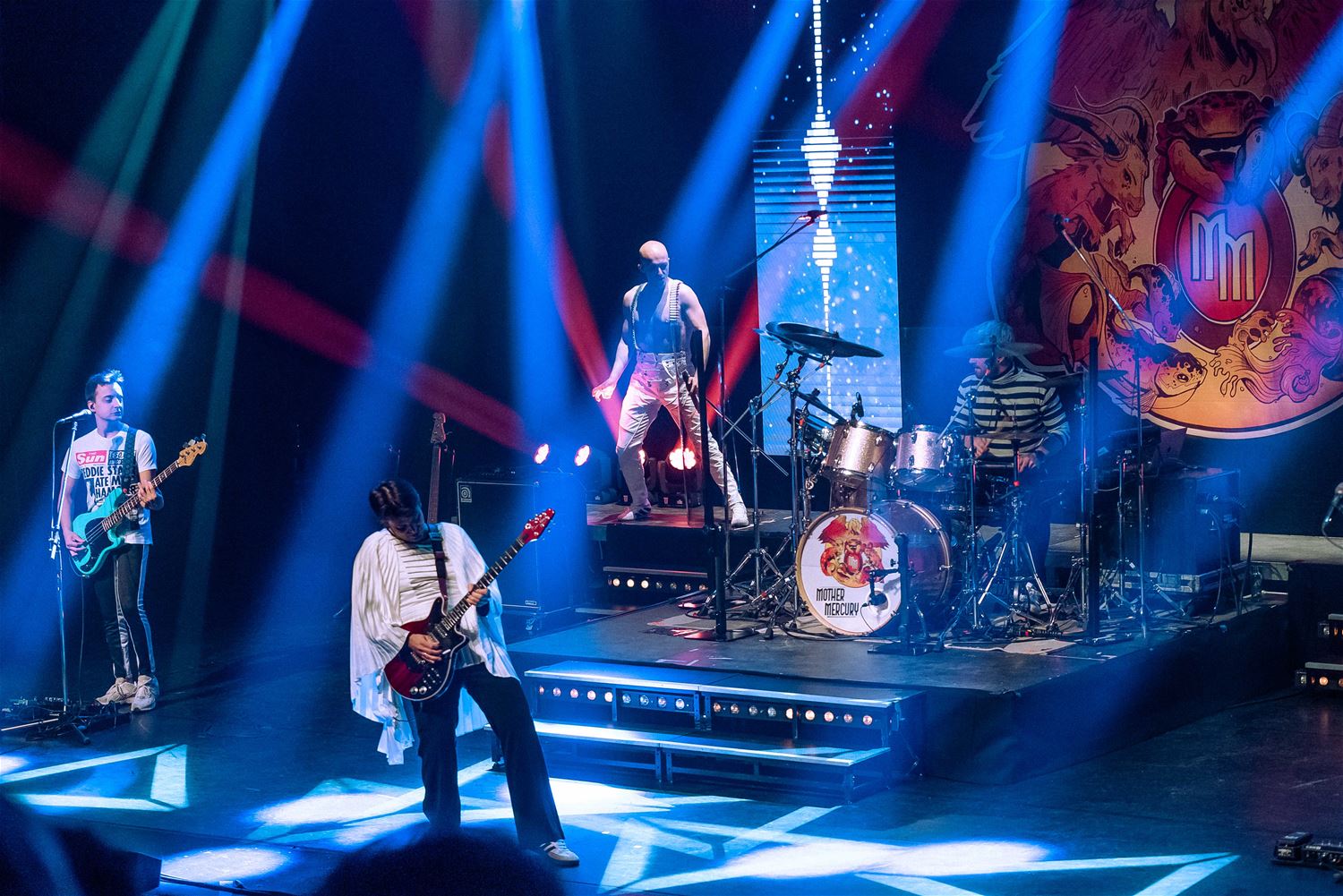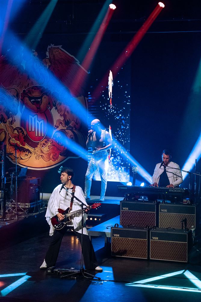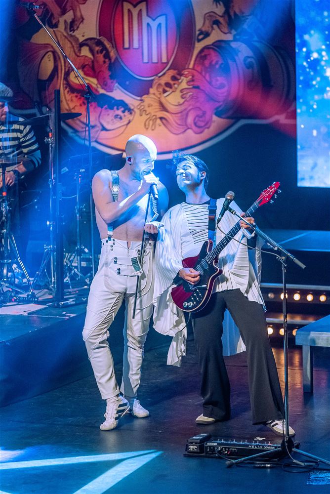 Er zijn er heel wat, de coverbands in Europa en daarbuiten die met een Queen-repertoire toeren. Zo stond vrijdagavond Mother Mercury op het podium van een volle Muzezaal. De band wordt geleid door Sonny Vande Putte die gelanceerd werd door zijn Freddy Mercury-vertolking in VTM’s Starstruck. Daarmee ging hij nadien verder aan de slag, niet alleen met een vocaal sterke performance, maar ook fysiek brengt hij Freddy Mercury weer tot leven. Als een volleerd showbeest. Het publiek ging mee in de ambiance. (foto’s Ann Jordens)85005