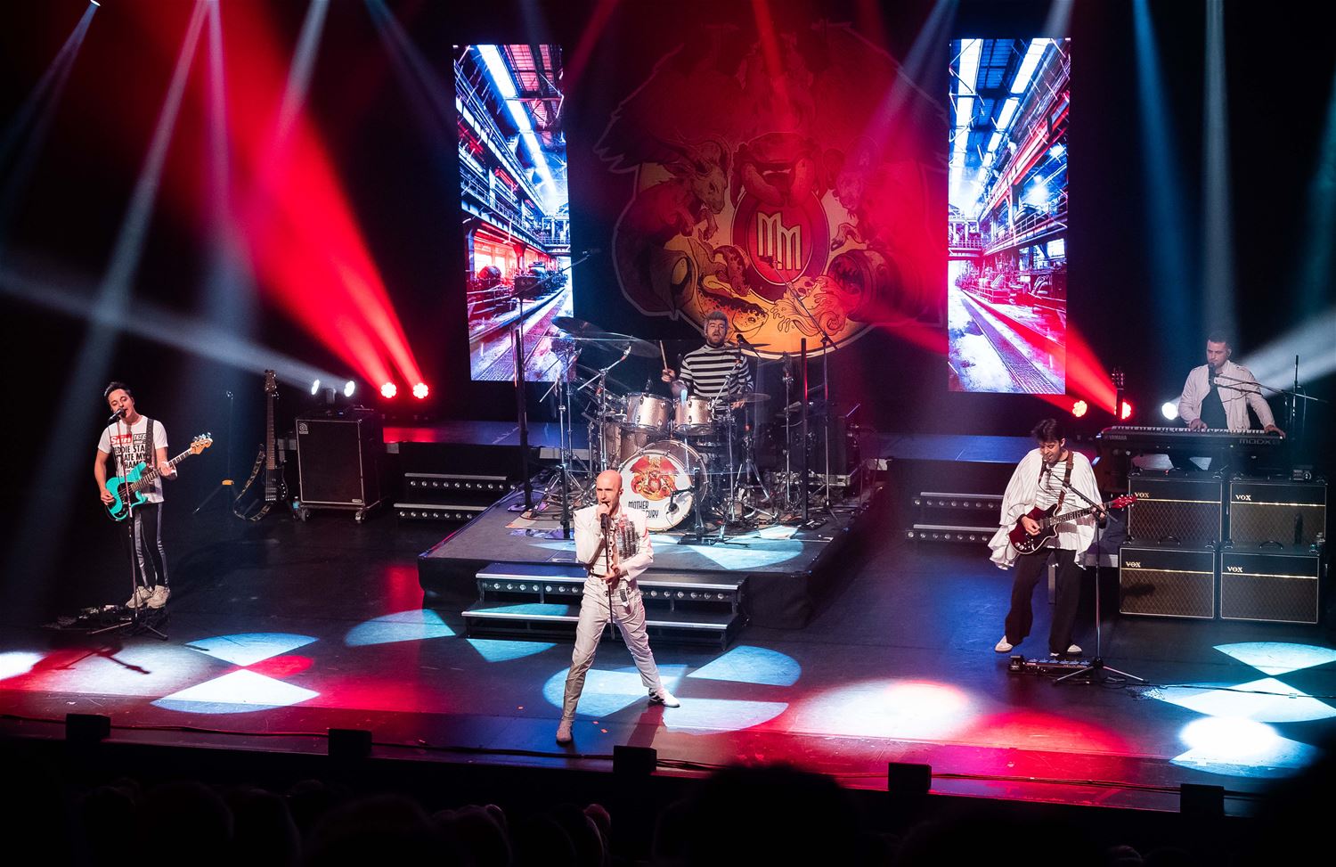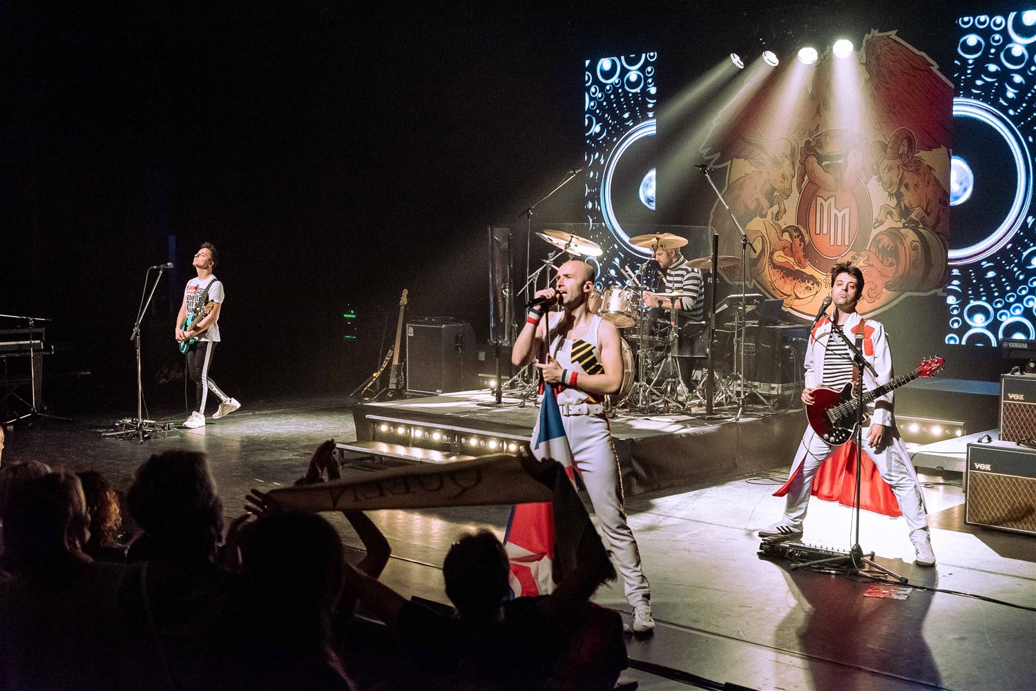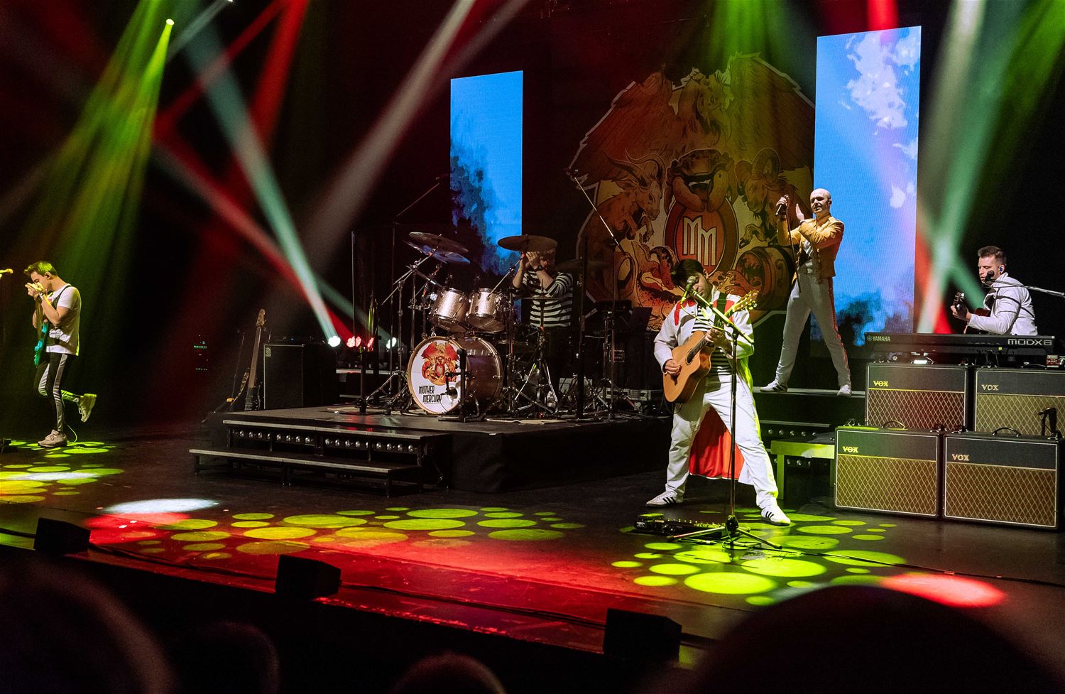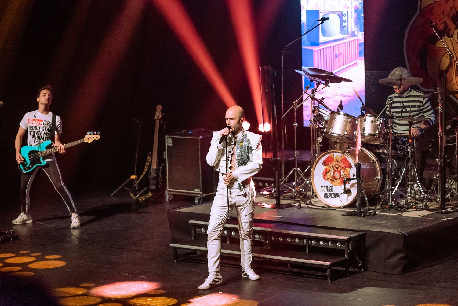 Er zijn er heel wat, de coverbands in Europa en daarbuiten die met een Queen-repertoire toeren. Zo stond vrijdagavond Mother Mercury op het podium van een volle Muzezaal. De band wordt geleid door Sonny Vande Putte die gelanceerd werd door zijn Freddy Mercury-vertolking in VTM’s Starstruck. Daarmee ging hij nadien verder aan de slag, niet alleen met een vocaal sterke performance, maar ook fysiek brengt hij Freddy Mercury weer tot leven. Als een volleerd showbeest. Het publiek ging mee in de ambiance. (foto’s Ann Jordens)85005