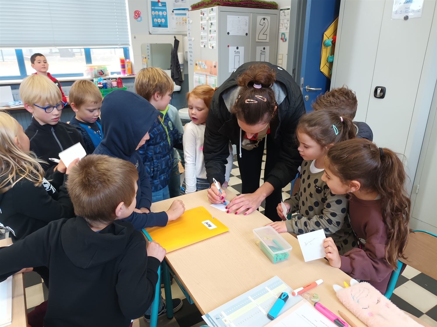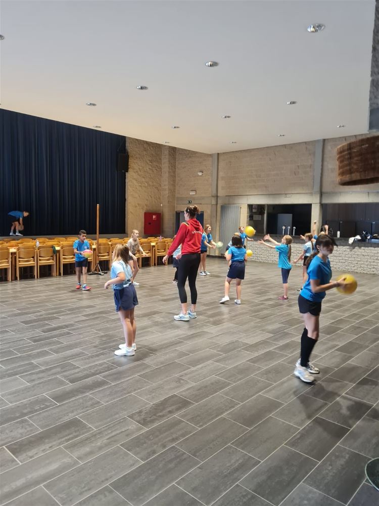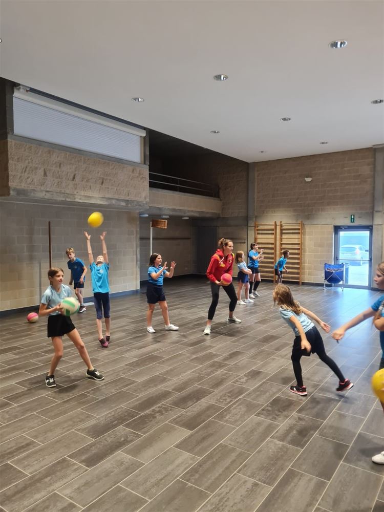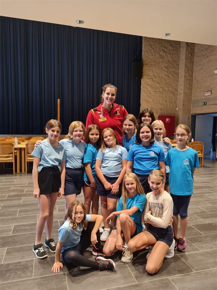 Een speciale dag in de Sint-Jan Berchmansschool in Viversel, want daar kwam Nathalie Lemmens op bezoek. Nathalie is vaste waarde bij de Yellow Tigers, die vorige week bij de eerste 10 eindigden op het WK en daarmee de beste prestatie ooit in het Belgische vrouwenvolleybal leverden. Ze draaide jaren mee in de top van het Belgische volley en kwam daarna terecht bij het Duitse Wiesbaden. Nathalie is oud-leerlinge van de school en wilde graag tijd vrijmaken voor de leerlingen. Die van het vijfde leerjaar kregen zelfs een les volleybal. En de anderen stonden te dringen om met haar op de foto te mogen en om een handtekening te versieren. Wie weet komt de opvolging ook uit Viversel. (foto's Daphne Claes)75496