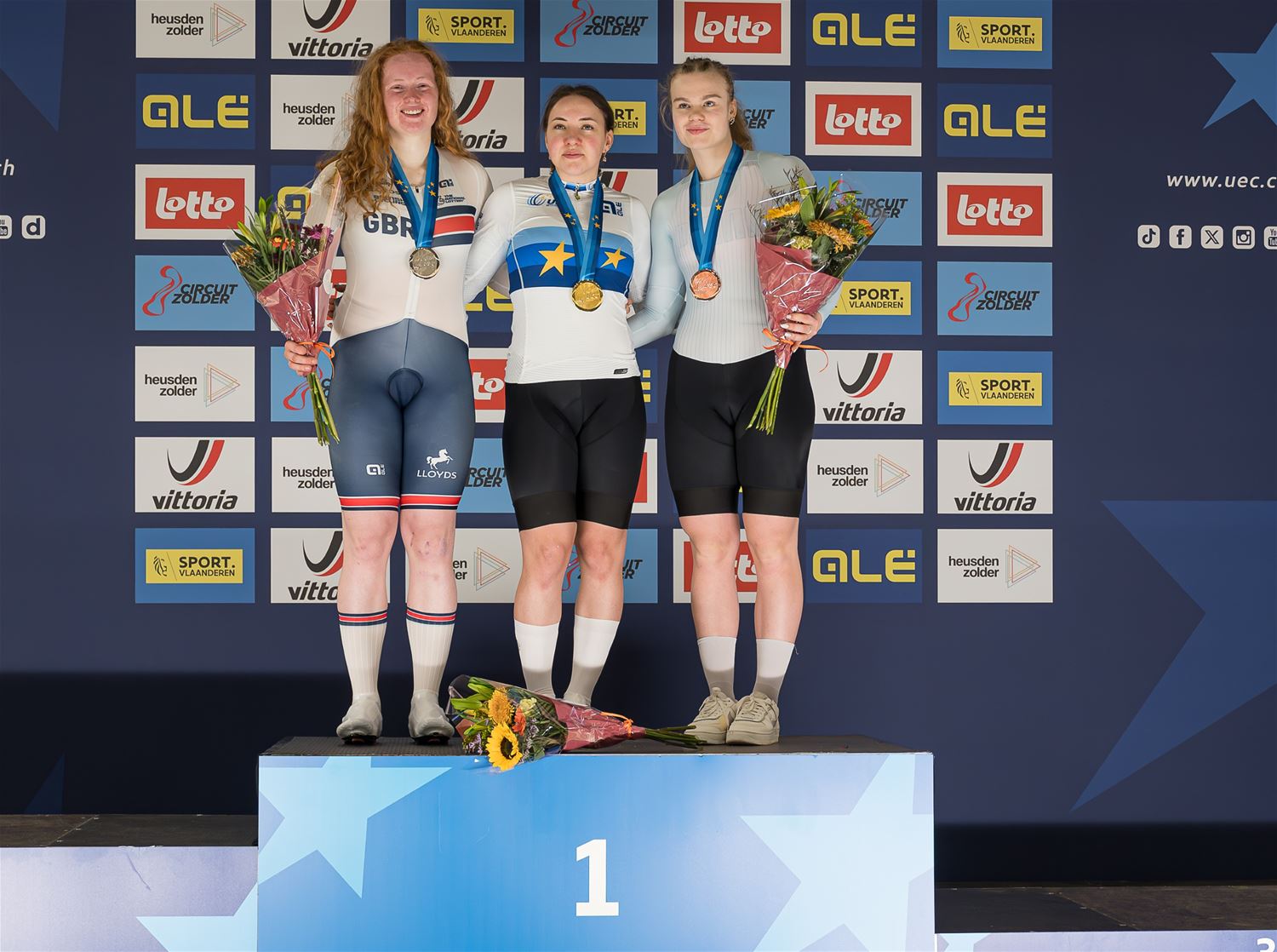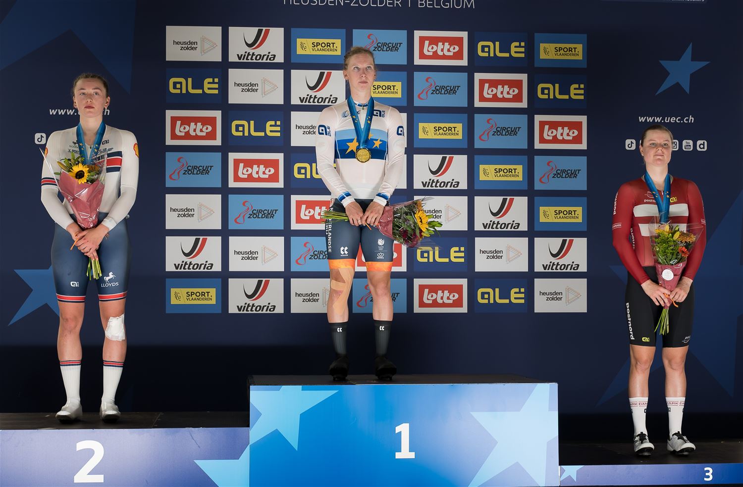 Er was vrijdagavond opnieuw veel volk en veel sfeer in de Velodroom. De toeschouwers zullen het zich niet beklaagd hebben, want ze kregen opnieuw spannende koersen geserveerd. Zo werd de Yana Burlakova – die onder neutrale vlag rijdt – kampioen snelheid na een belle tegen de Britse Rhian Edmunds. In het omnium was – tot grote vreugde van de Nederlandse supporters – de overwinning voor Lorena Wiebes, zij haalde het voor de Britse Sophie Madelaine Leech die in de finale van het slotnummer ten val kwam. De Britten stapelen de medailles trouwens op want in de individuele achtervolging mannen wonnen ze goud (Josh Charlton) en brons (Michael Gill) met daartussen zilver voor de Portugees Ivo Manuel Alves Oliveira. Goud ook voor Portugal in de scratch met Luri Leitao, zilver voor de Nederlander Vincent Hoppezak en de Brit William Tidball. (foto’s Roman Martyka)84538