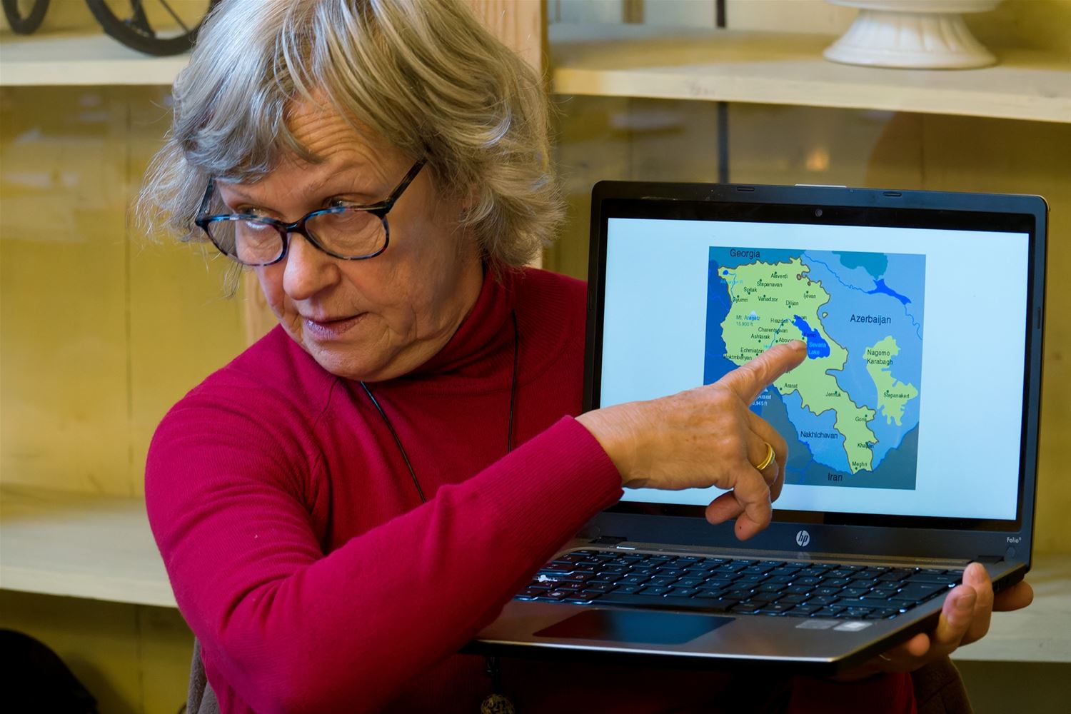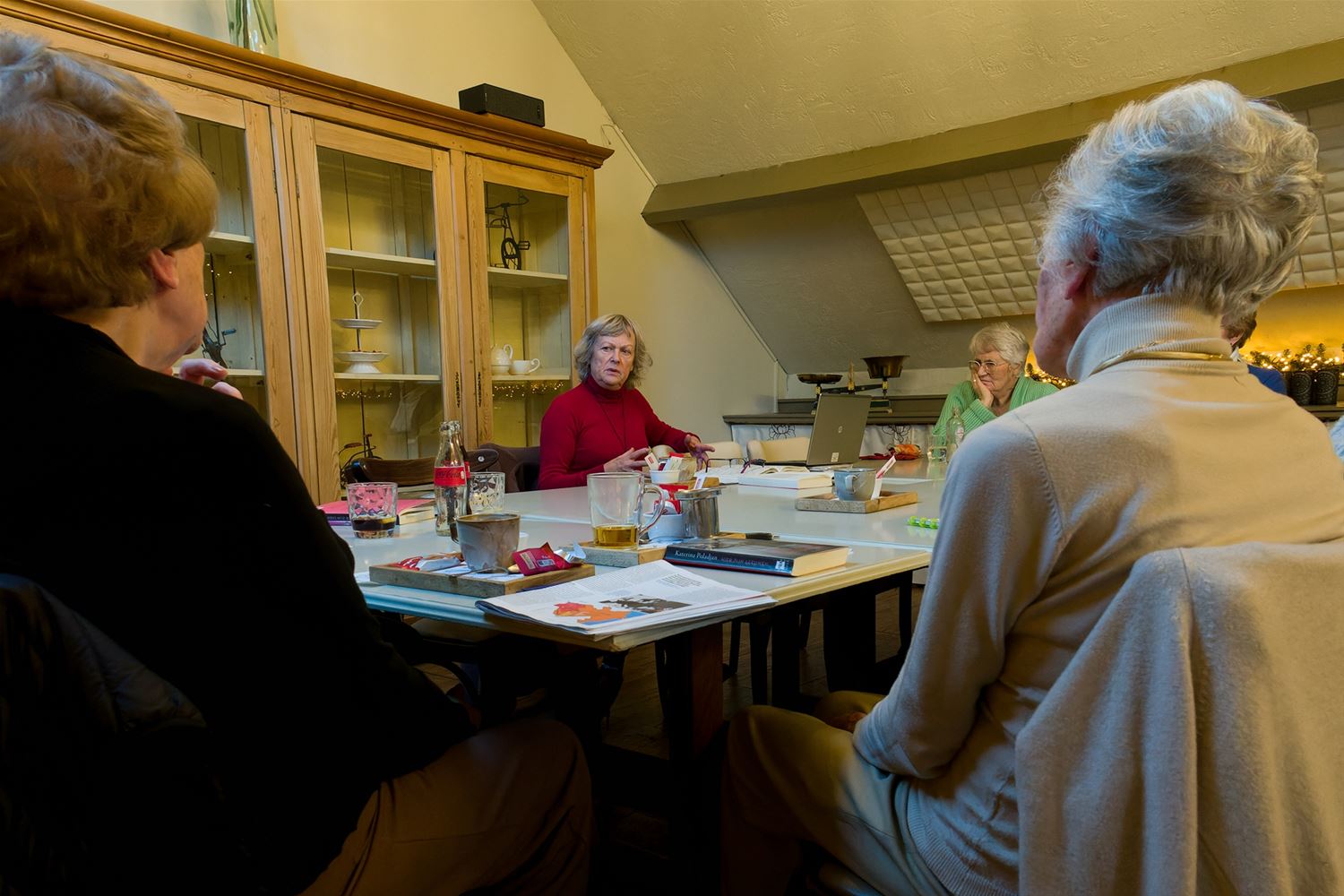 De leesclub van Neos besprak vandaag het boek: ‘Hier zijn leeuwen’ van Katerina Poladjan. Het gaat over Helen Mazavian, boekrestauratrice in Berlijn, van half-Armeense afkomst, die voor drie maanden naar Jerevan, hoofdstad van Armenië gaat om haar vakkennis te verdiepen. De auteur probeert de geschiedenis van haar familie te ontrafelen vertrekkend van een verhaal, misschien verzonnen, uit het handbijbeltje dat ze moet restaureren. De leden van de leesclub probeerden, met Greet Hendrix als begeleidster, op hun beurt het boek te ontrafelen. (foto's Robrecht Froyman)83891