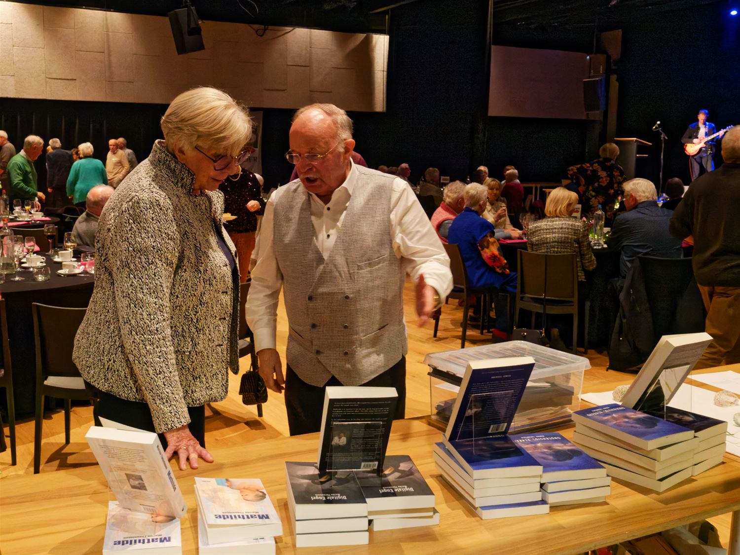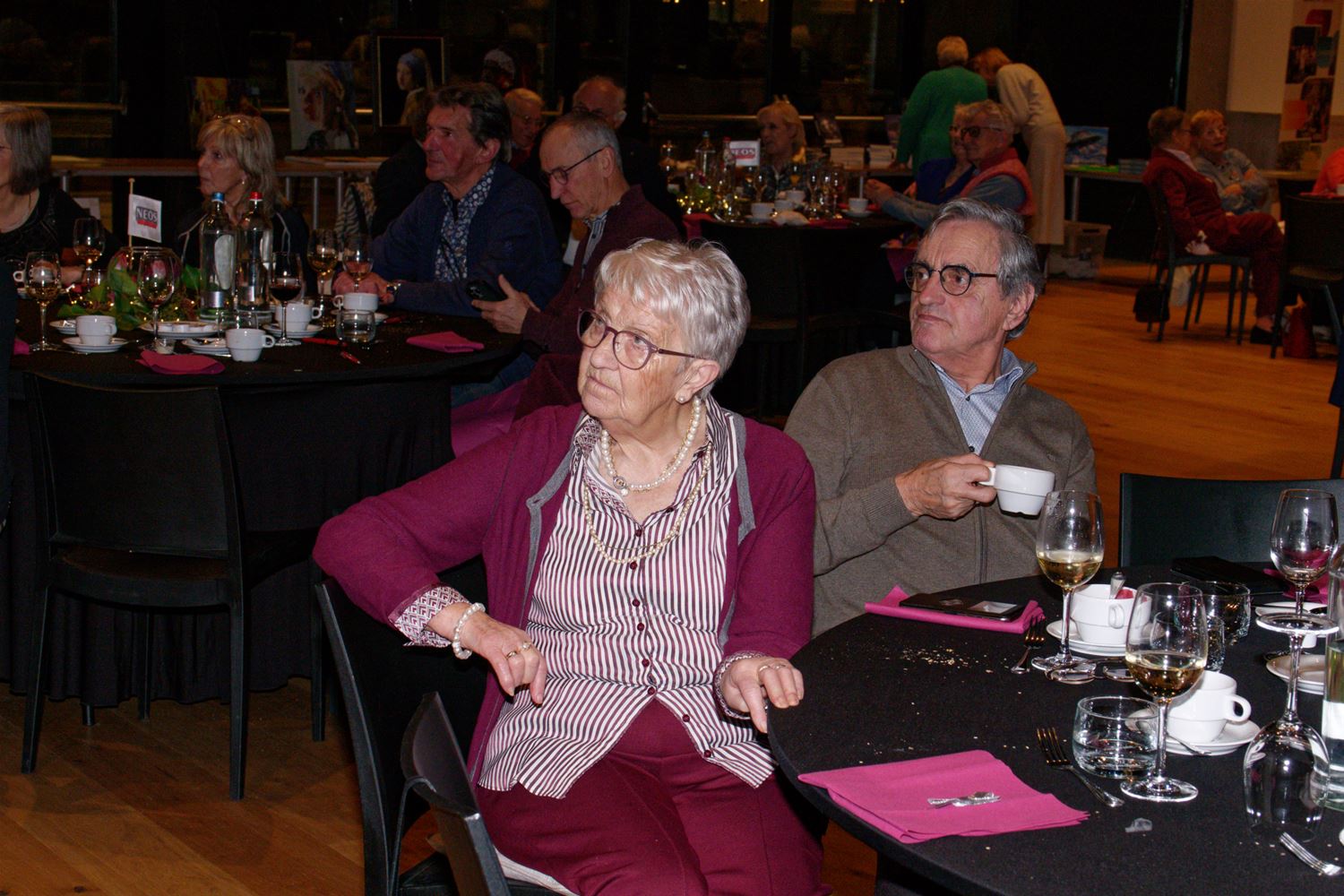 Een 70-tal Neos-leden was present in de balzaal van CC Muze om nieuwjaarswensen uit te wisselen. Terwijl genoten werd van het eten en drinken en nieuwjaarsgebak – in eigen regie – konden ze ook kennismaken met het werk van creatieve medeleden. De voorzitter stelde met enige fierheid de gewonnen award “Neos met een Hart” voor. Die is eind december aan Neos Heusden-Zolder overhandigd voor de steun aan Sint-Vincentius. Topact van de namiddag was het optreden van de Prullband met leadzanger André Roosen, zelf ook actief Neos-lid. (foto’s Robrecht Froyman)87504